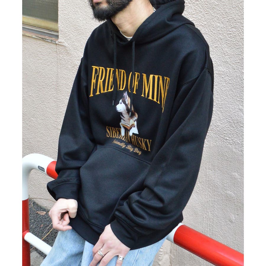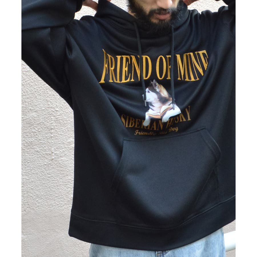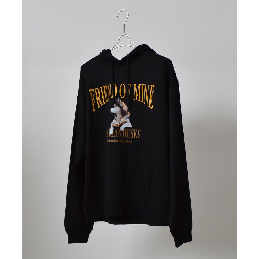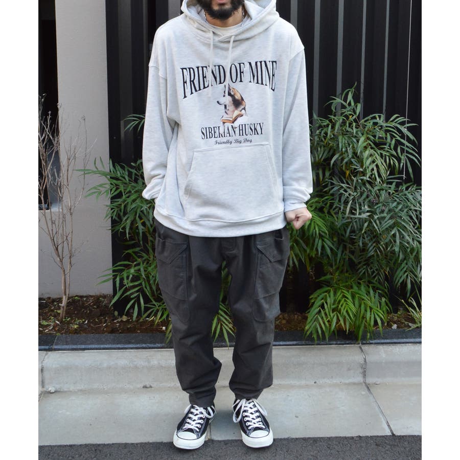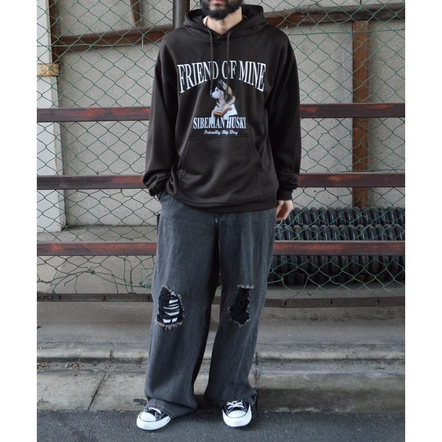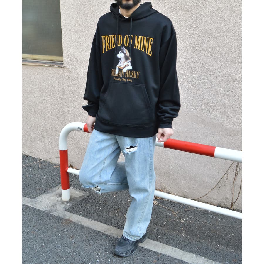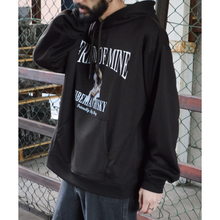 ・古着ヴィンテージTシャツを彷彿とさせる犬モチーフの裏毛プルパーカー。