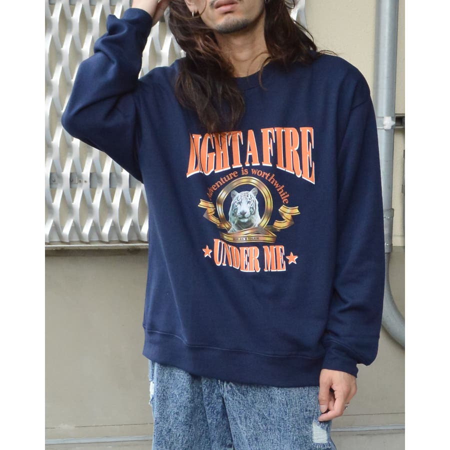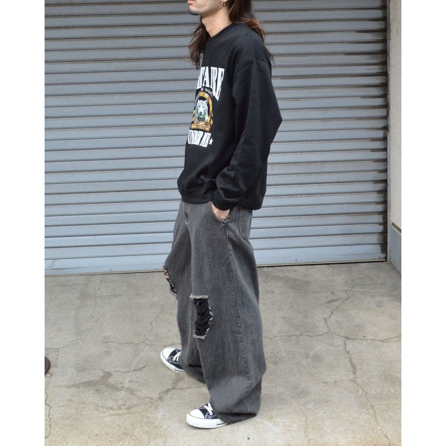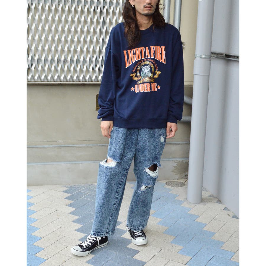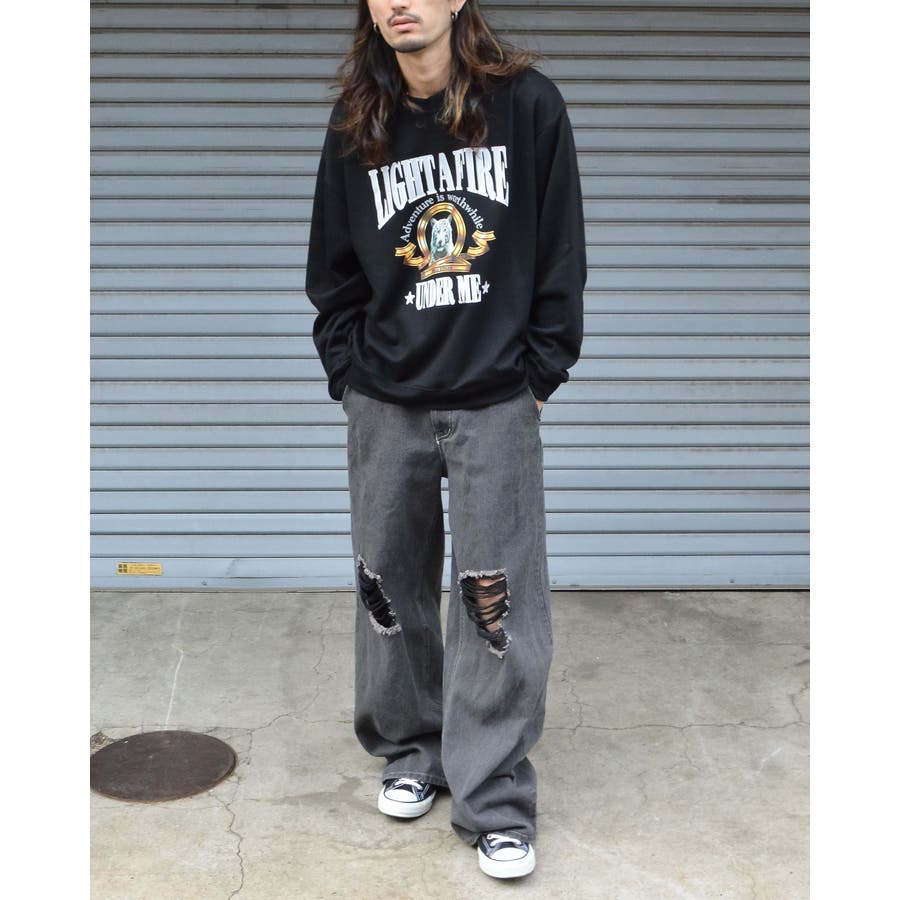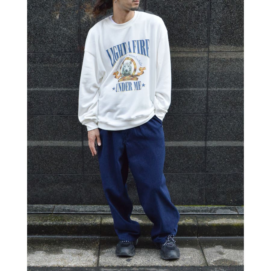 【フロントの大きなプリントがかっこ良いカジュアルスタイルに仕上げてくれるスウェット】