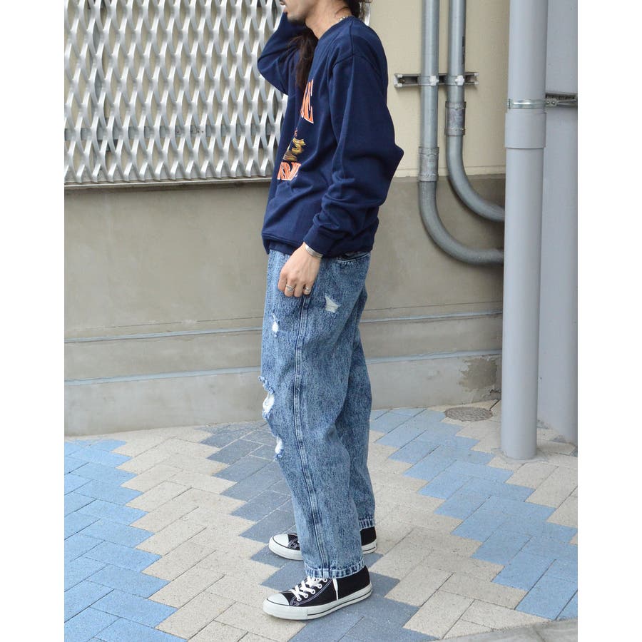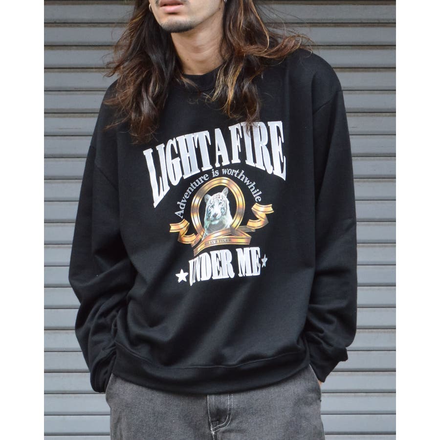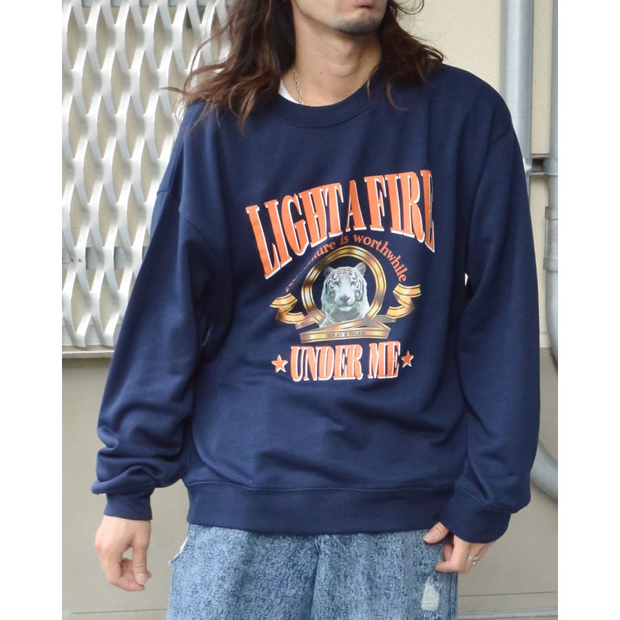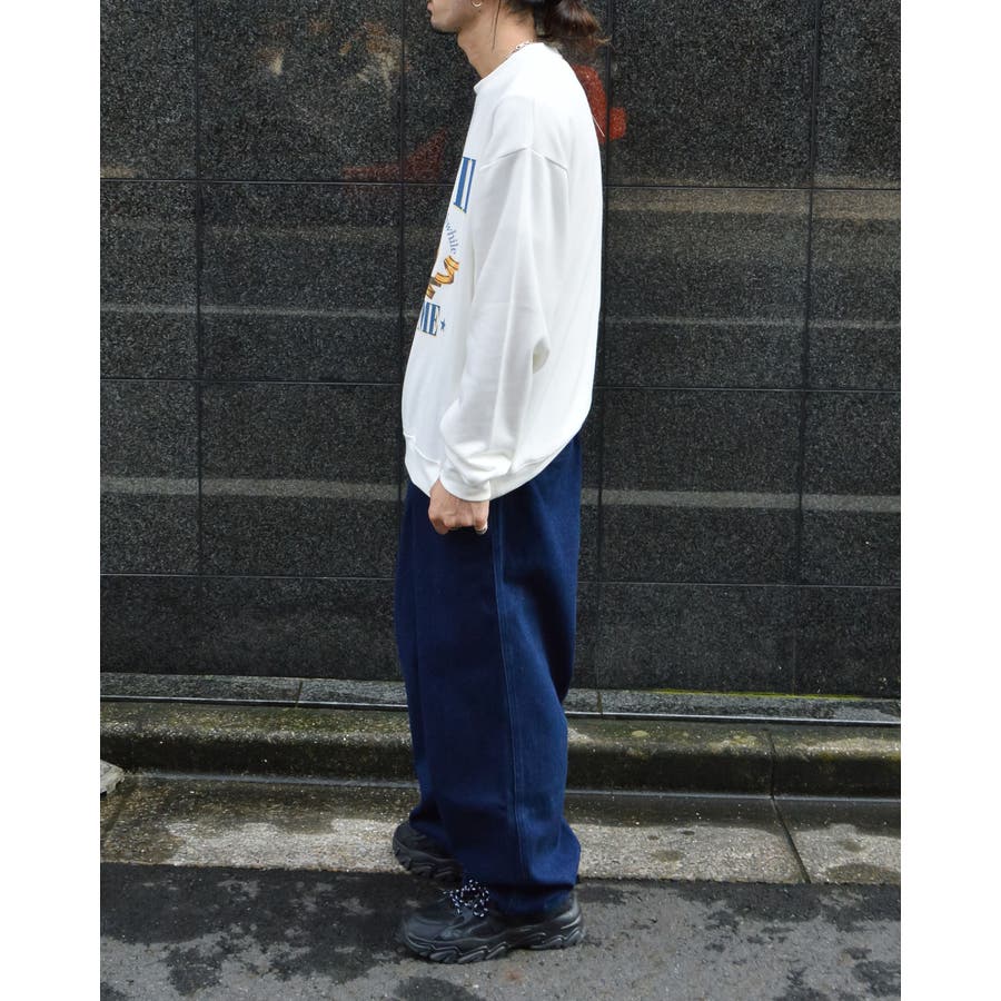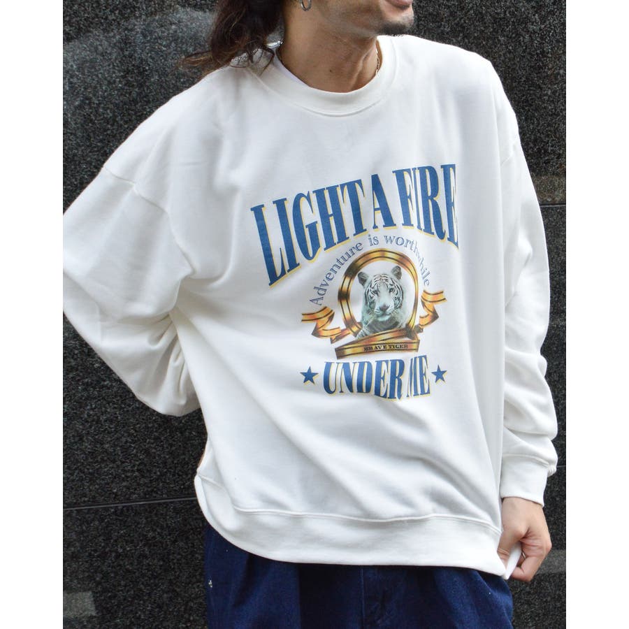 【フロントの大きなプリントがかっこ良いカジュアルスタイルに仕上げてくれるスウェット】