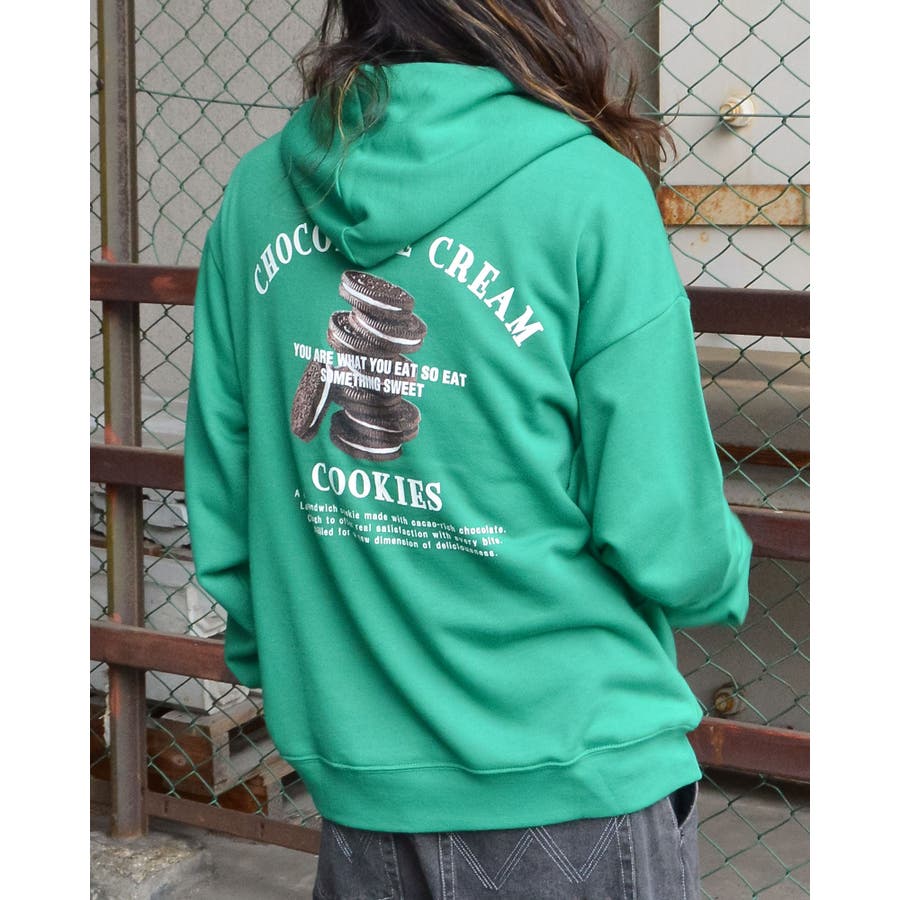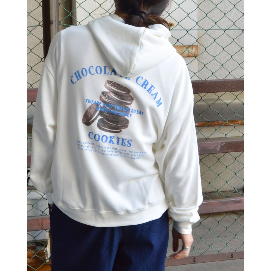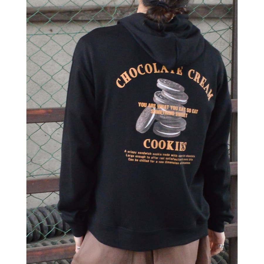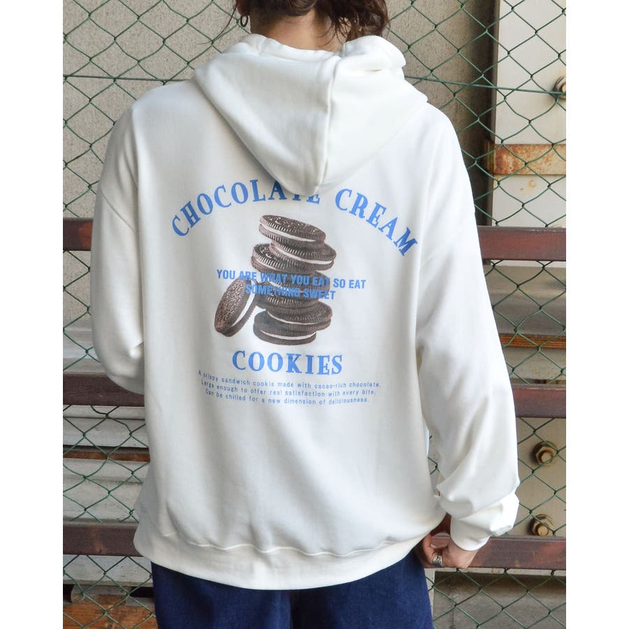 【アウターのインナーとしても使いやすい!ポップでリアルなクッキープリントが可愛らしいパーカー】