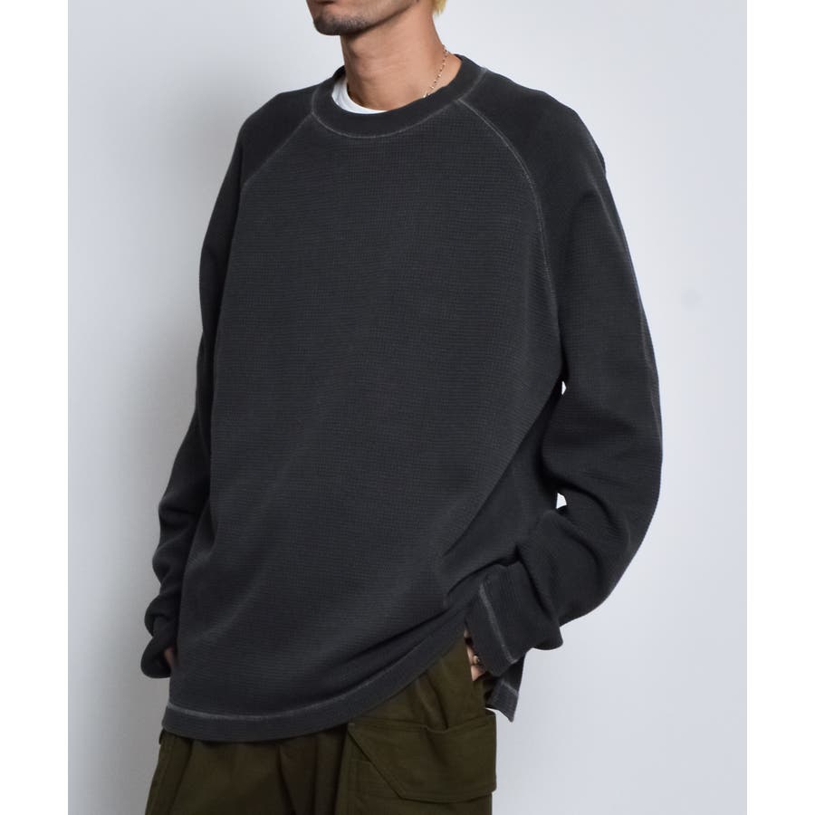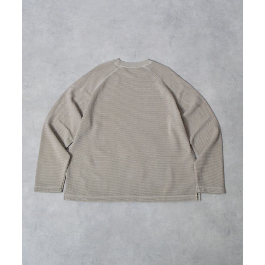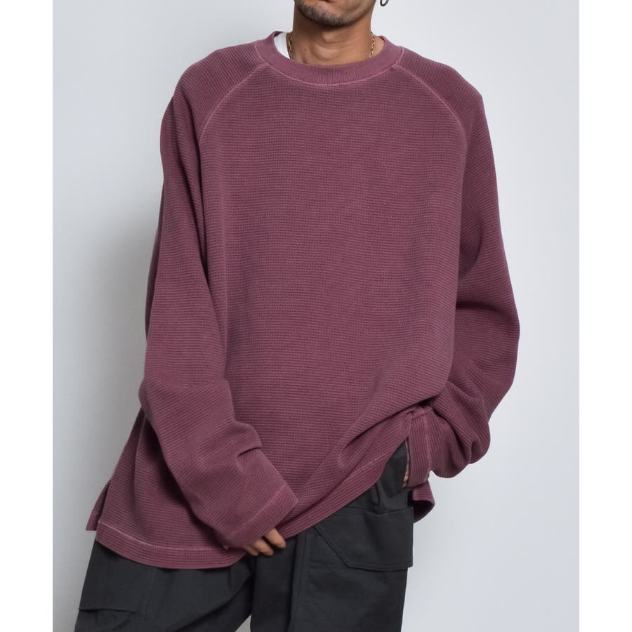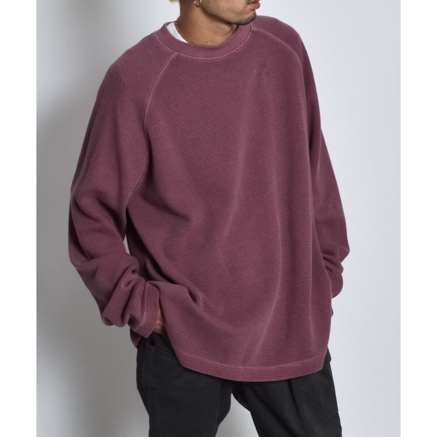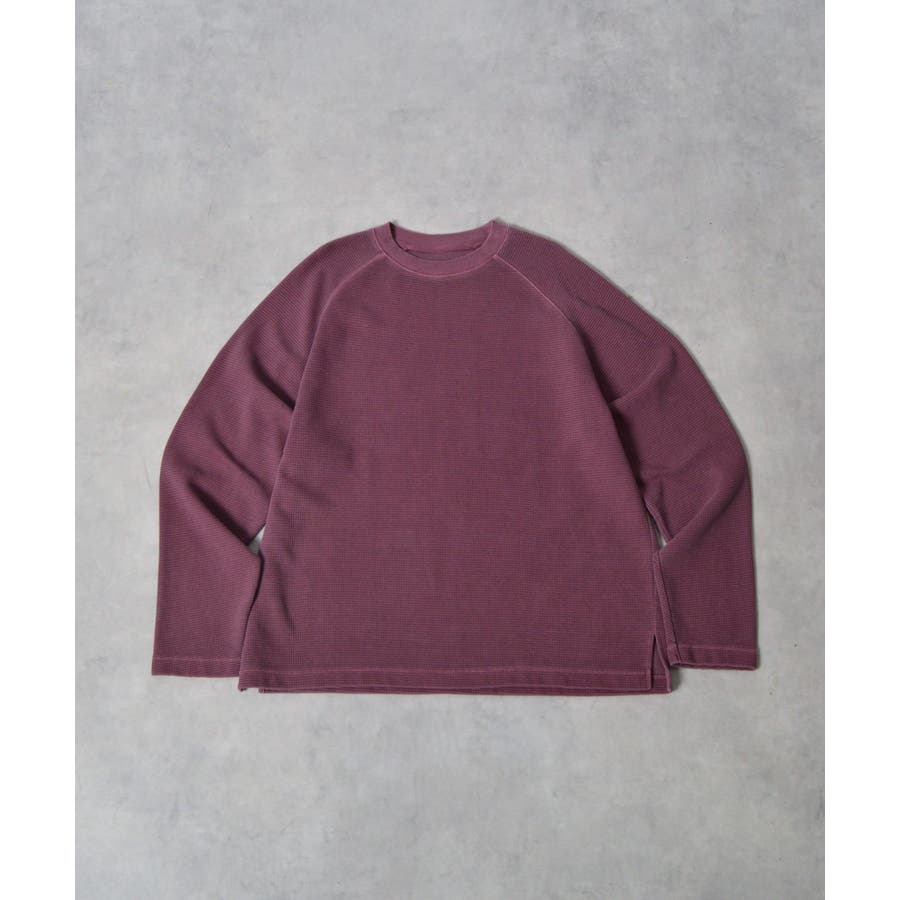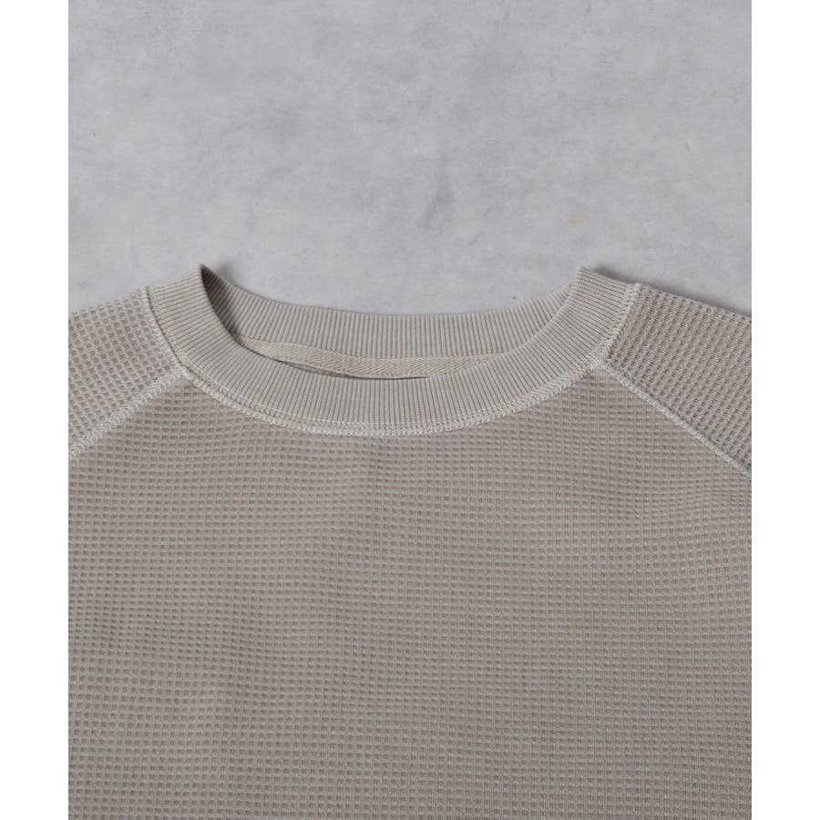 ・凹凸のあるワッフル(サーマル)素材にピグメント染めを施したヴィンテージ調デザイン