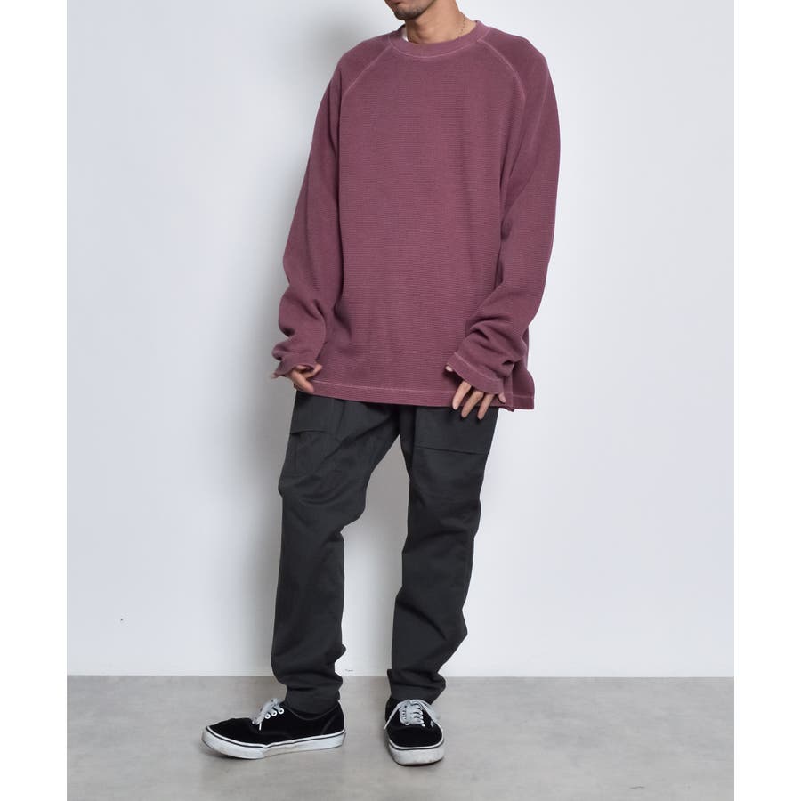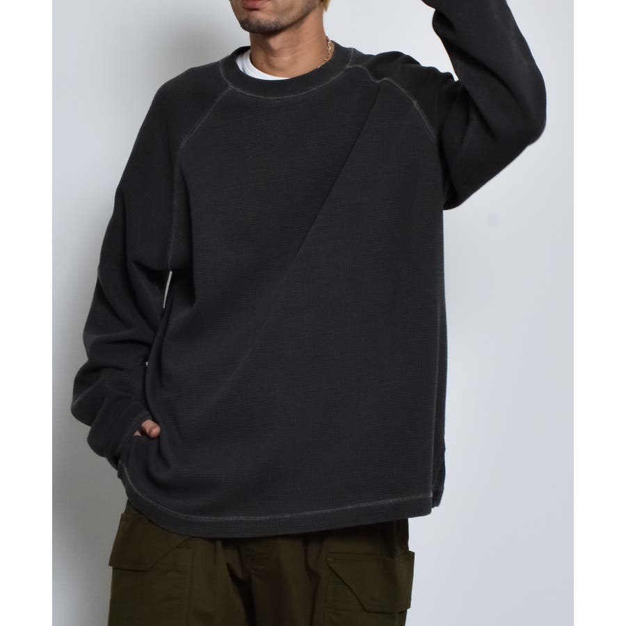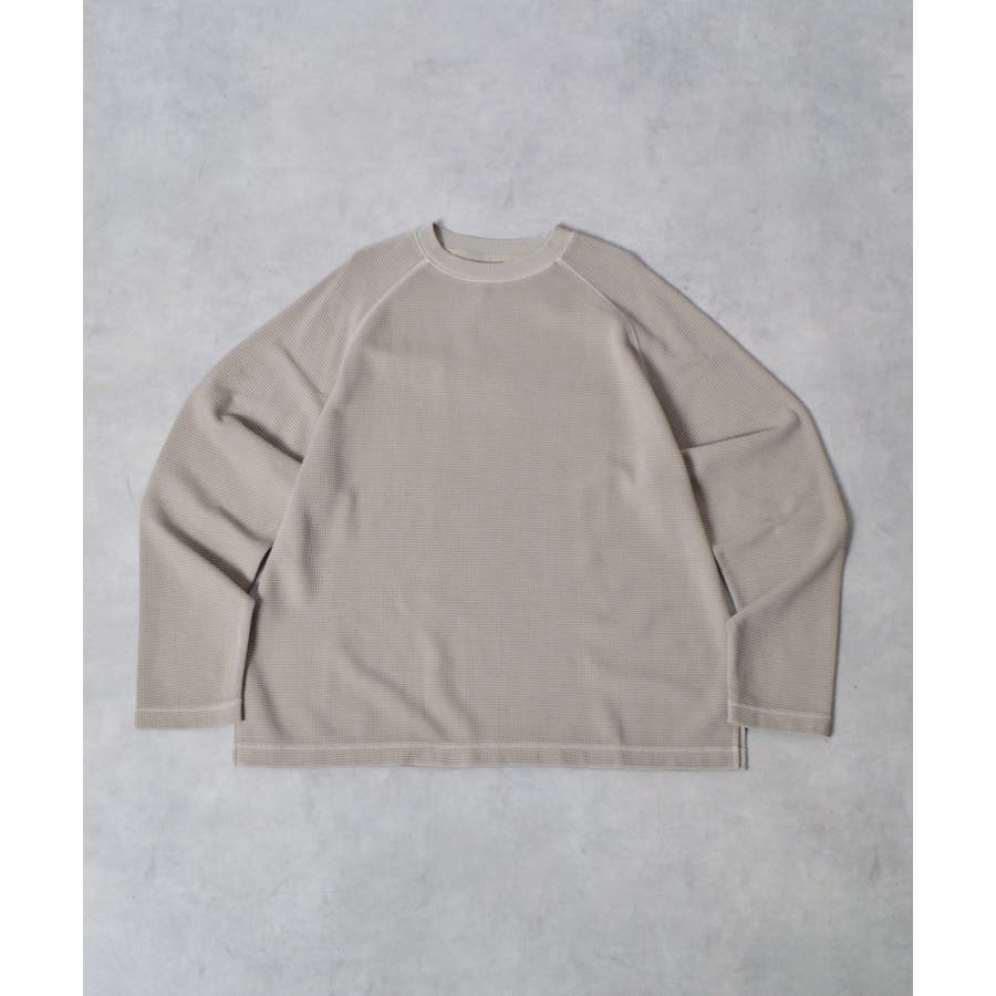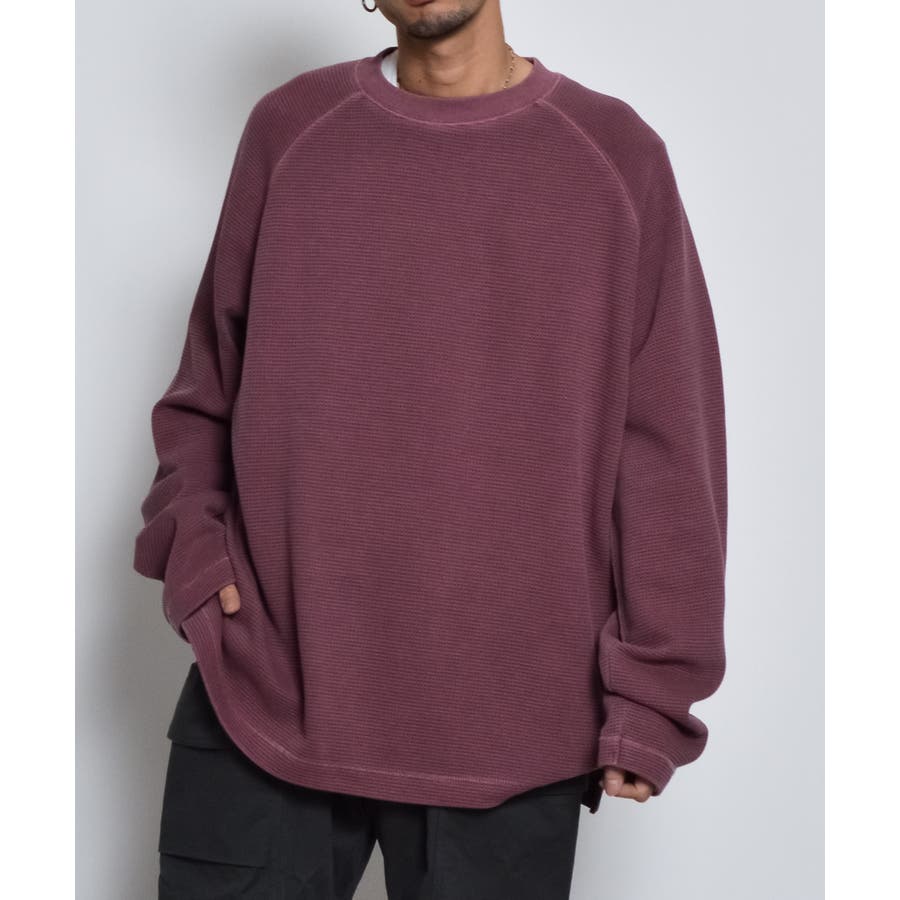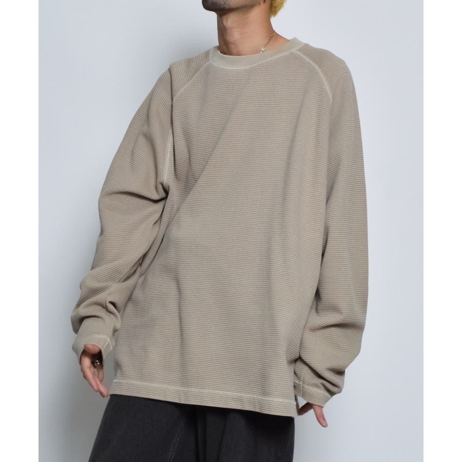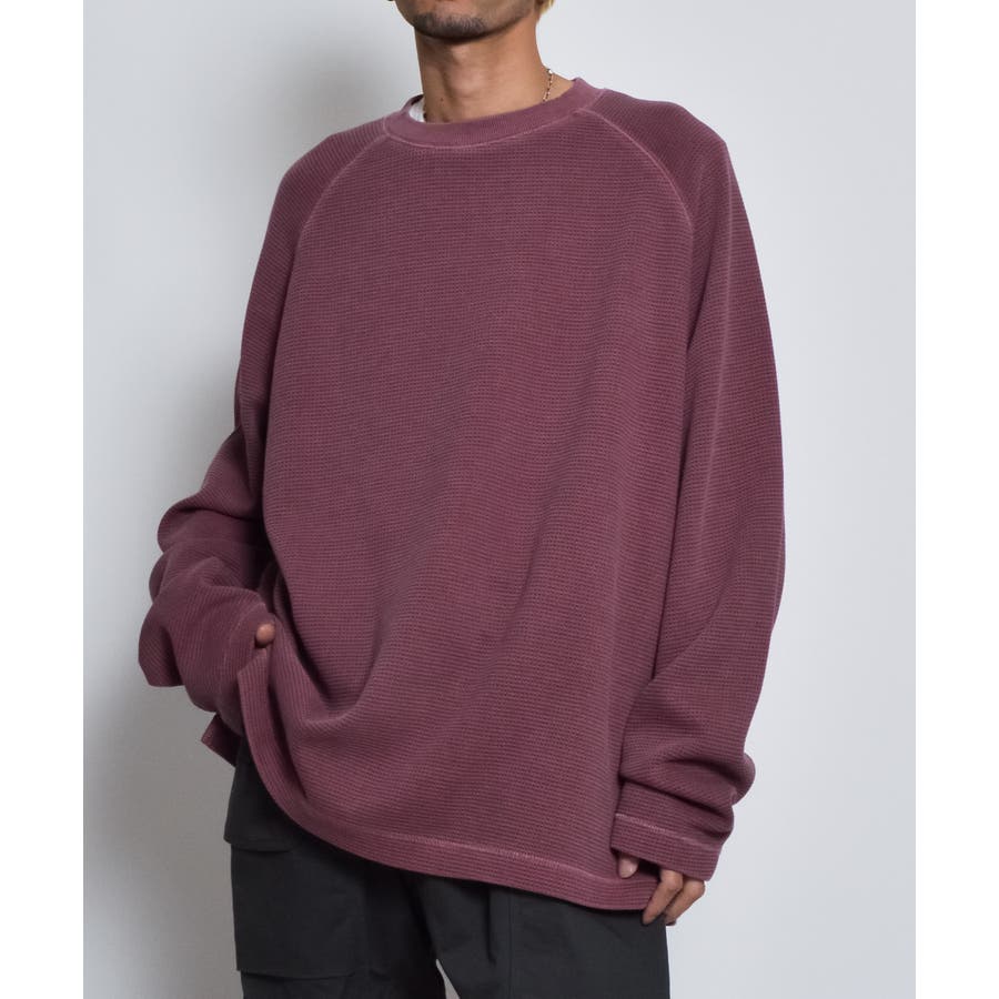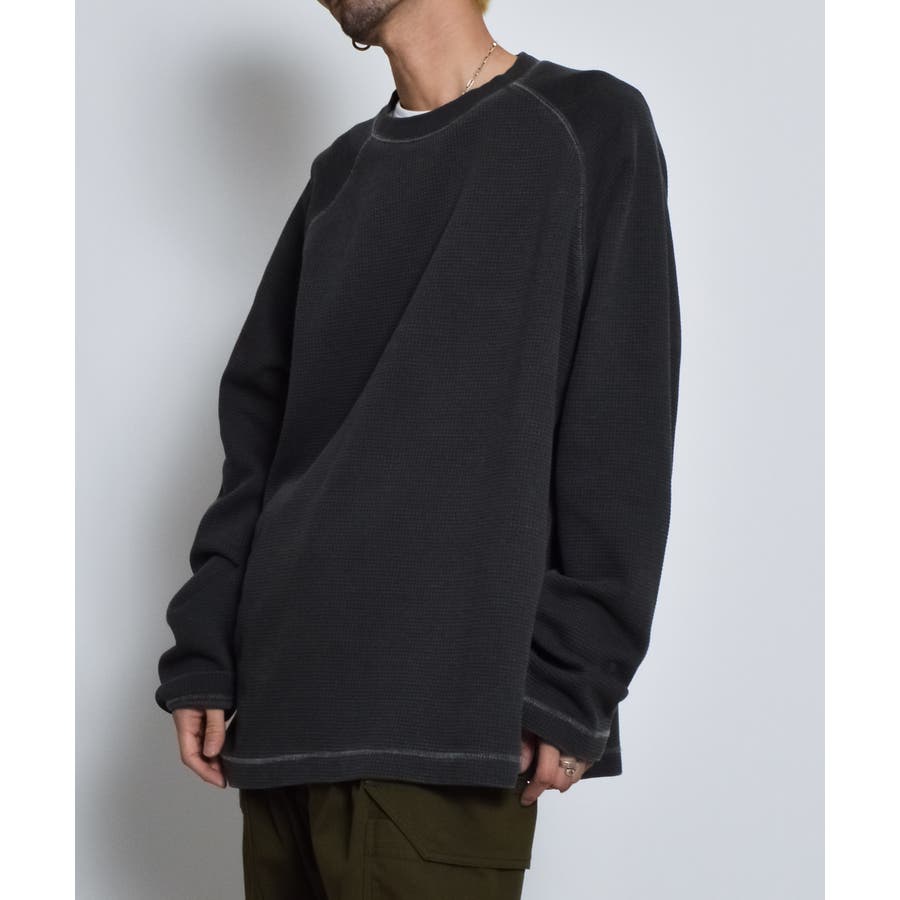 ・凹凸のあるワッフル(サーマル)素材にピグメント染めを施したヴィンテージ調デザイン