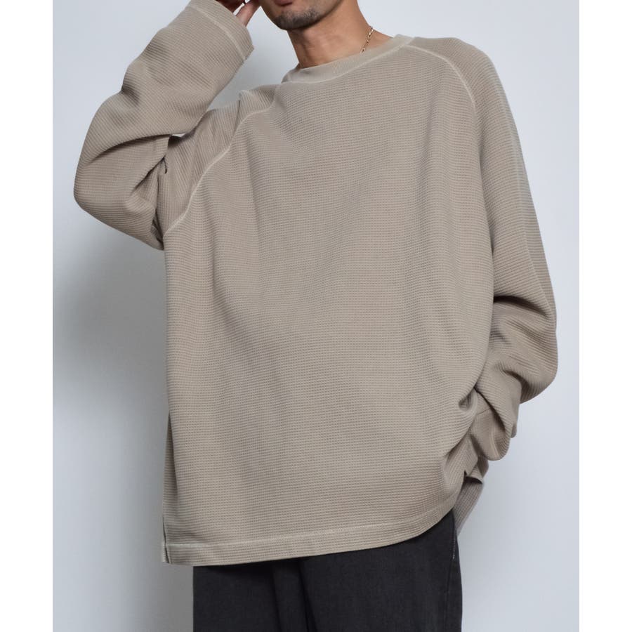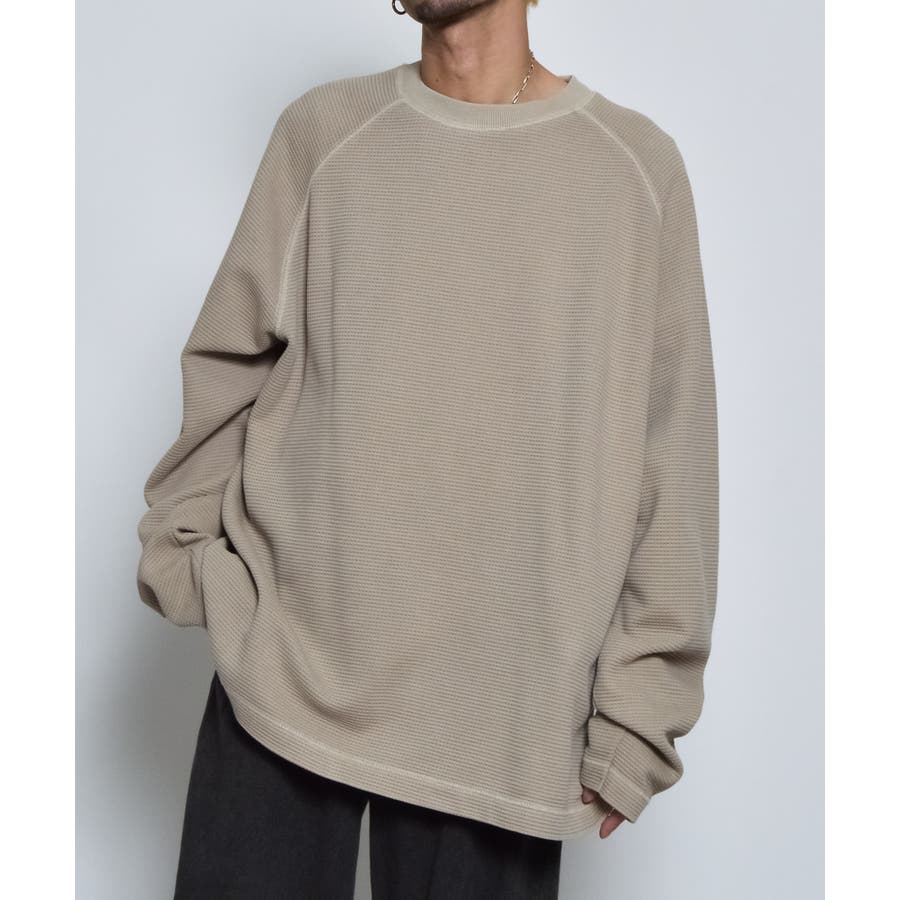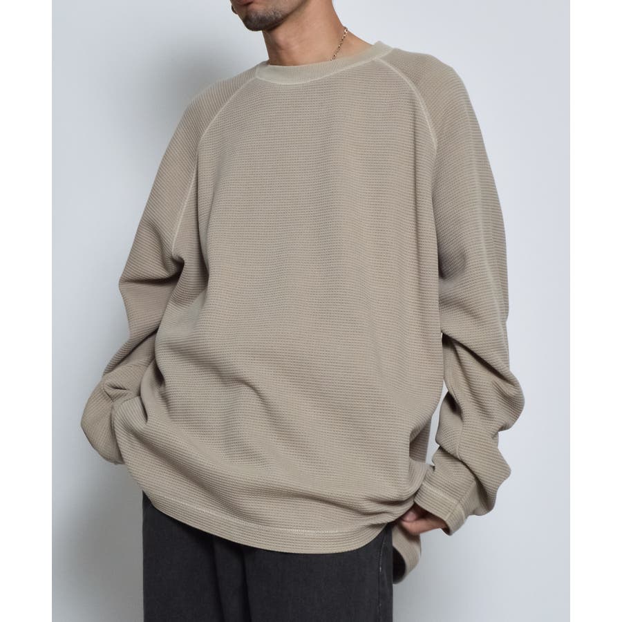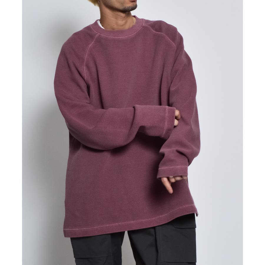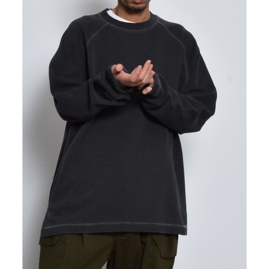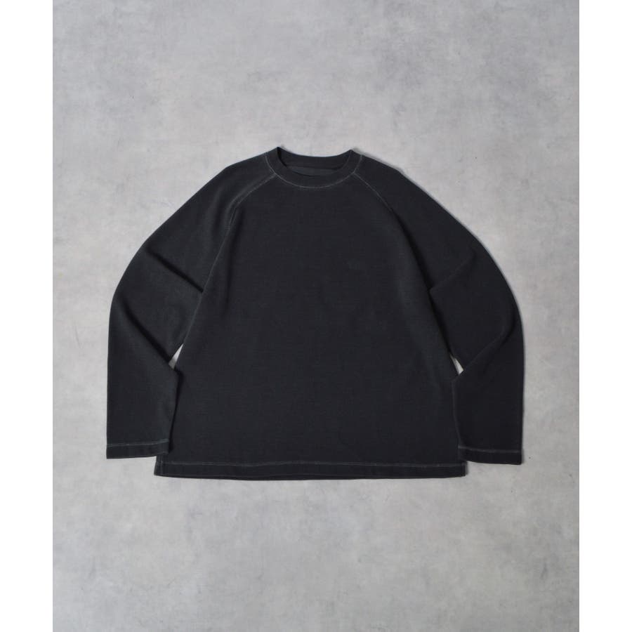 ・凹凸のあるワッフル(サーマル)素材にピグメント染めを施したヴィンテージ調デザイン
