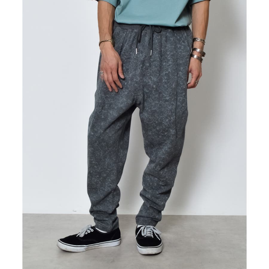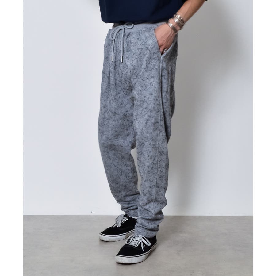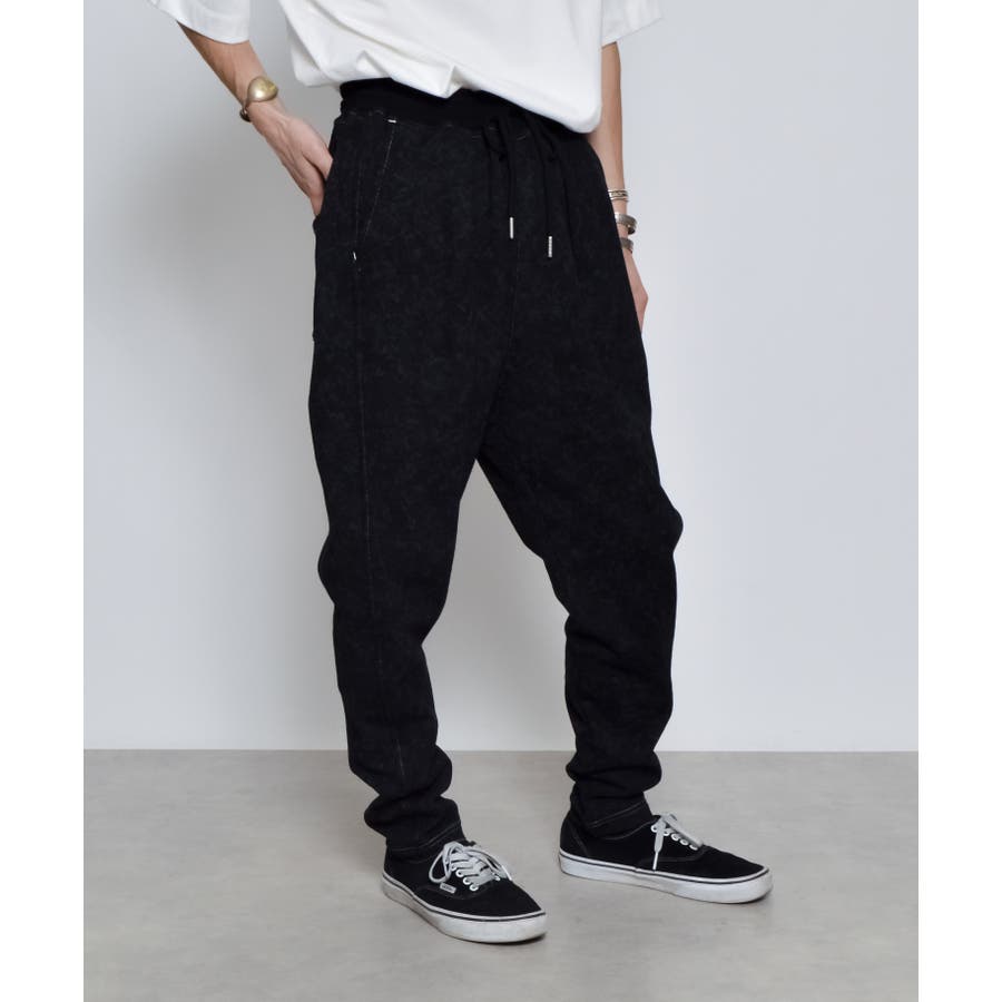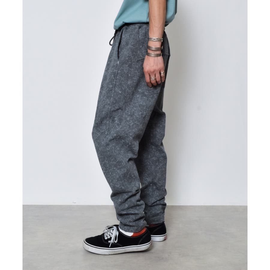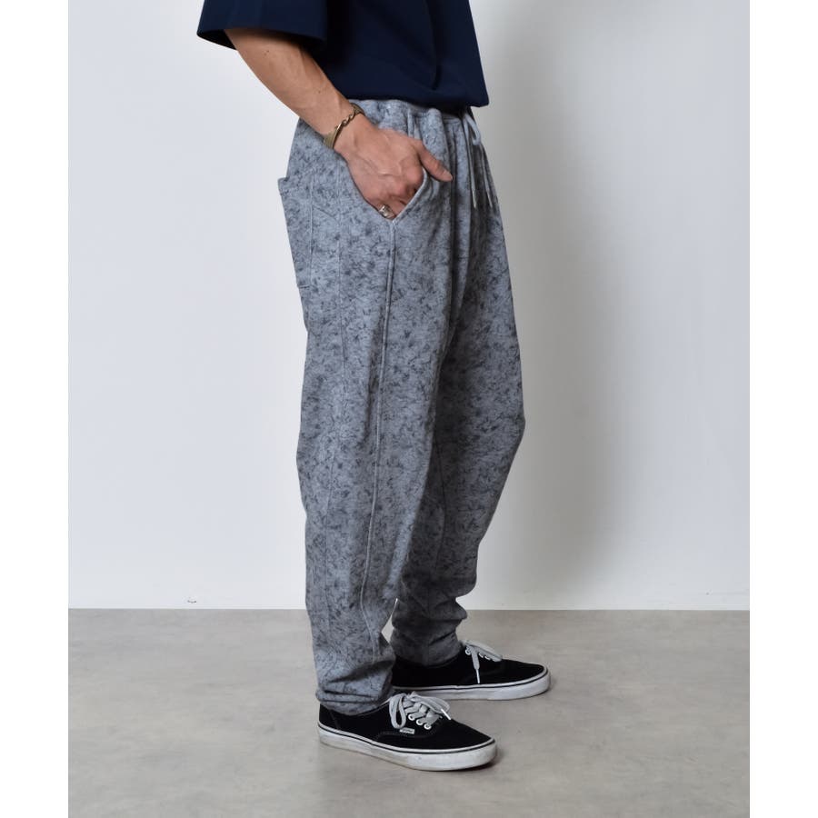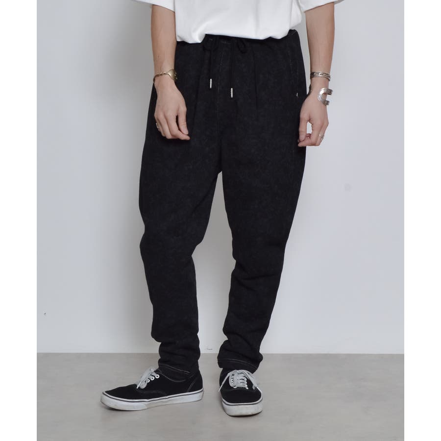 腰回りはゆとりを持たせ、裾に向かって細くなるテーパードライン