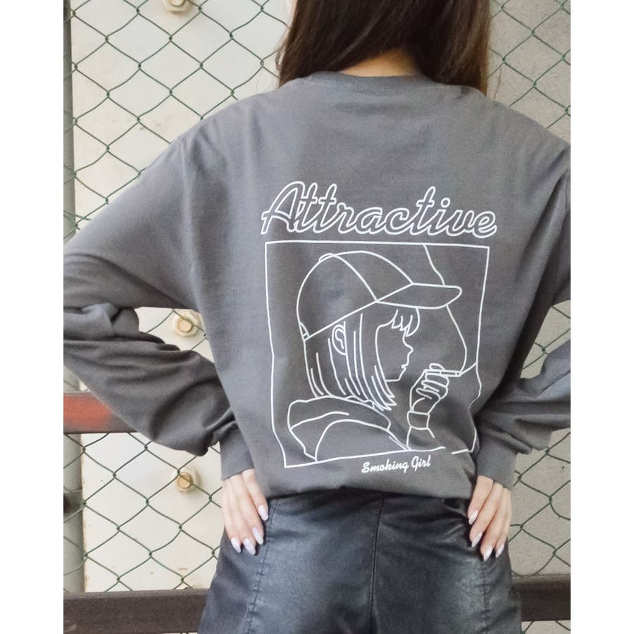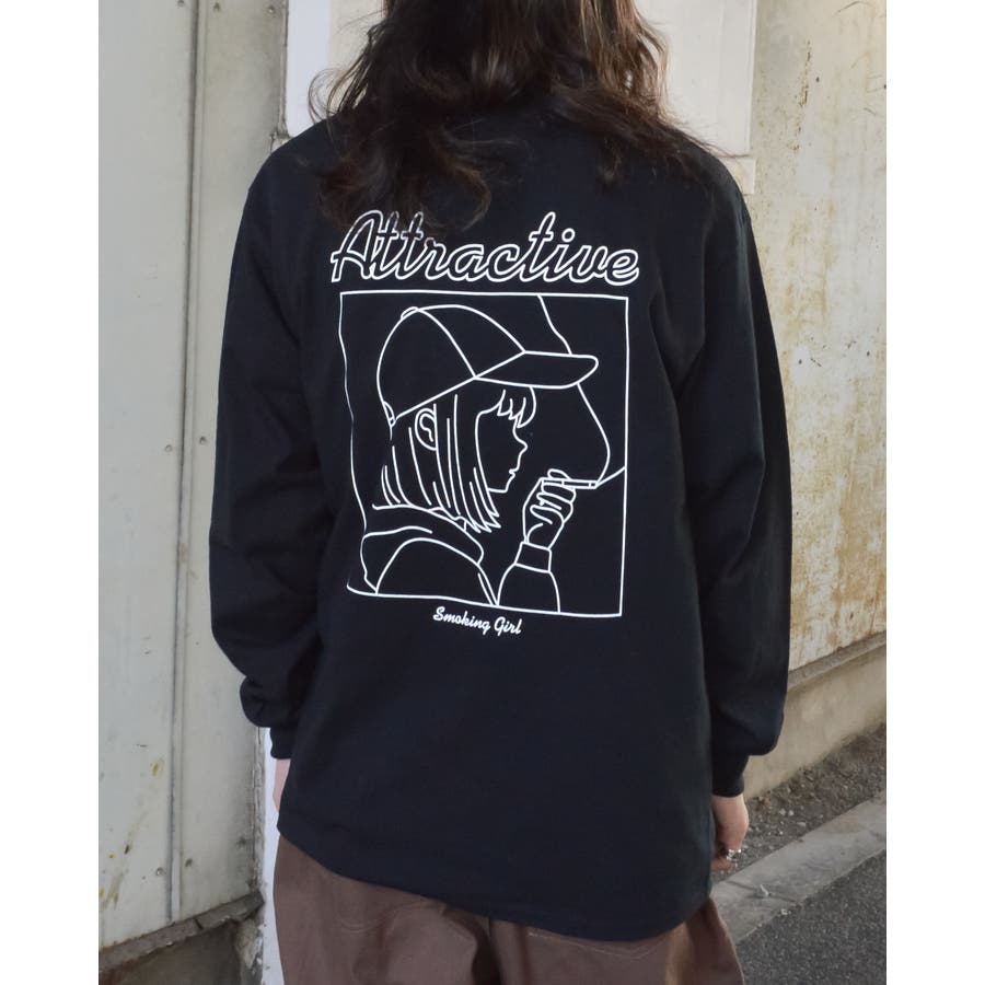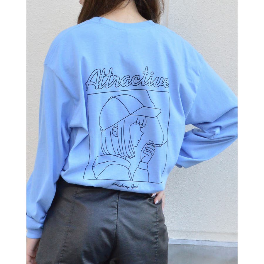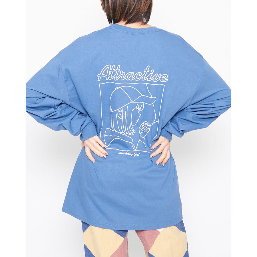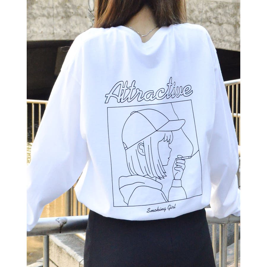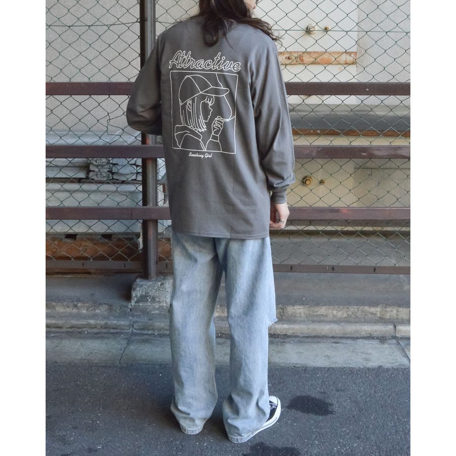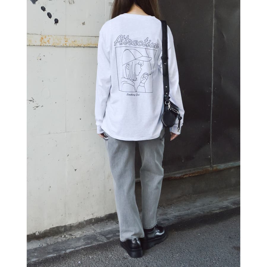 ・人気の【スモーキングガール】シリーズのプリントが施されたロングTシャツ。