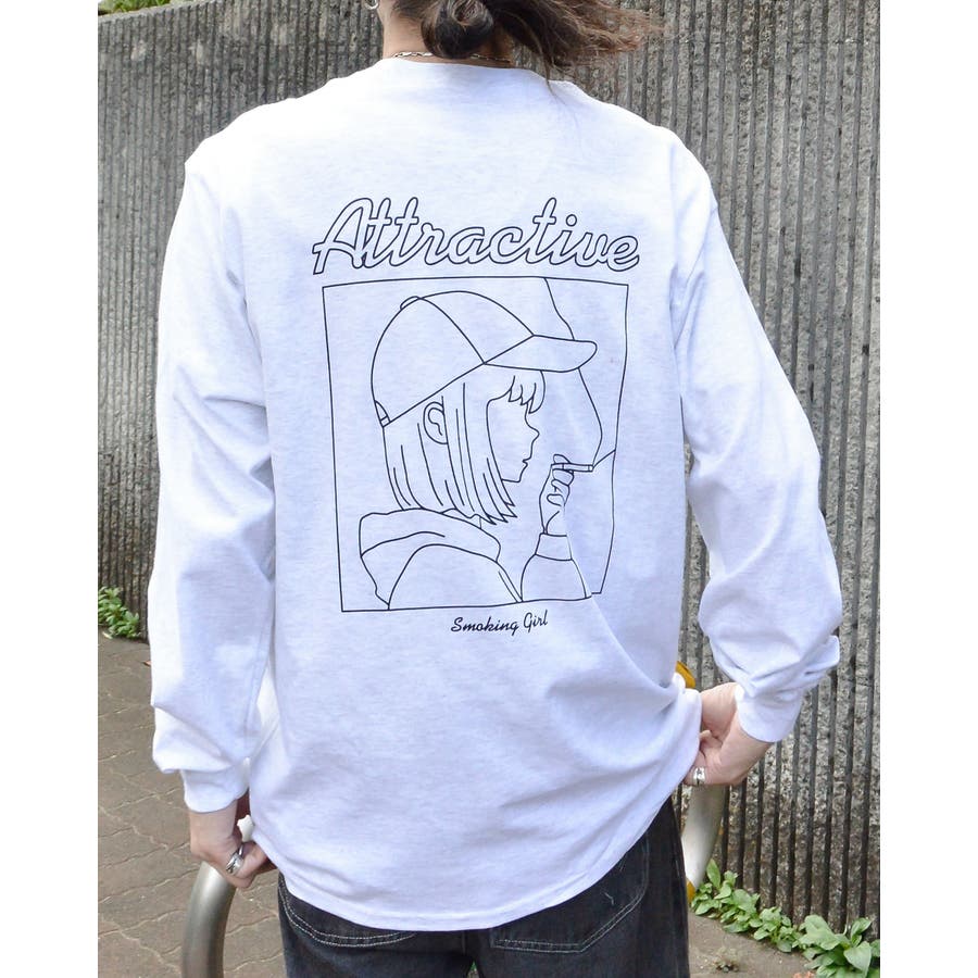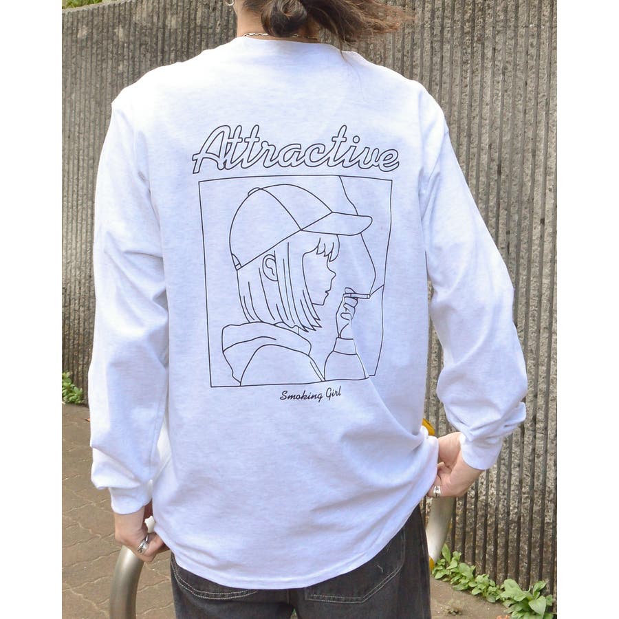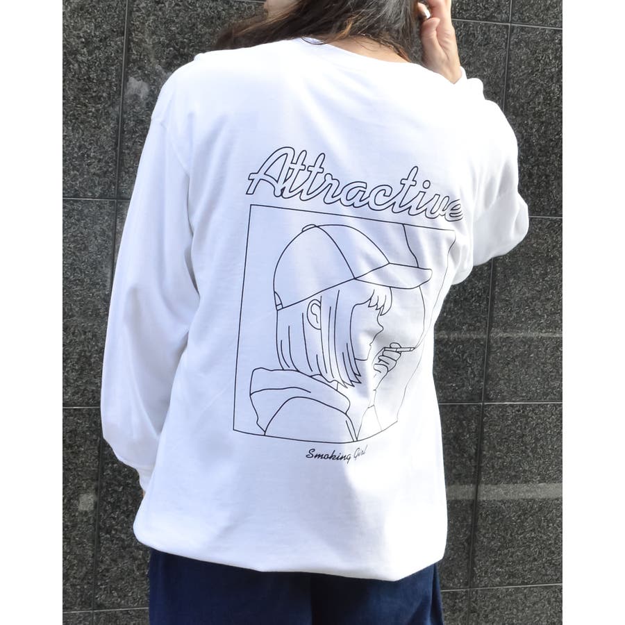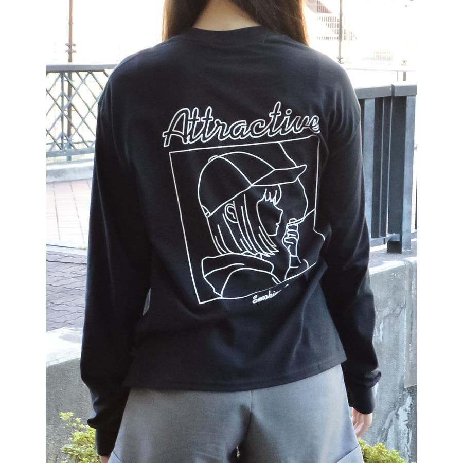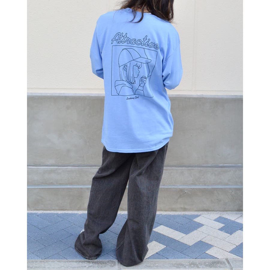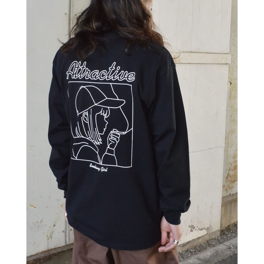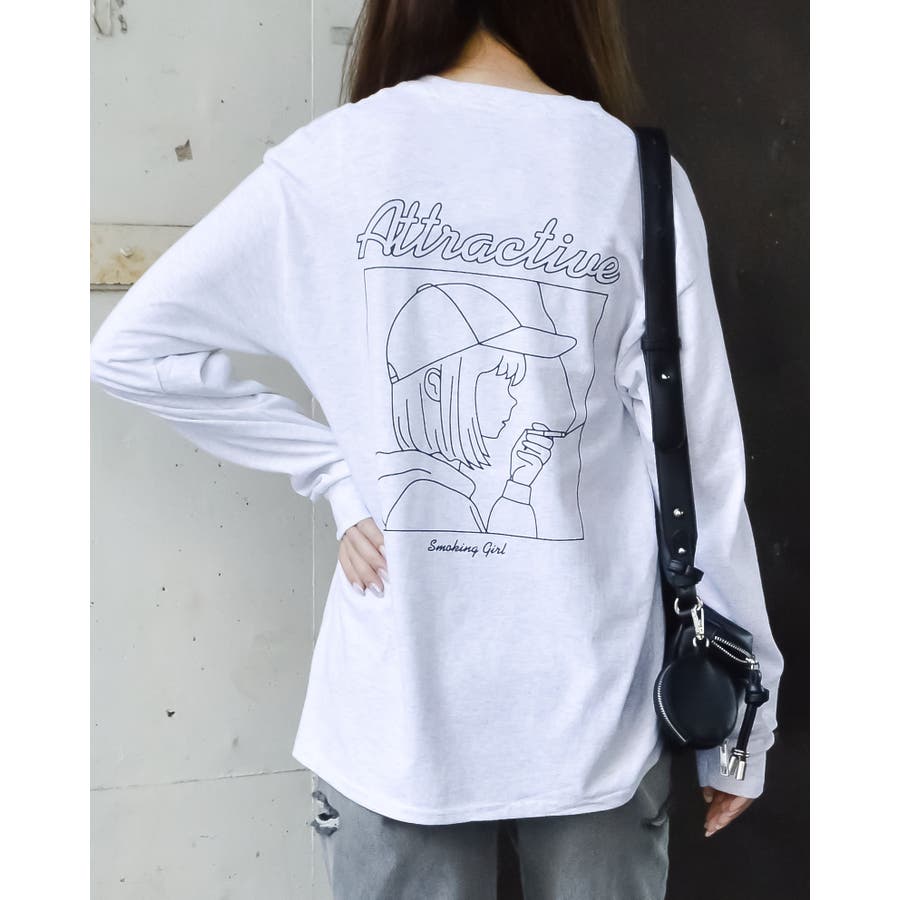 ・人気の【スモーキングガール】シリーズのプリントが施されたロングTシャツ。