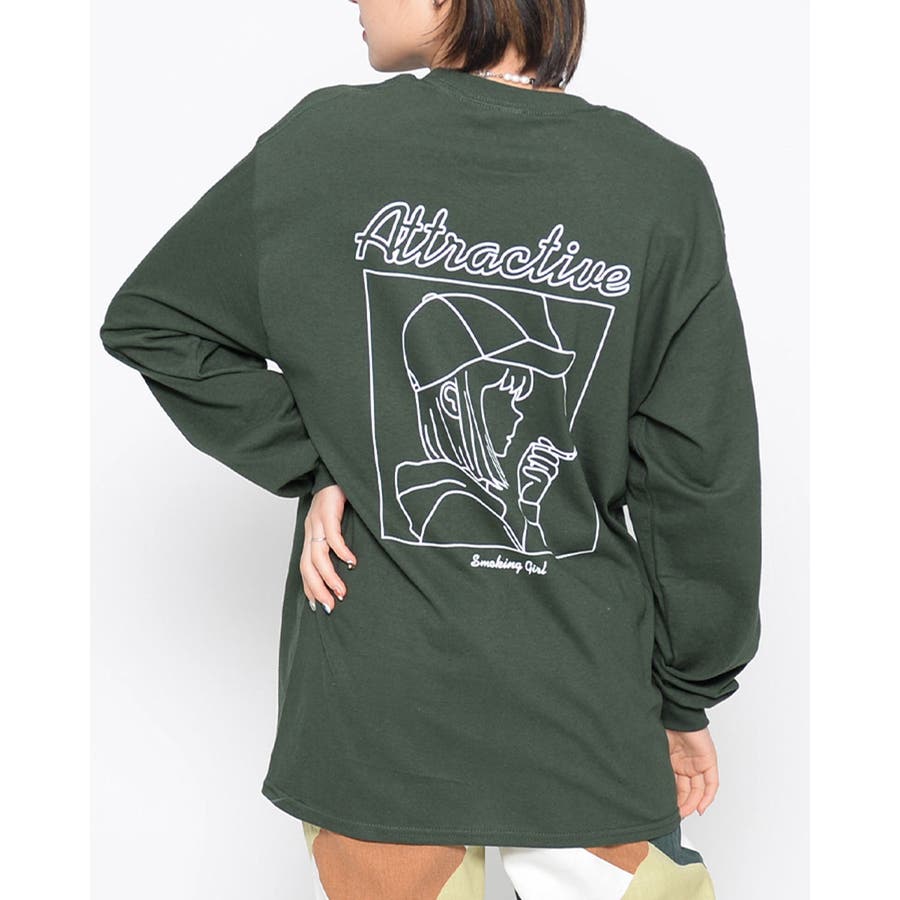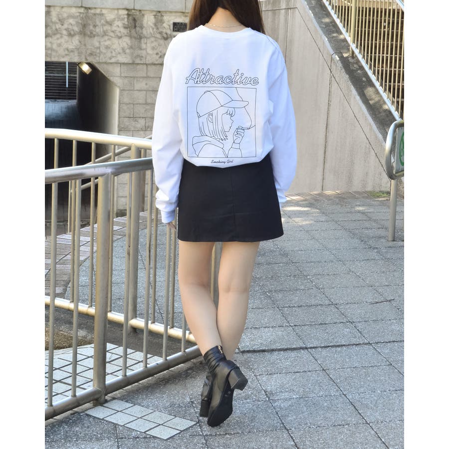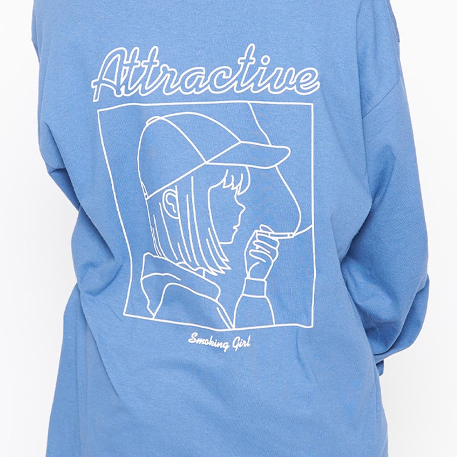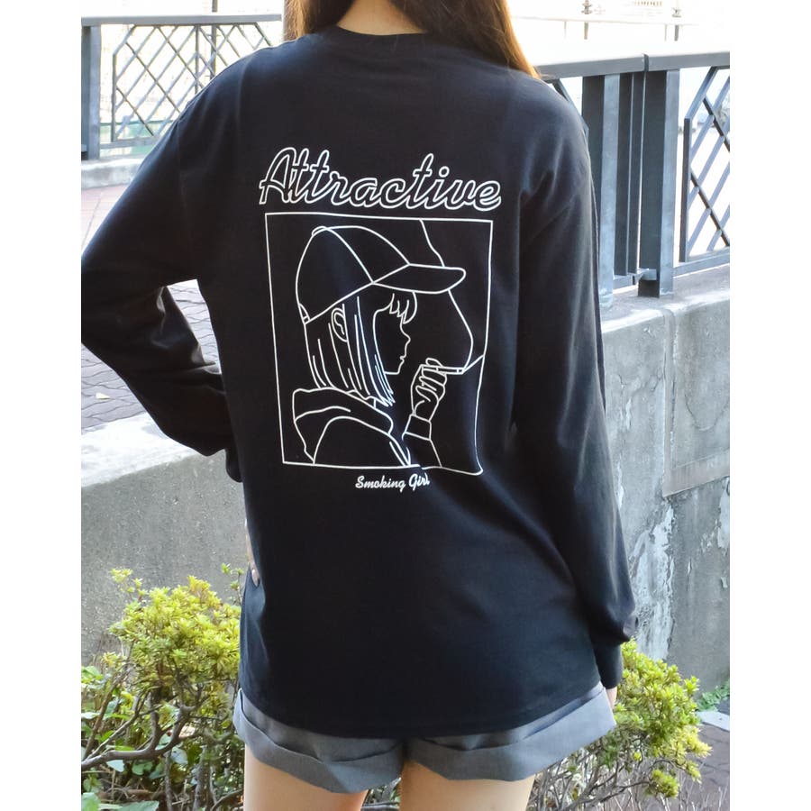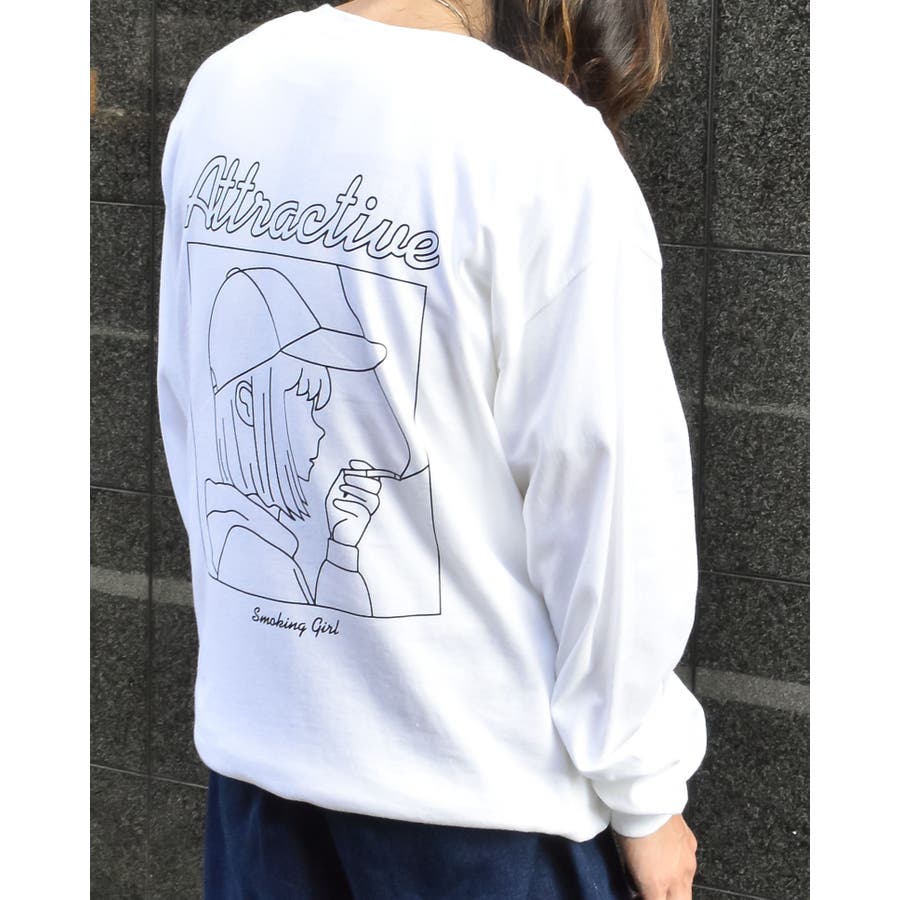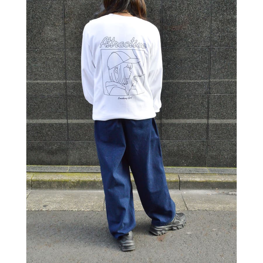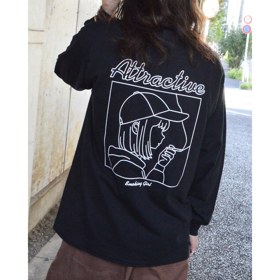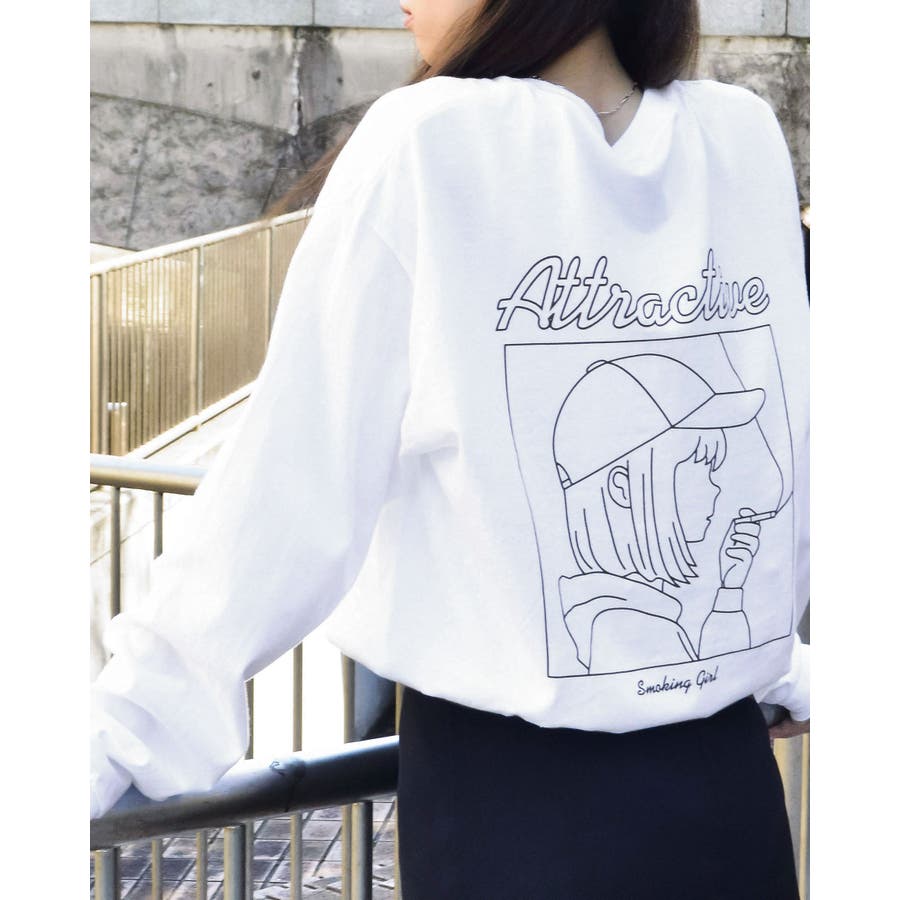 ・人気の【スモーキングガール】シリーズのプリントが施されたロングTシャツ。