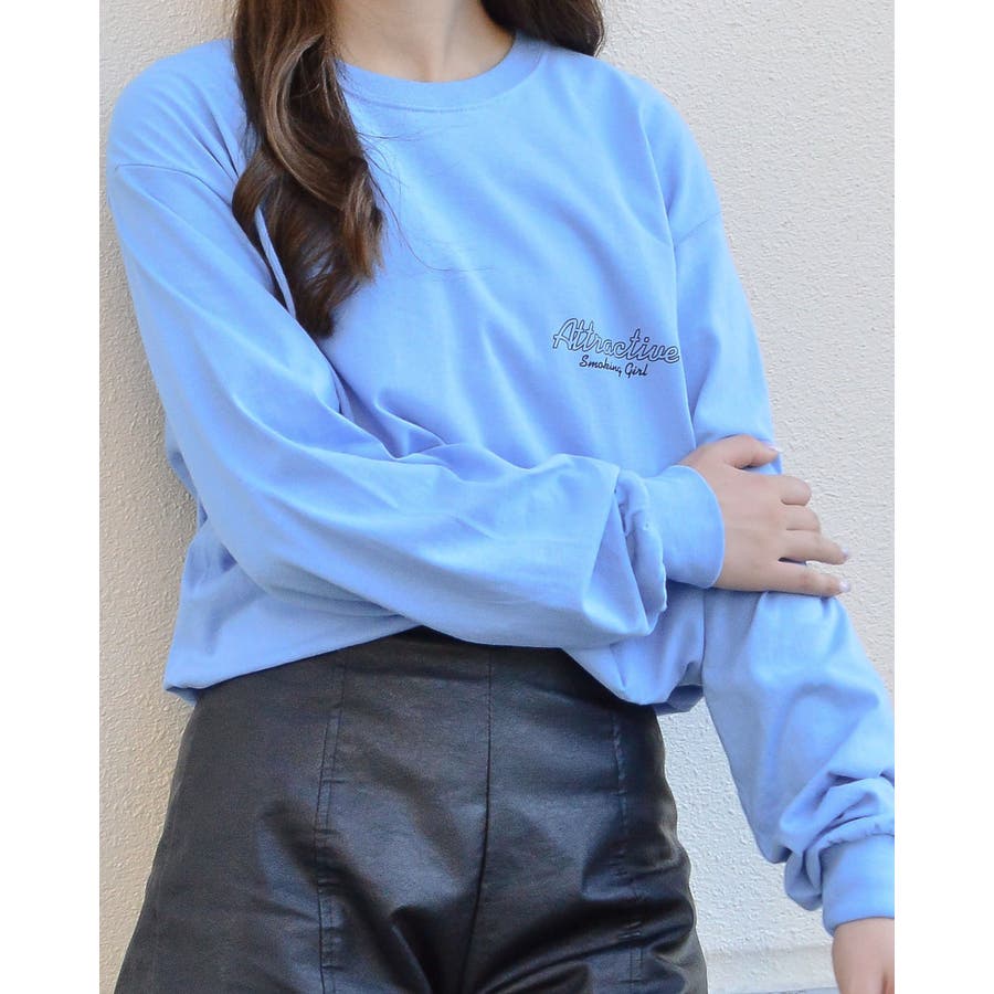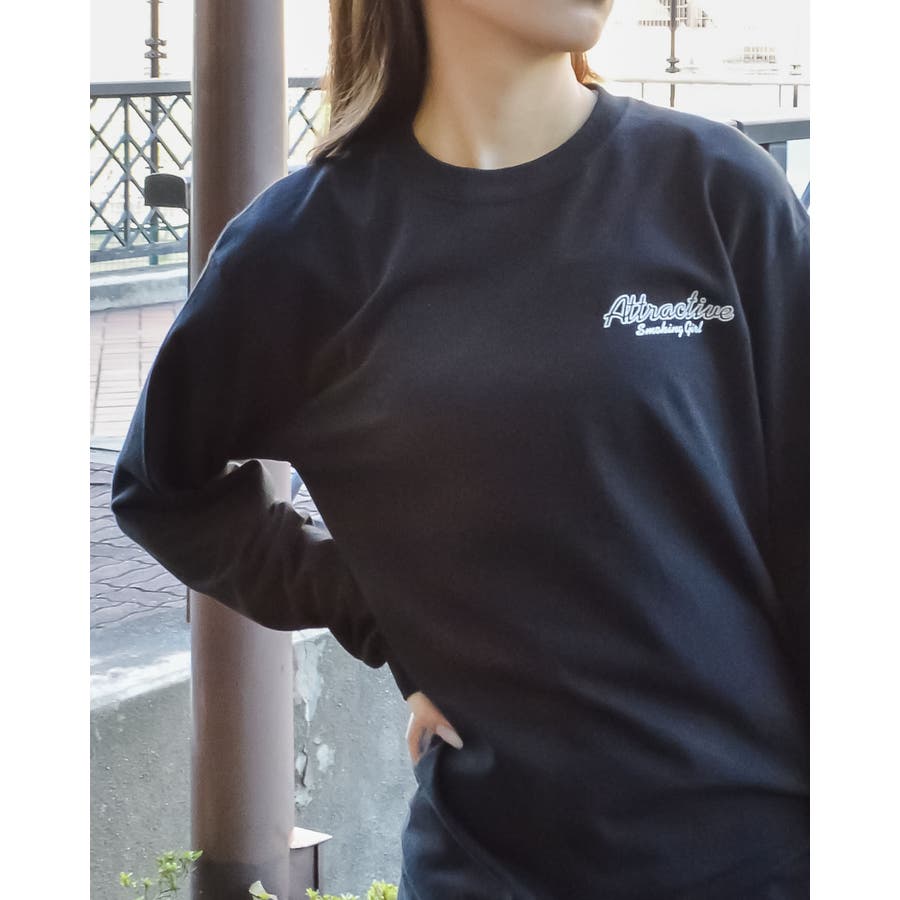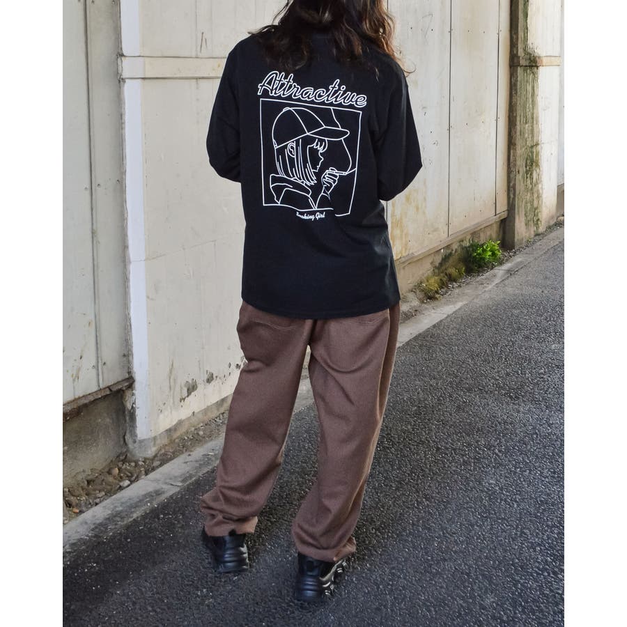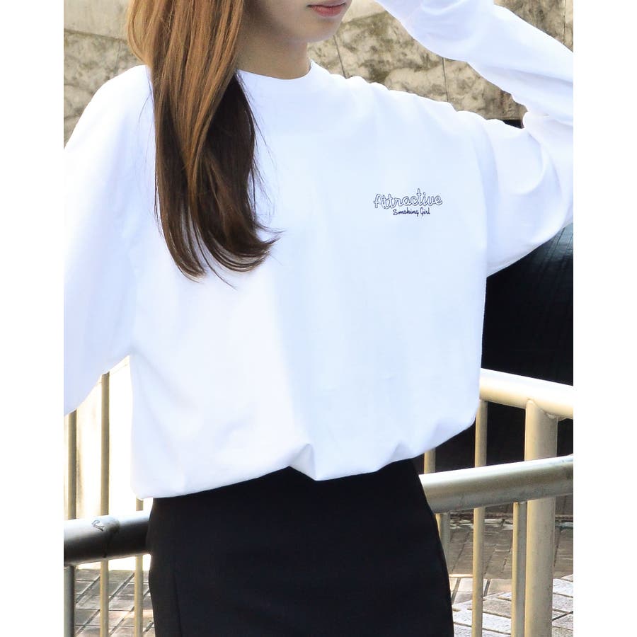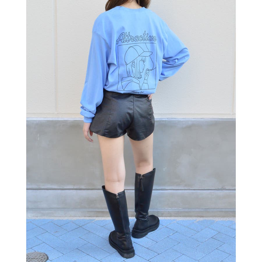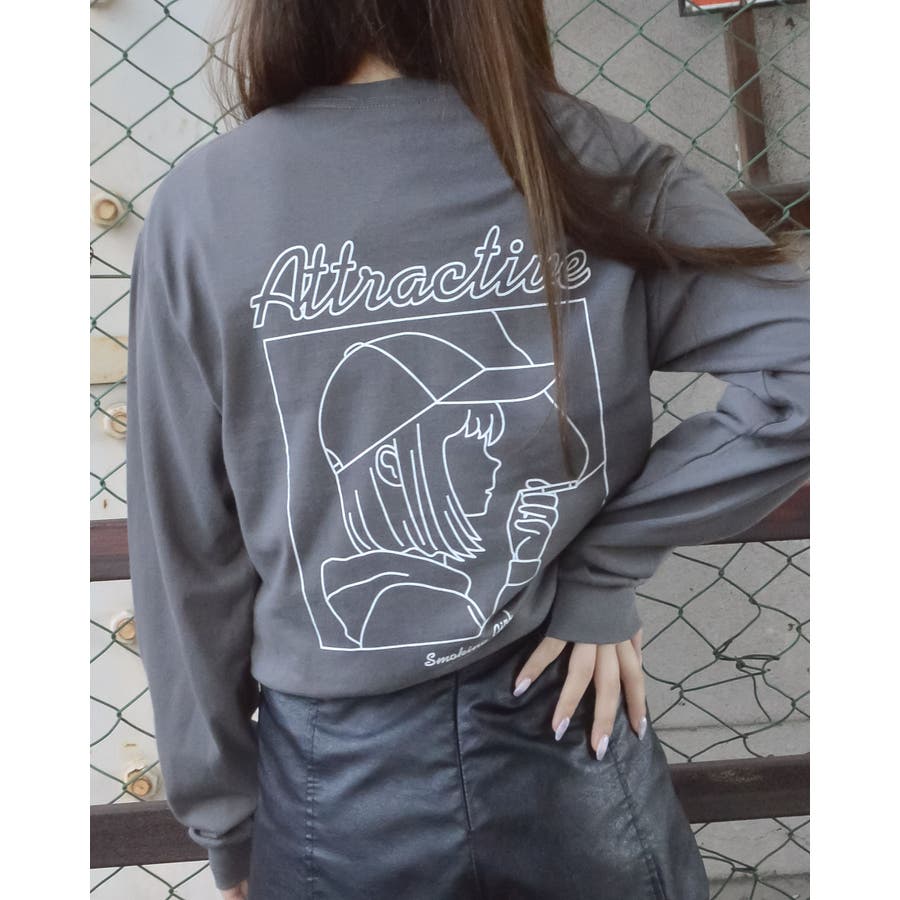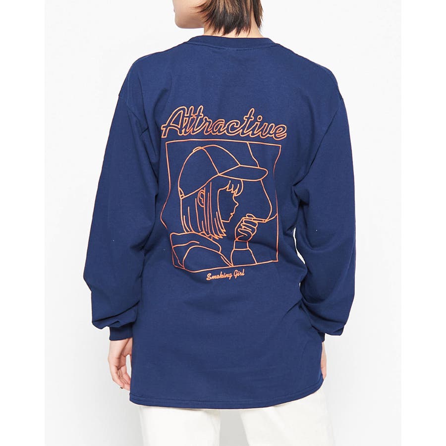 ・人気の【スモーキングガール】シリーズのプリントが施されたロングTシャツ。