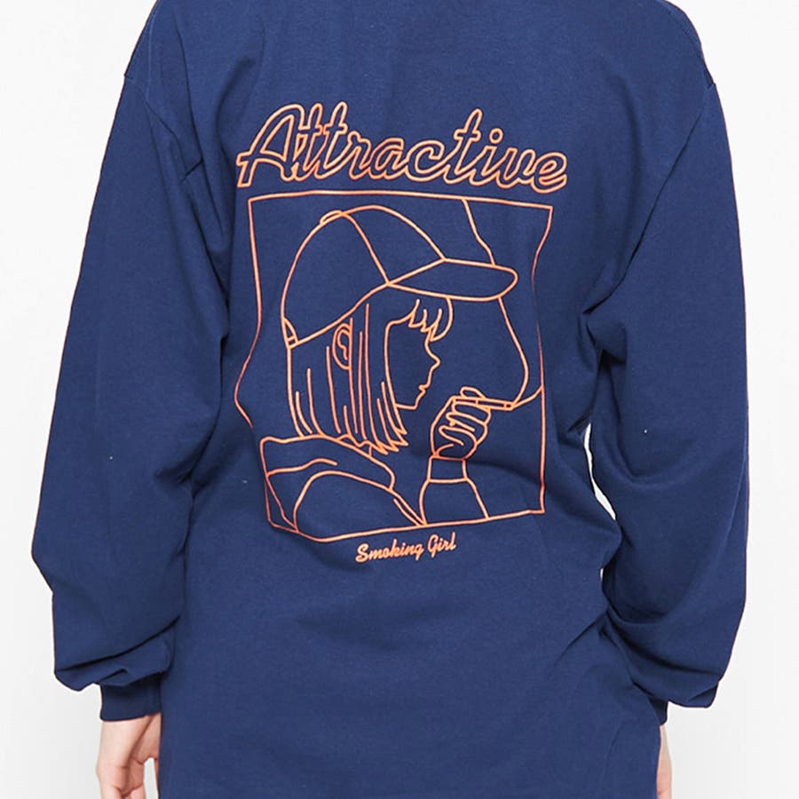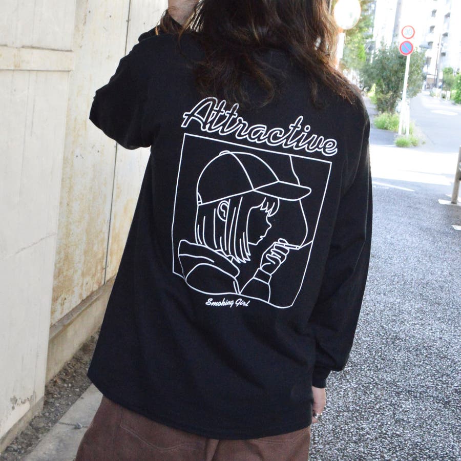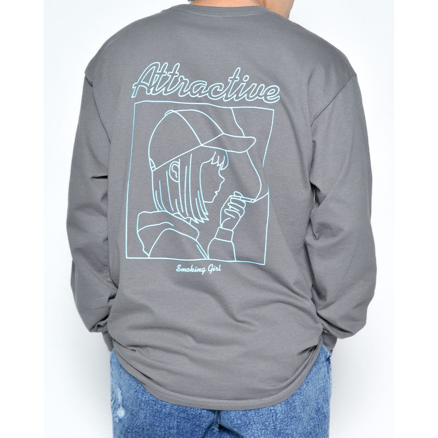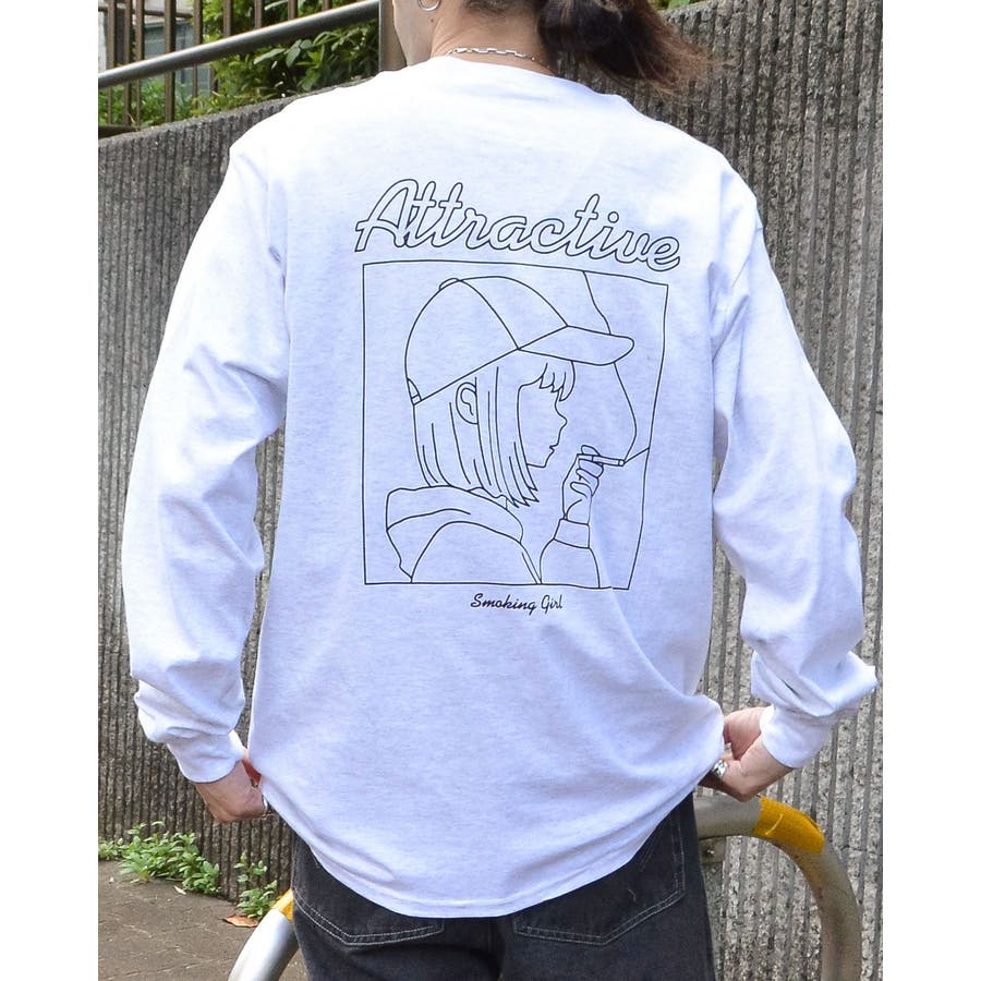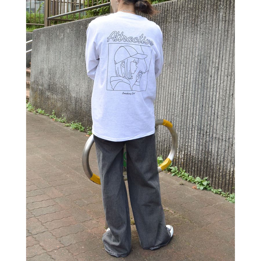 メンズ 服 韓国 ビッグシルエット BIG Tシャツ オーバーサイズ ビッグシルエット ストリート系 ストリート アメカジ ユニセックス ロンT メンズ 長袖 長袖Tシャツ カットソー プリント 春服 春 秋 秋服 冬 冬服 大きいサイズ バックプリント 韓国ファッション Smoking Girl 6ozコットン 韓国 韓国ファッション Y2K おしゃれ かわいい