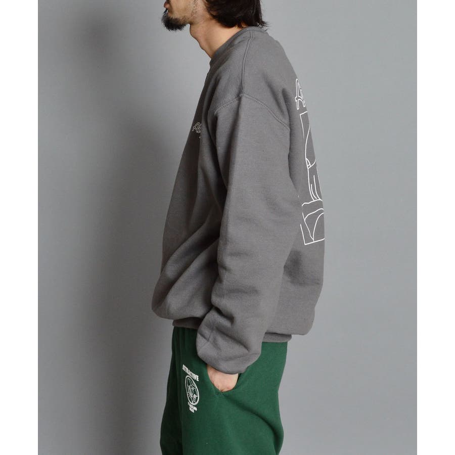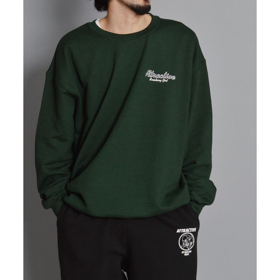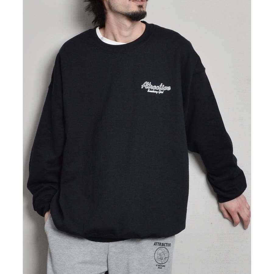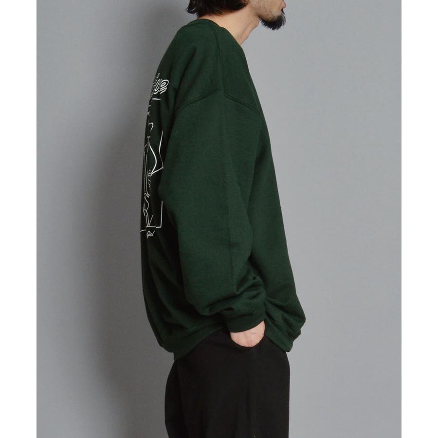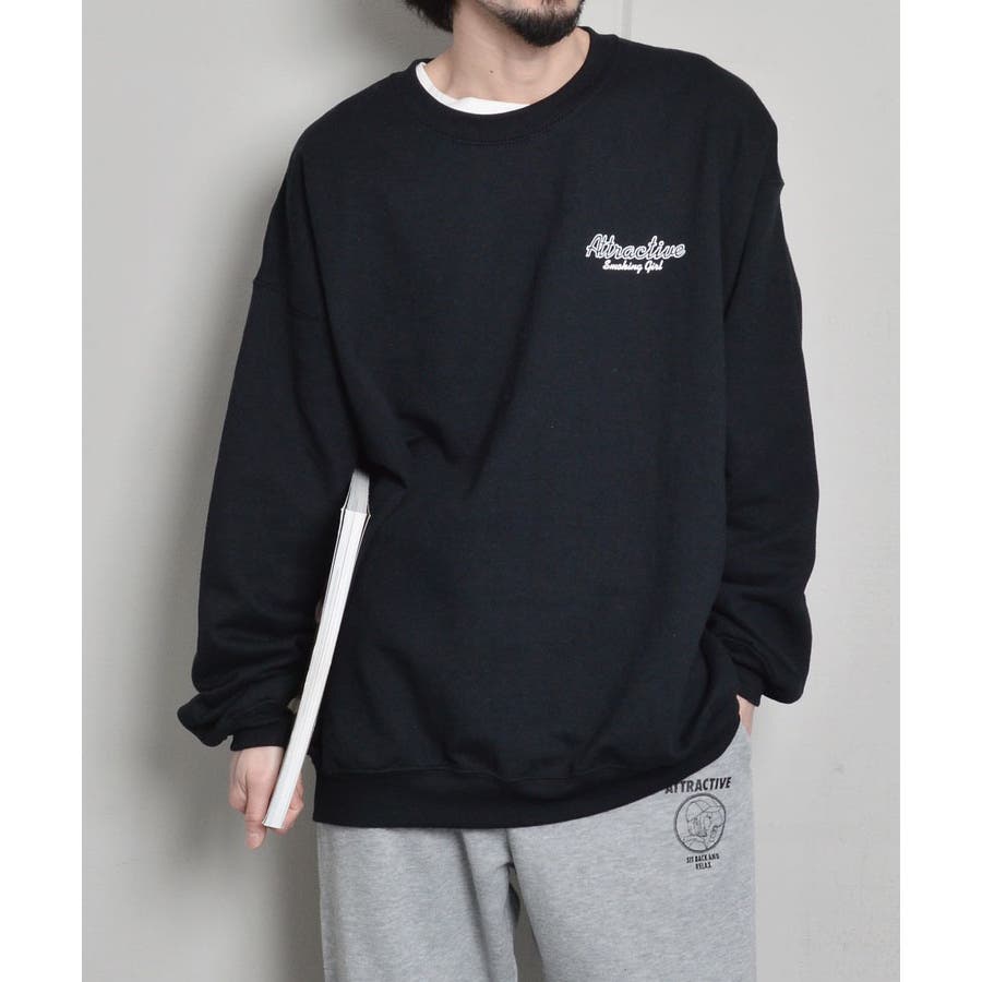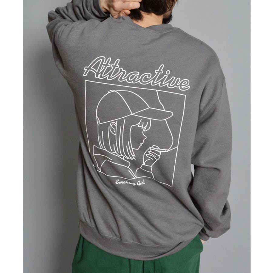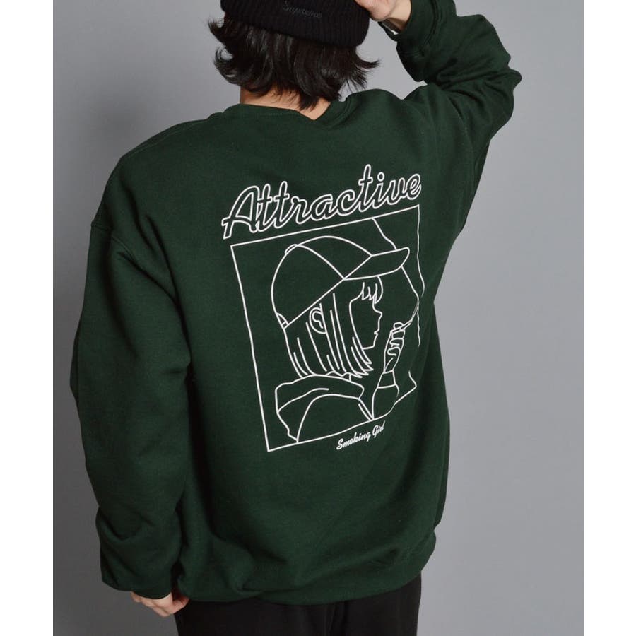・トレンドの線画イラストをバックプリントしたビッグシルエットトレーナー。