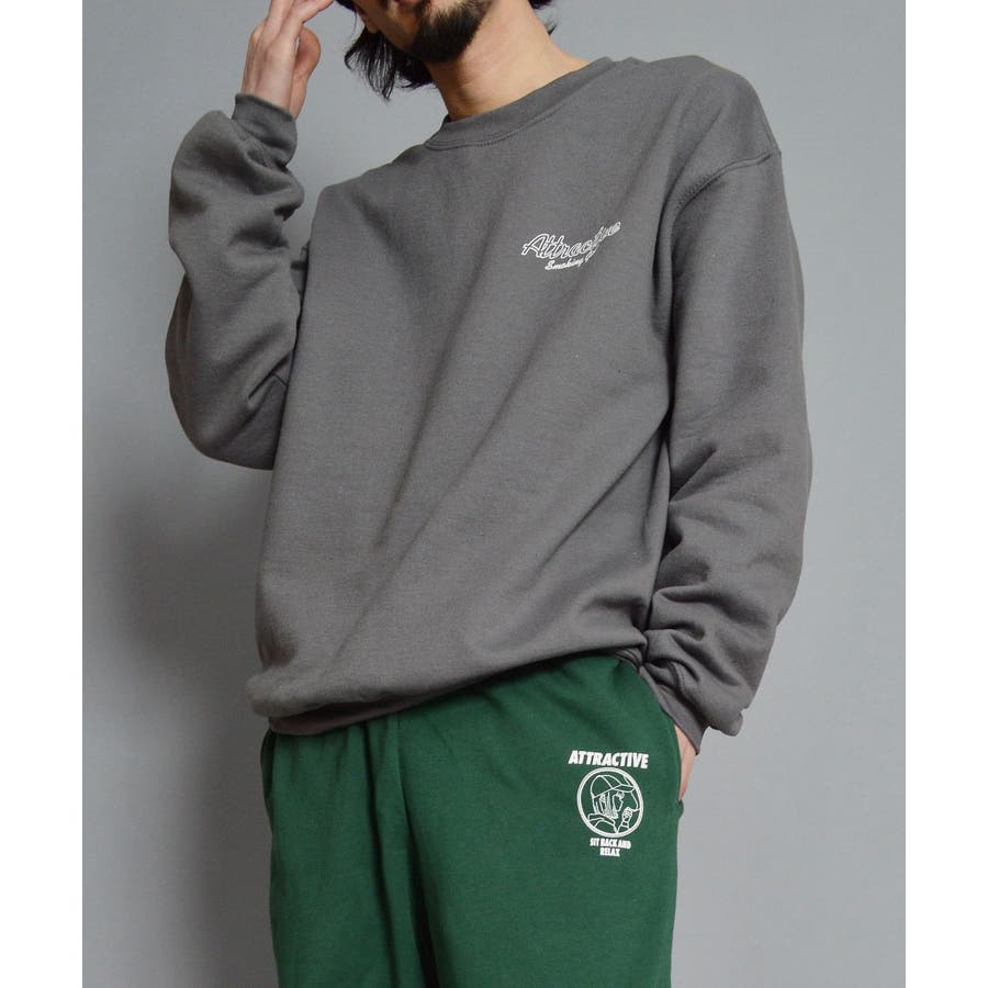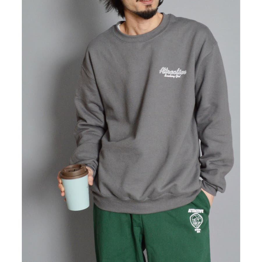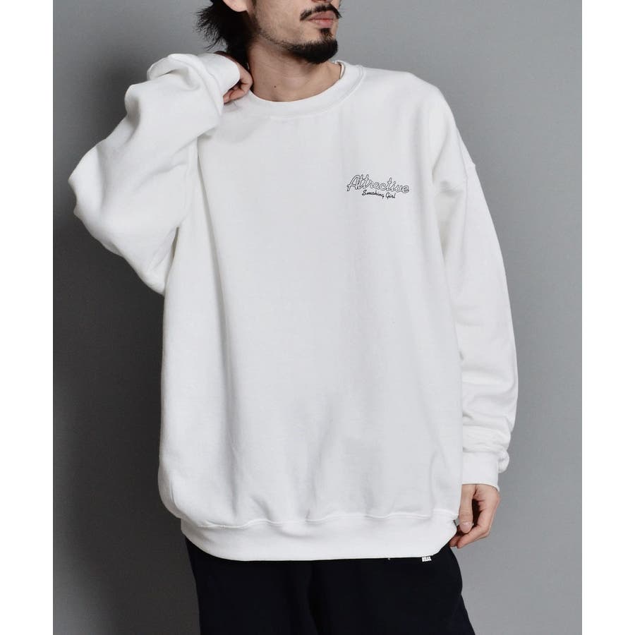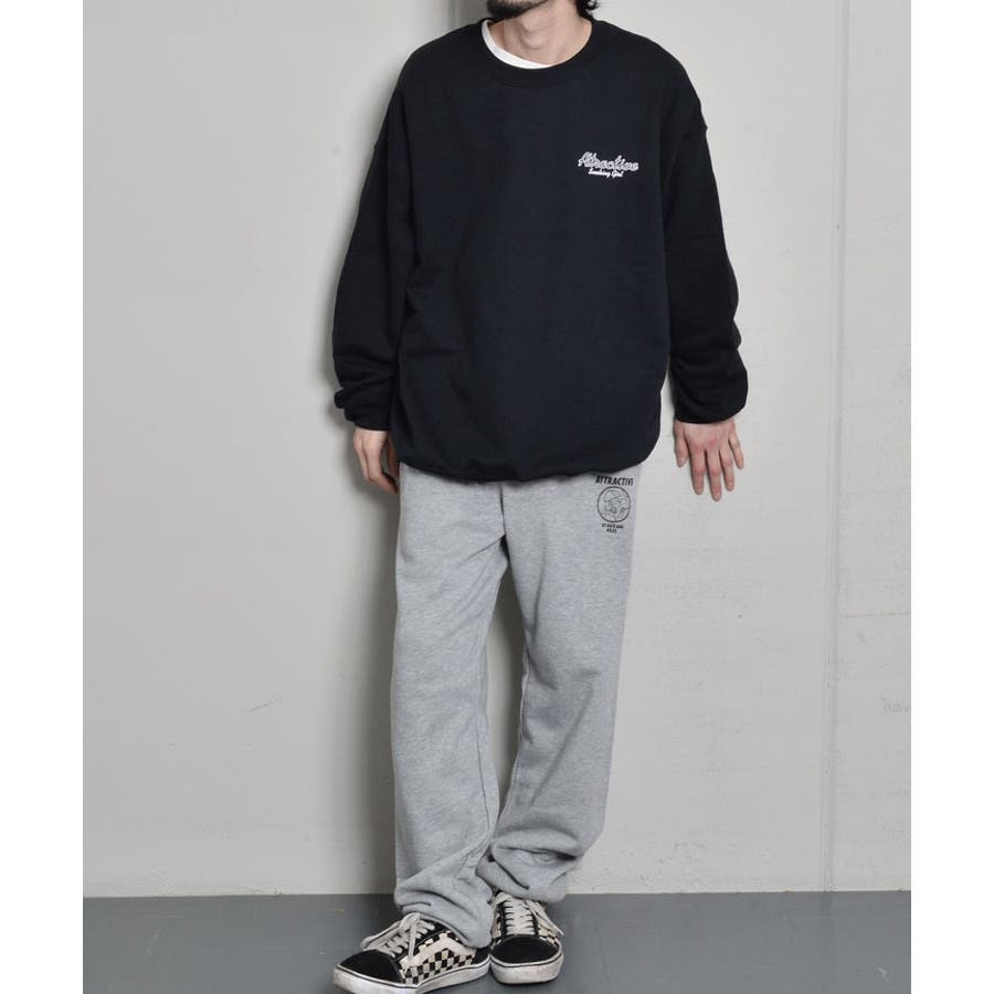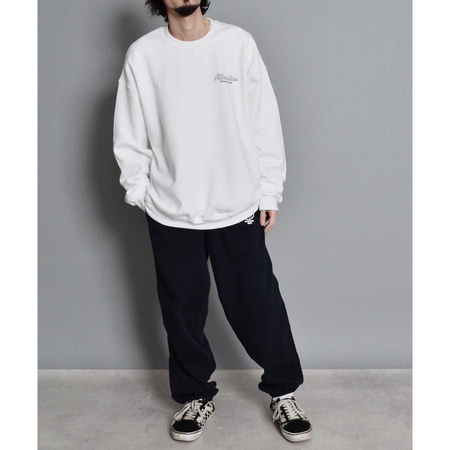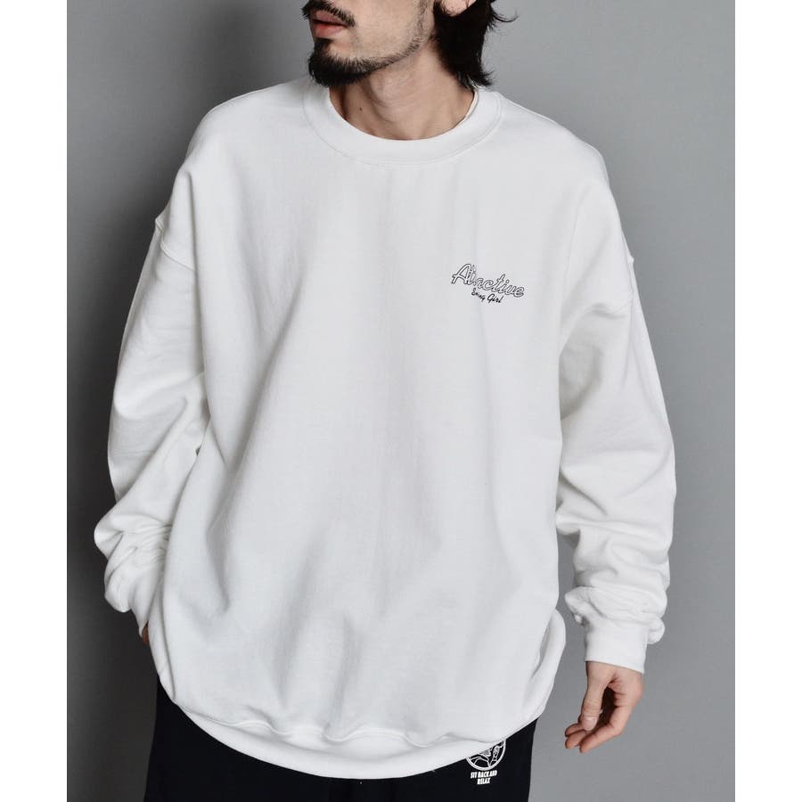 ・トレンドの線画イラストをバックプリントしたビッグシルエットトレーナー。