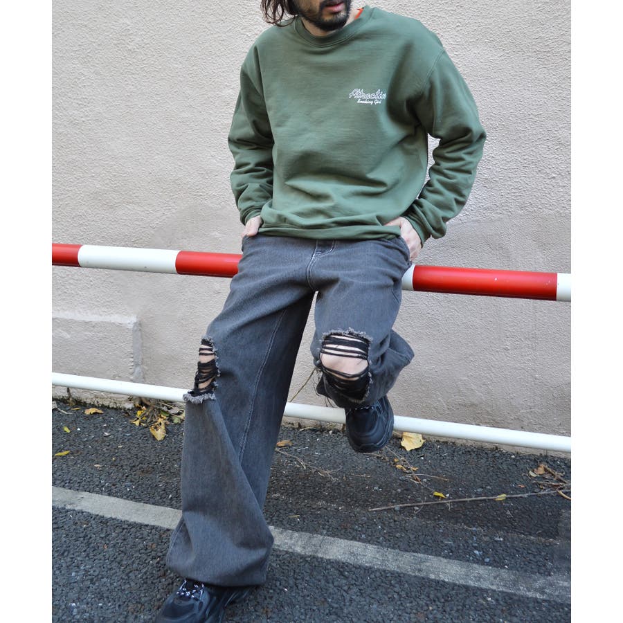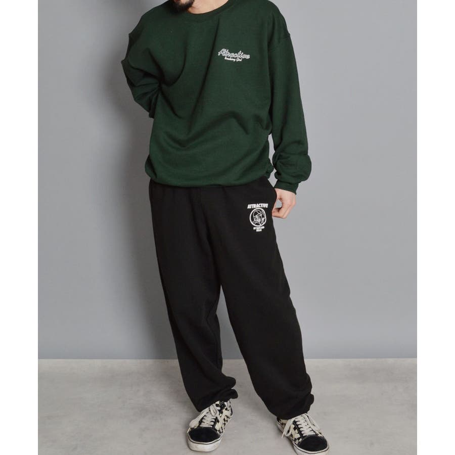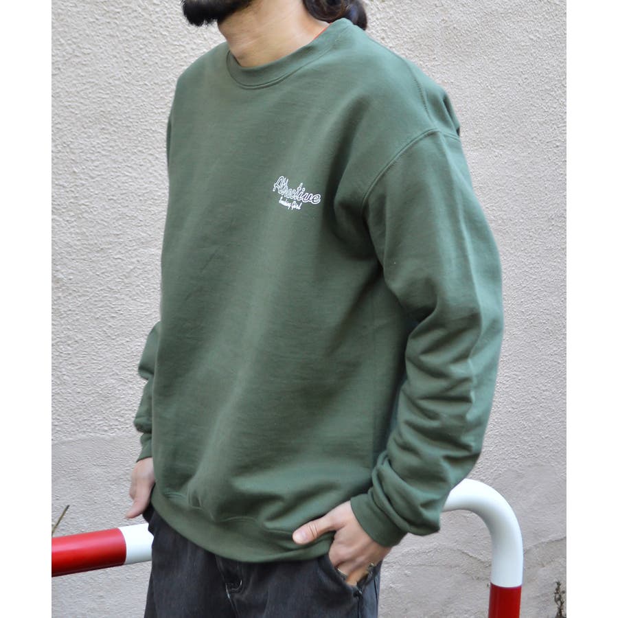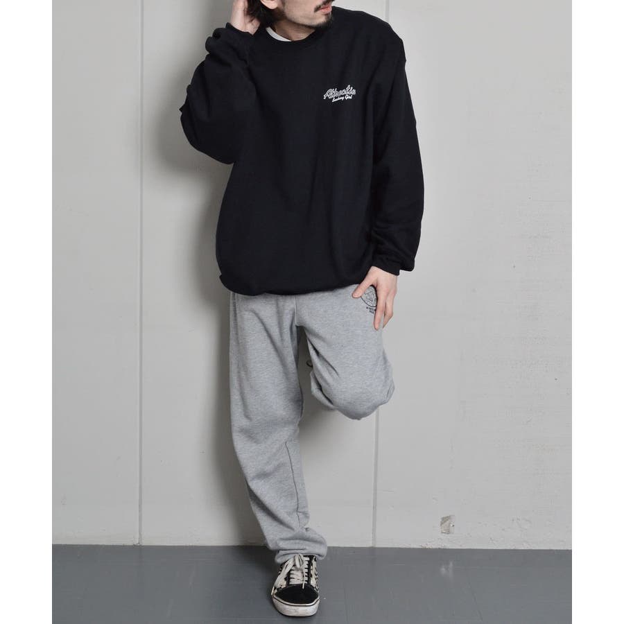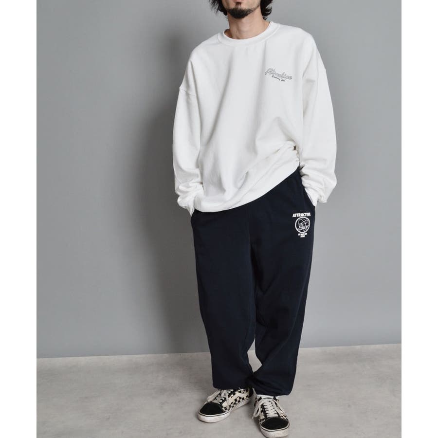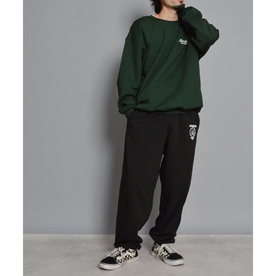・トレンドの線画イラストをバックプリントしたビッグシルエットトレーナー。