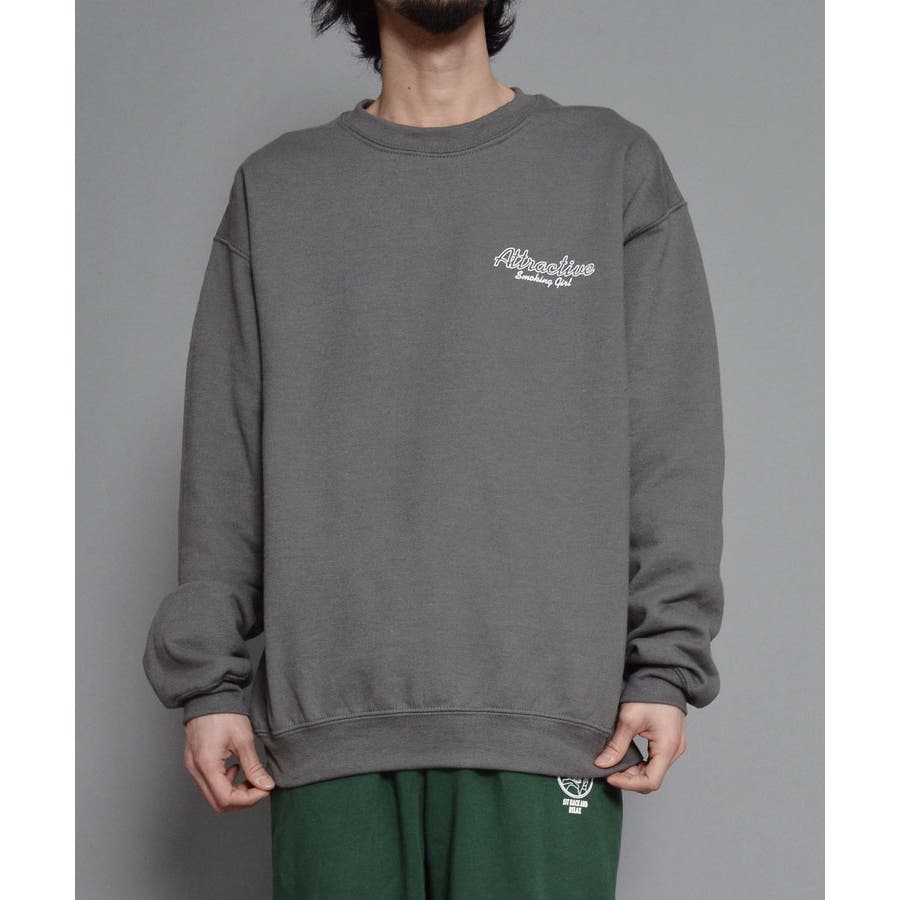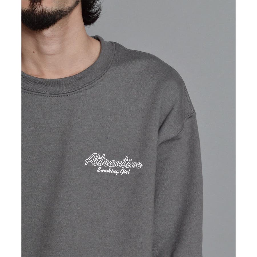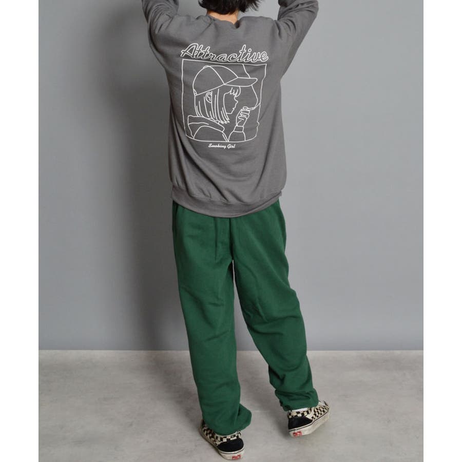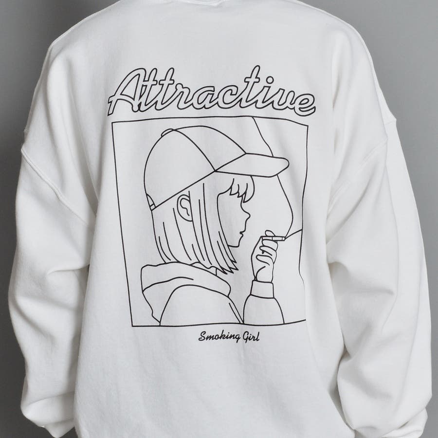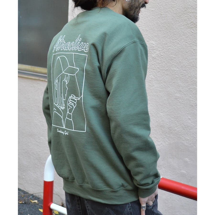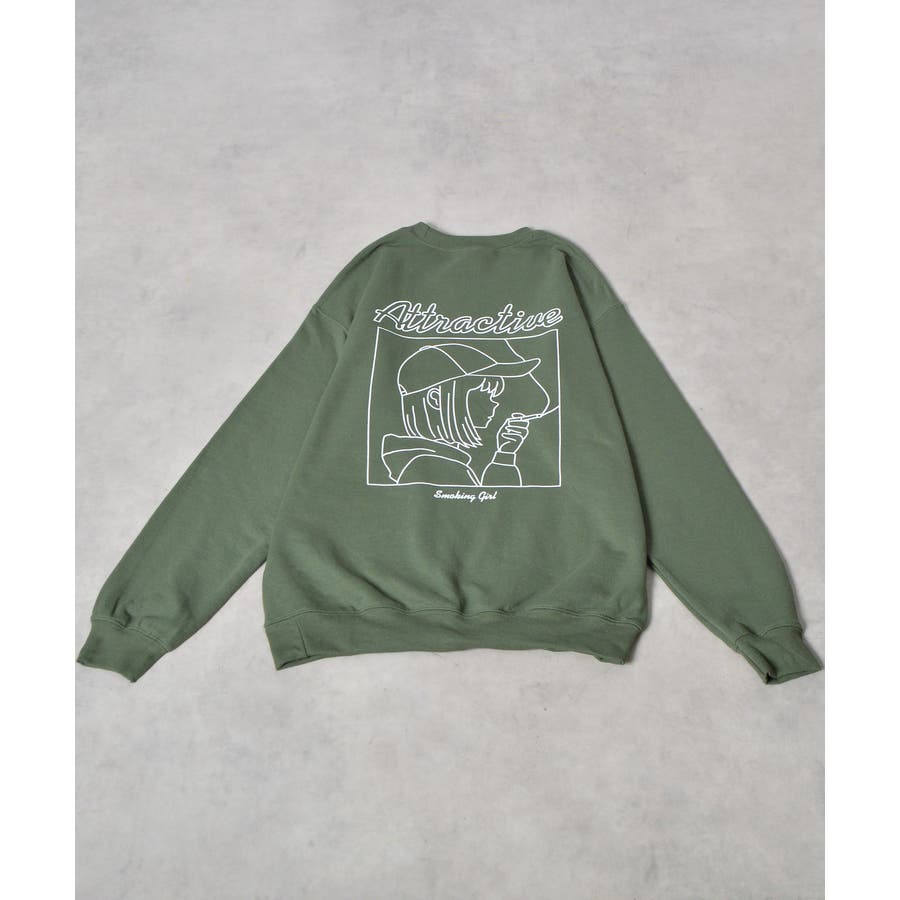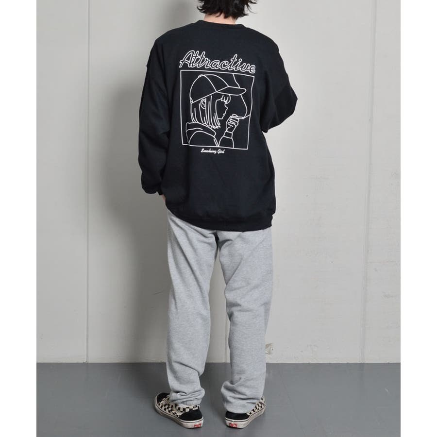 スウェット メンズ レディース 線画 スモーキングガール Smoking Girl ヴィンテージ風 レトロ アメカジ 原宿 ビッグシルエット トレーナー スエット 線画イラスト バックプリントかっこいい 大人