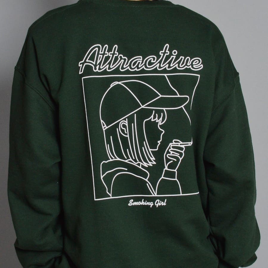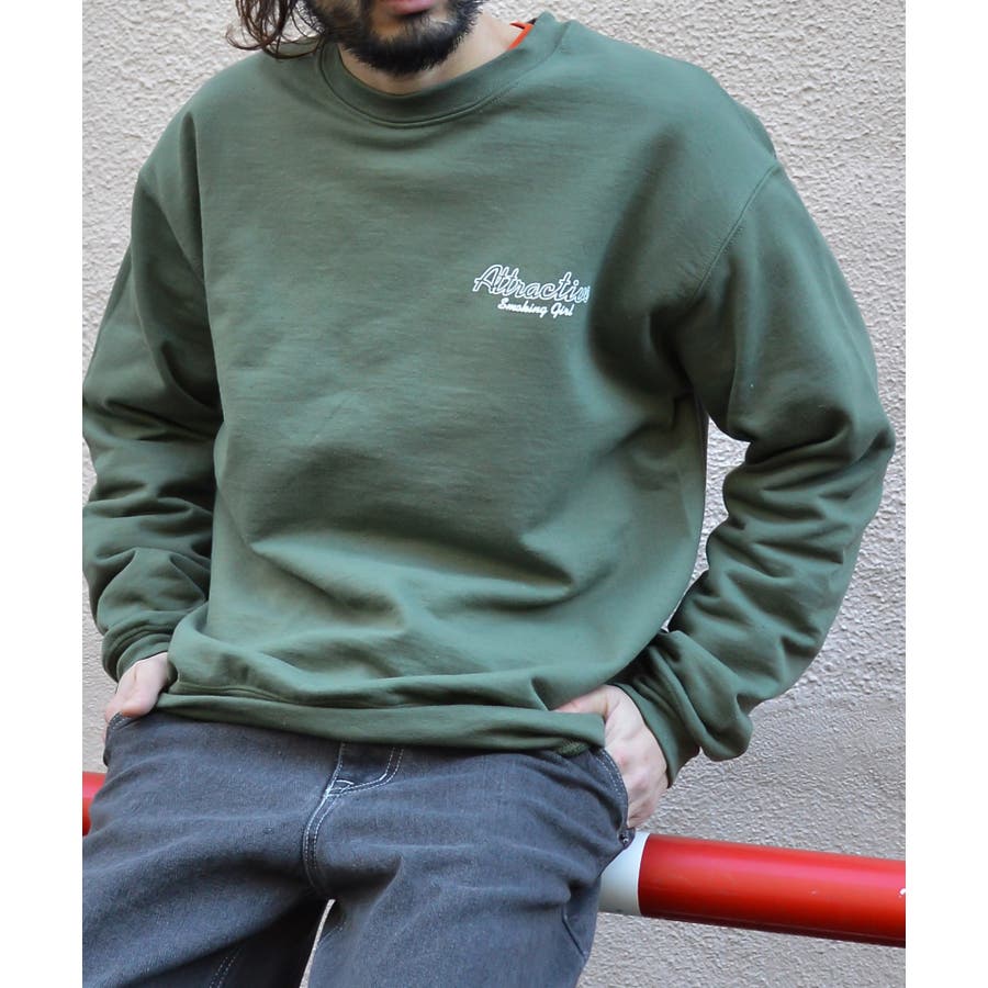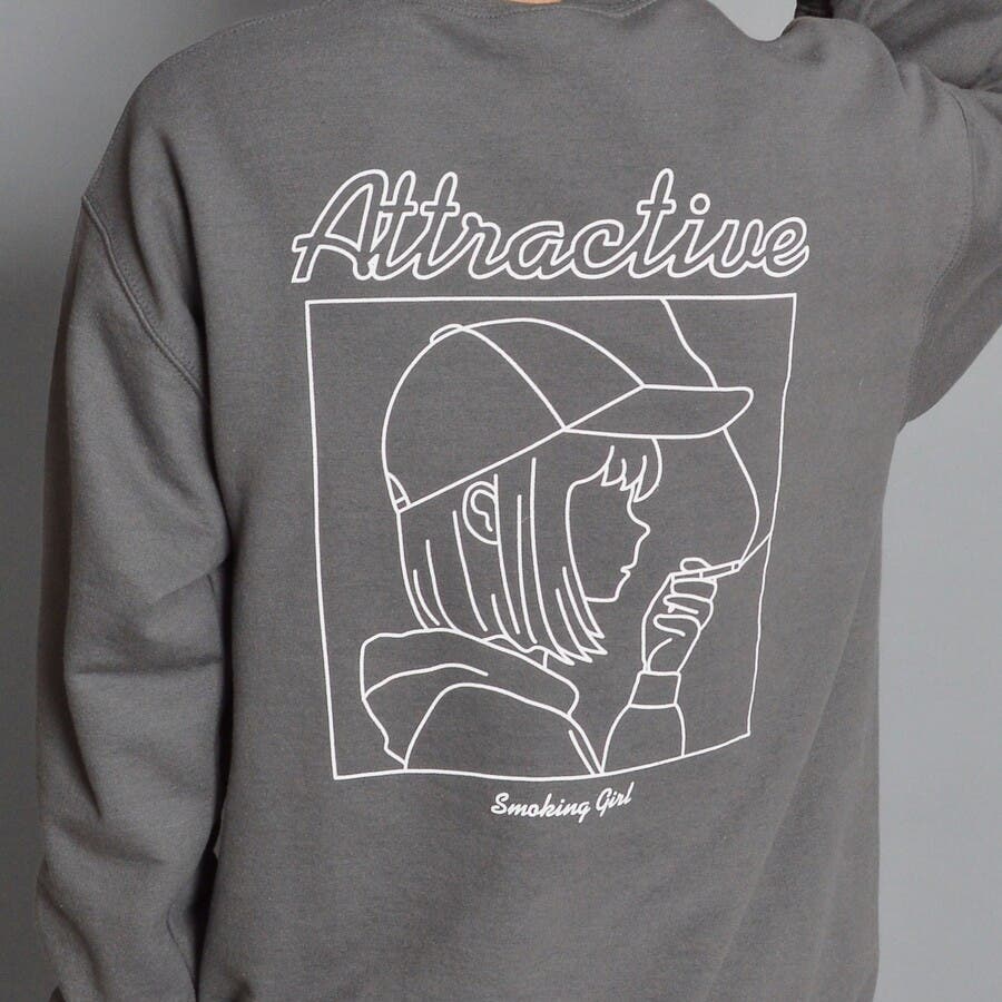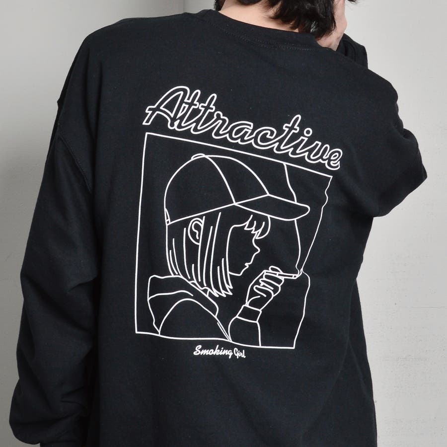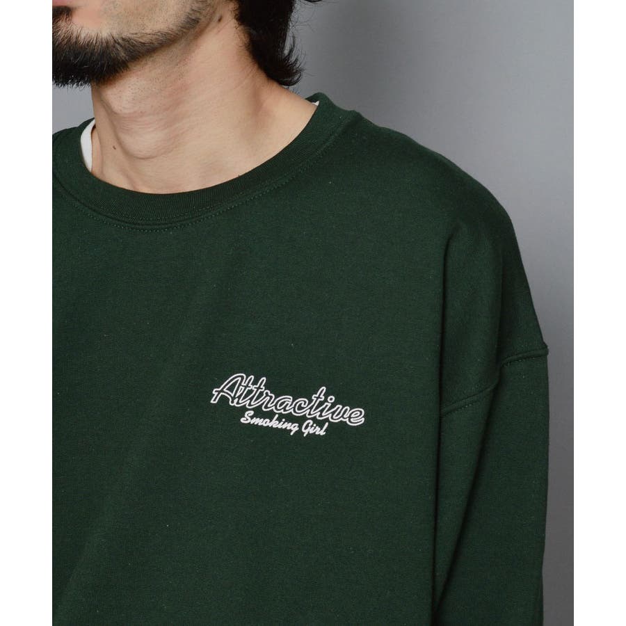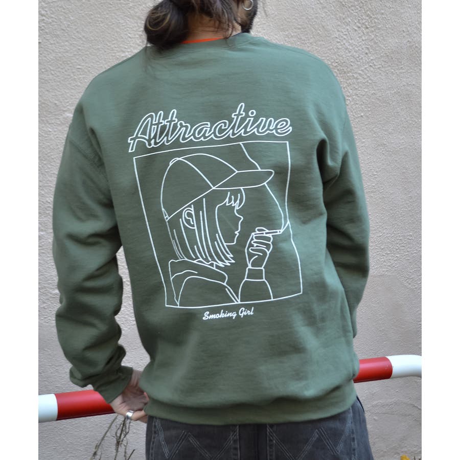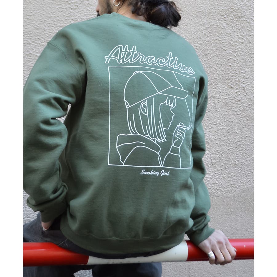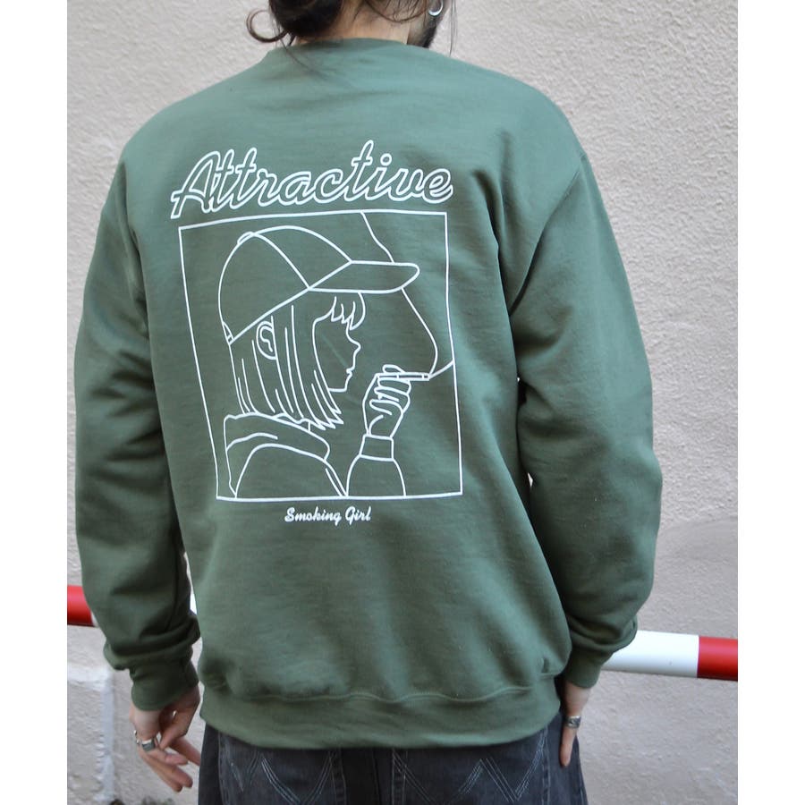 スウェット メンズ レディース 線画 スモーキングガール Smoking Girl ヴィンテージ風 レトロ アメカジ 原宿 ビッグシルエット トレーナー スエット 線画イラスト バックプリントかっこいい 大人