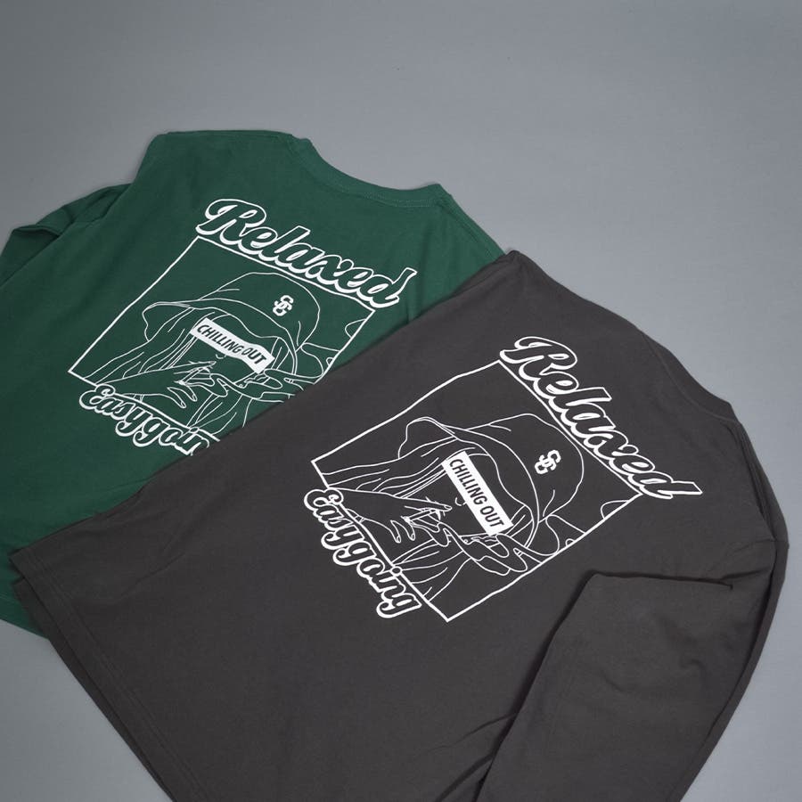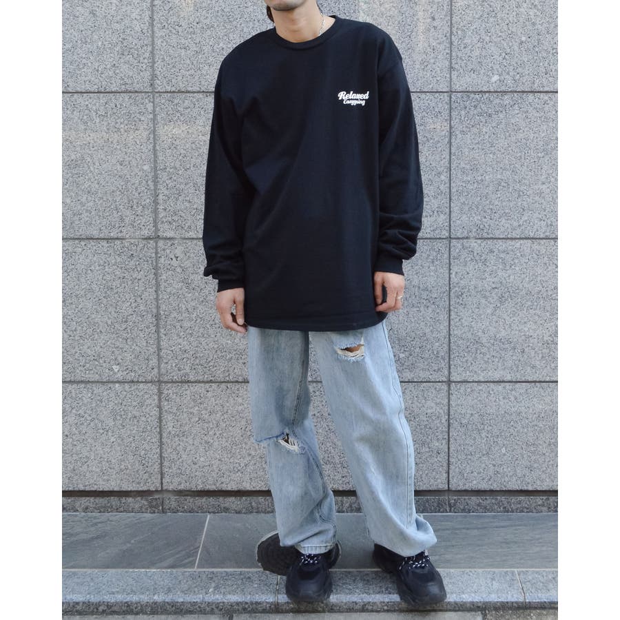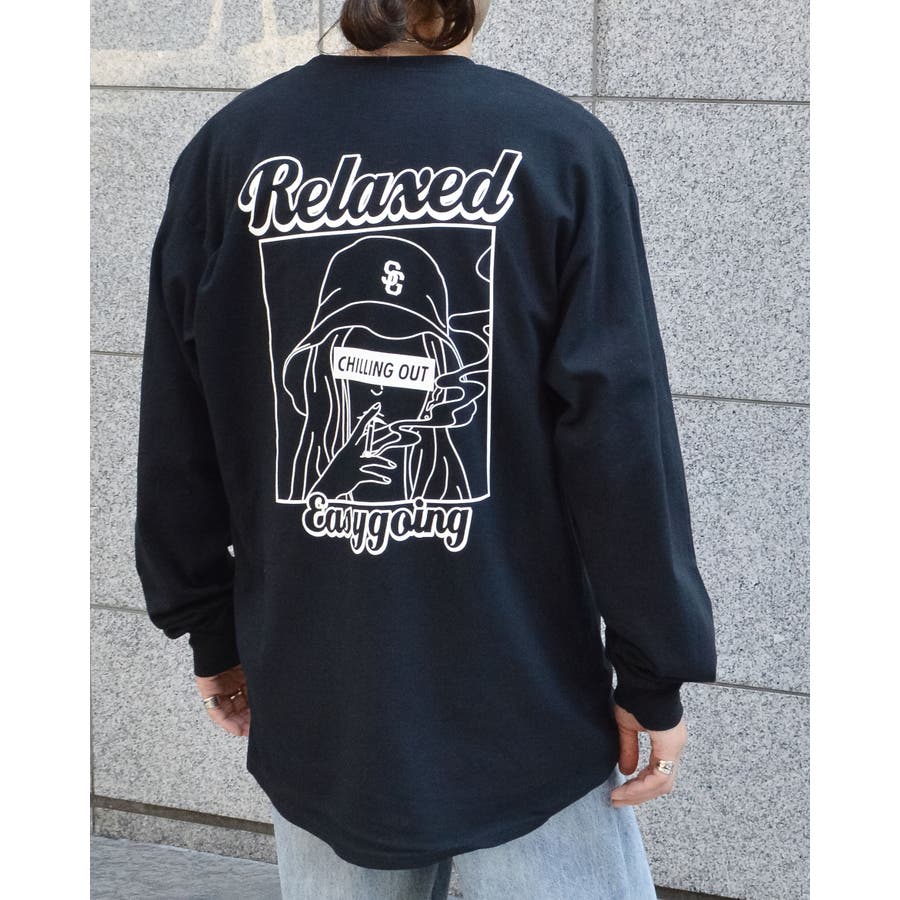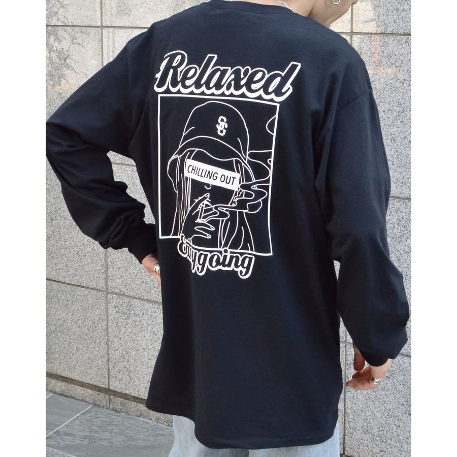 ・大人気の線画イラストをバックにプリントしたビッグシルエットロンT。