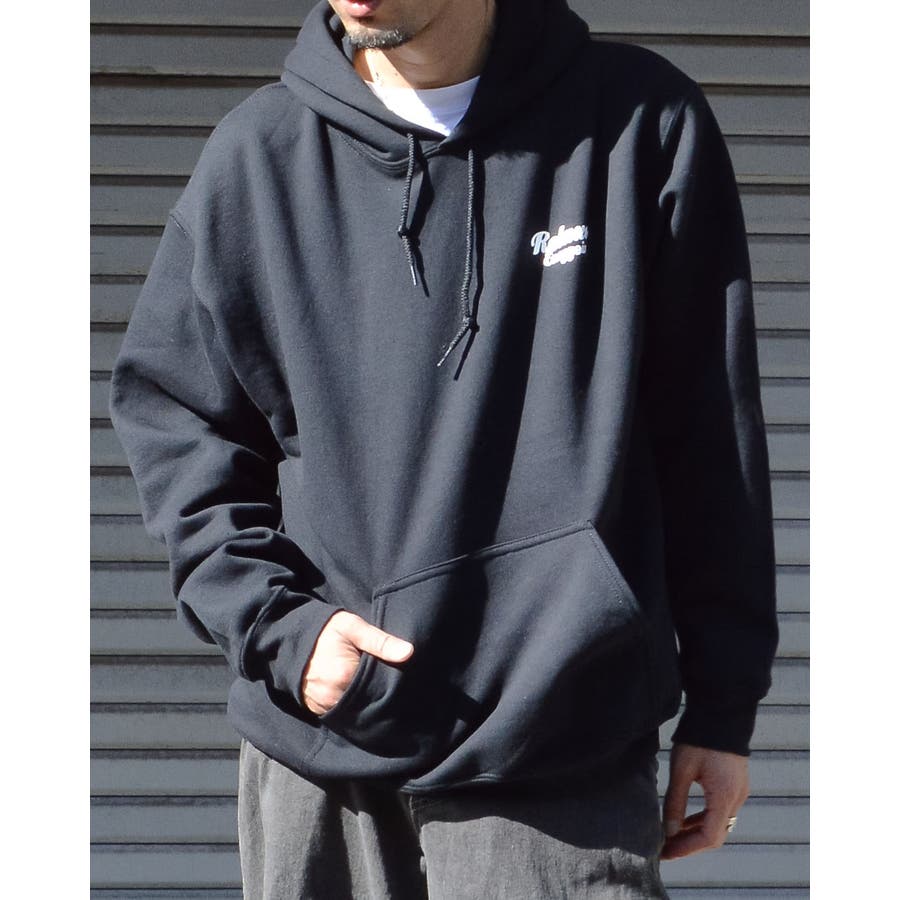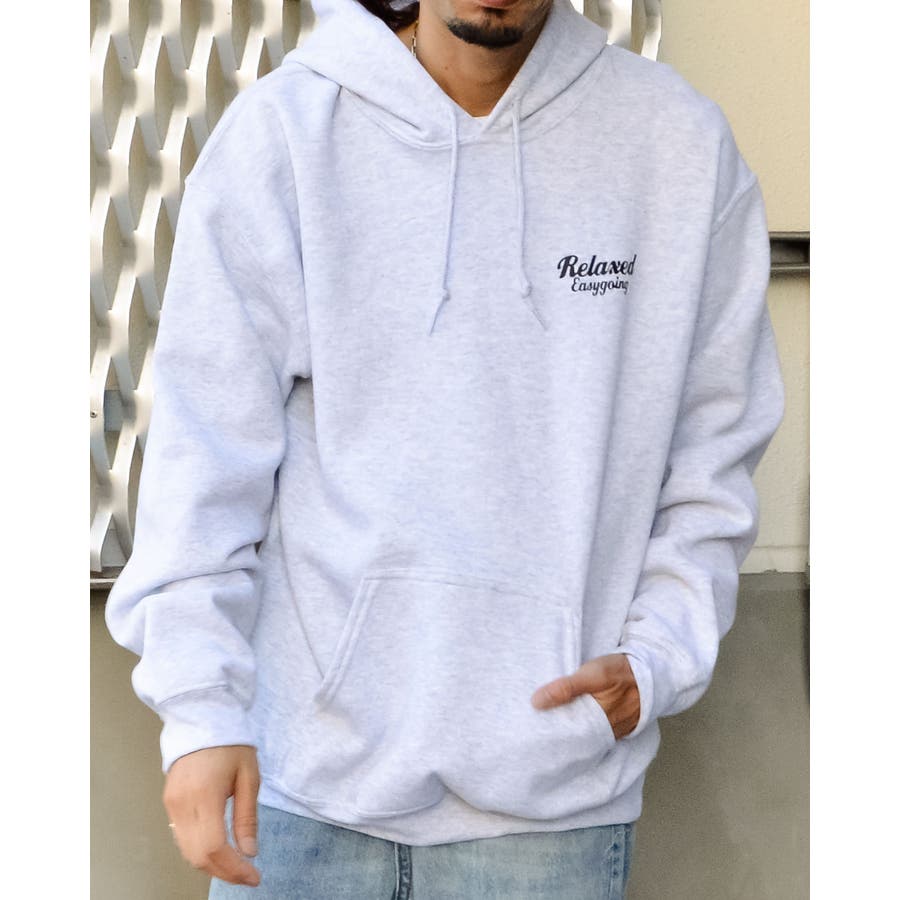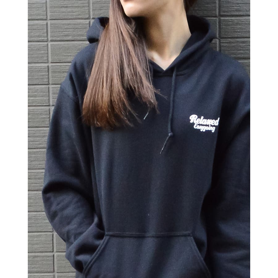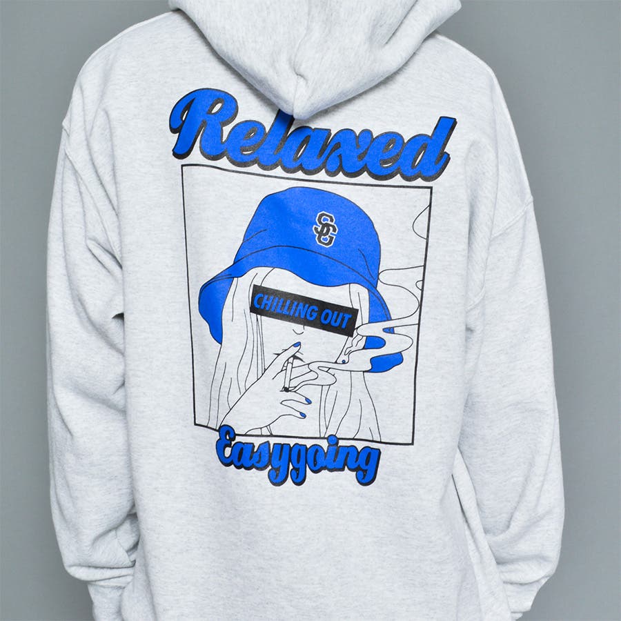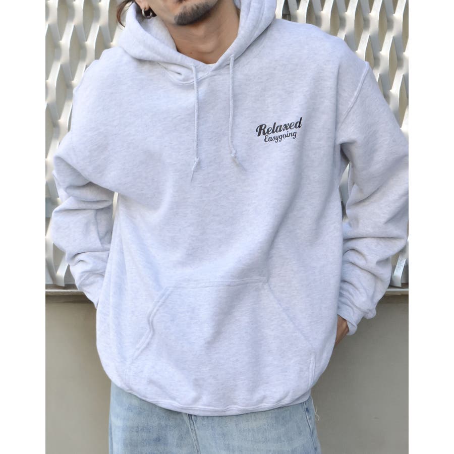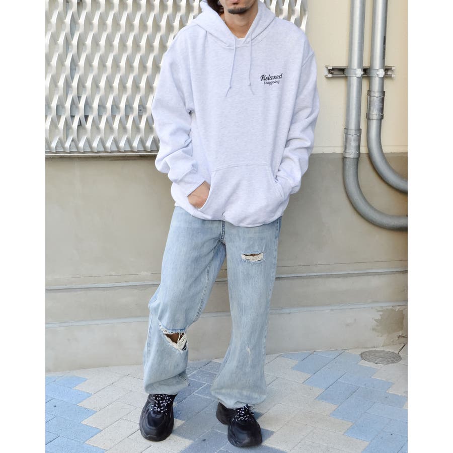 ・大人気の線画イラストをバックにプリントしたビッグシルエットフーディー。
