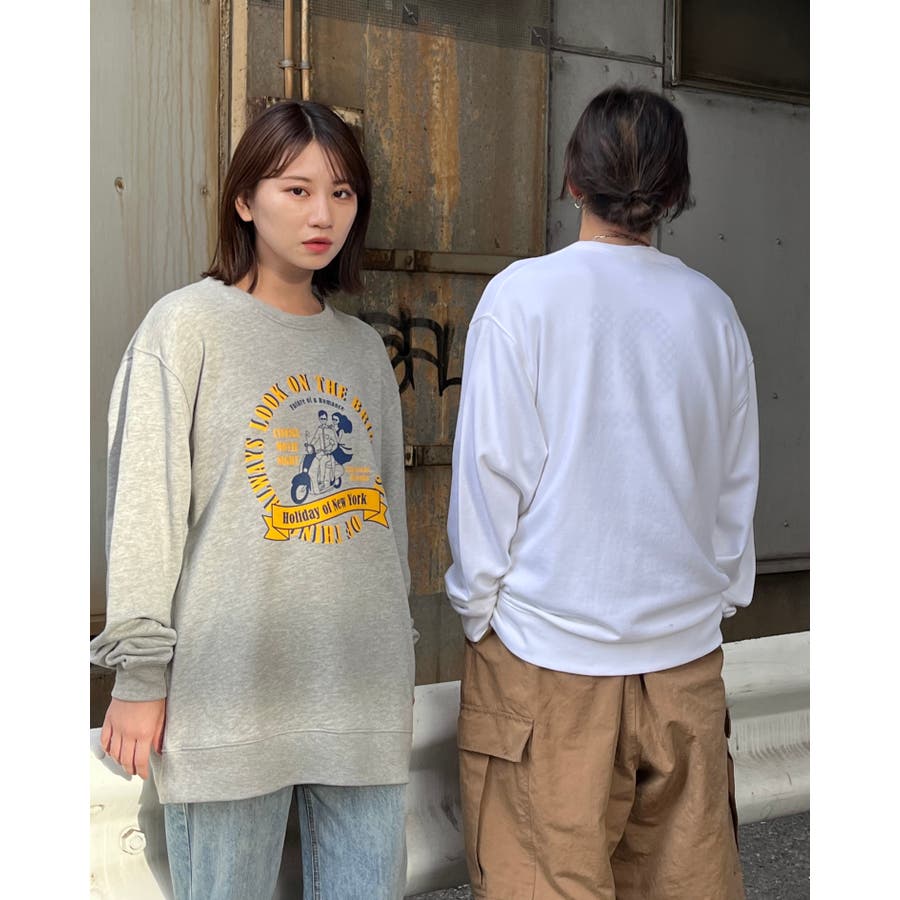 ・ユニセックスで着用できるサイズ感・プリントなので、お揃いで着用したりパートナーと兼用もできます。