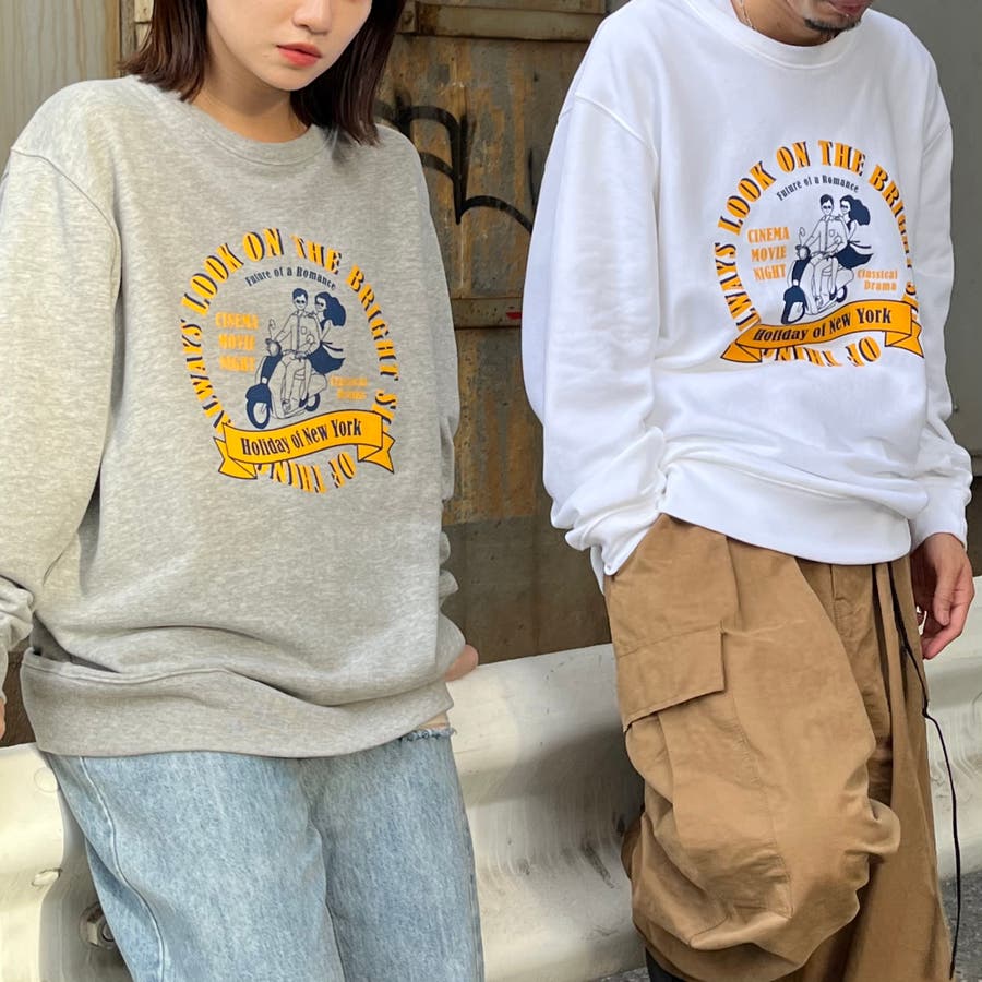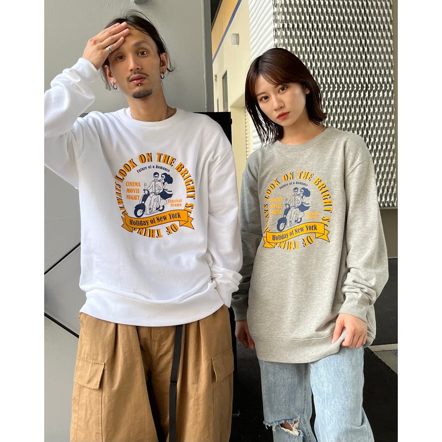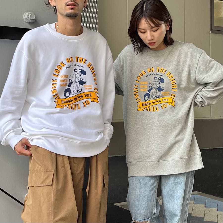 メンズ 服 ストリート ロゴプリント レトロ スウェット シンプル ストリート系 ユニセックス プリント シネマ モチーフ ロゴ 夏服 夏 春服 春 秋 秋服 冬 冬服 オーバーサイズ プリント トレーナー 韓国ファッション 韓国系 古着系 かっこいい おしゃれ