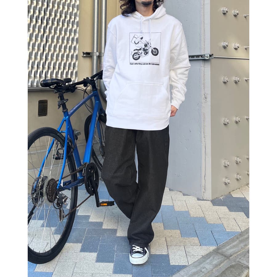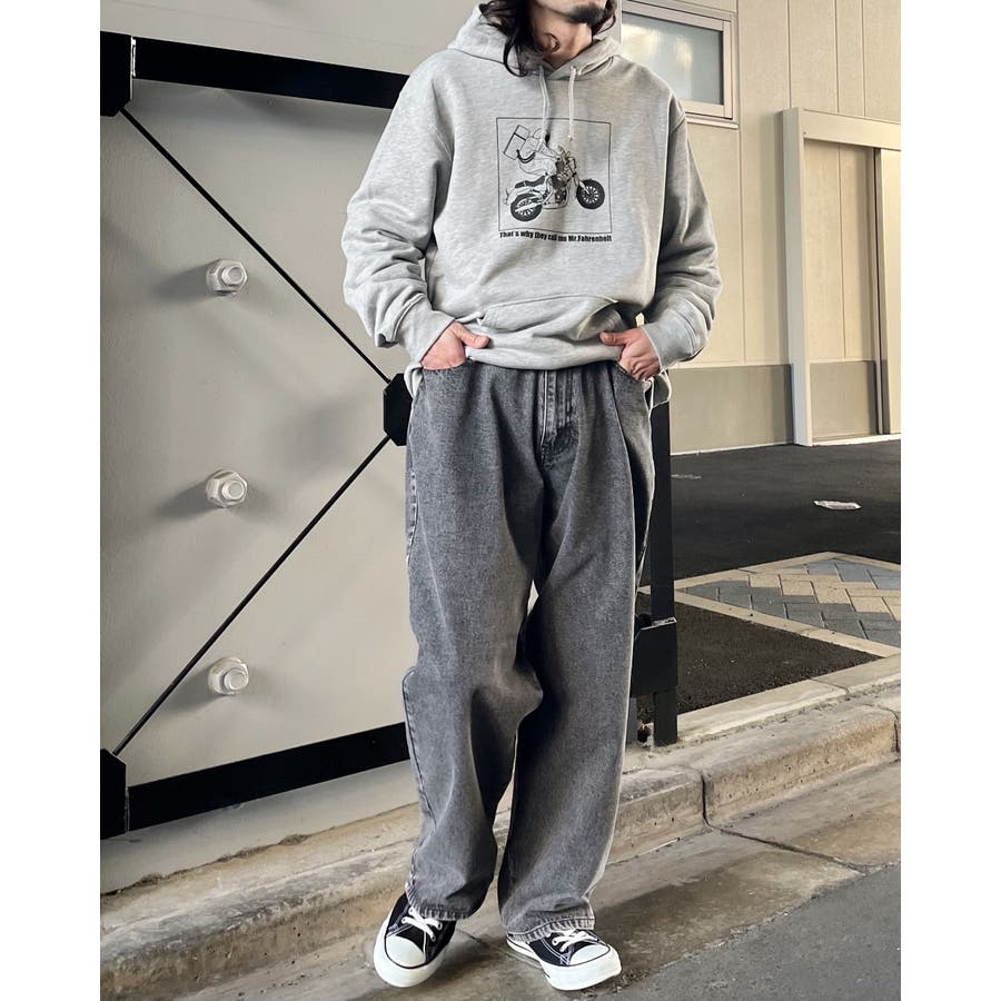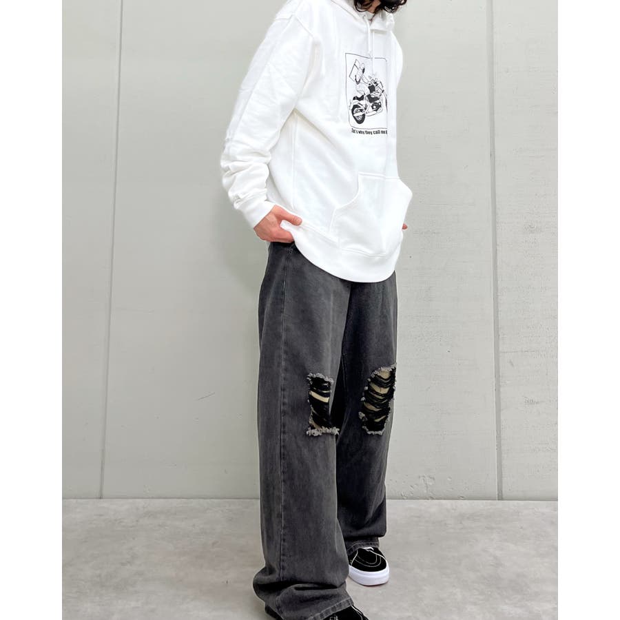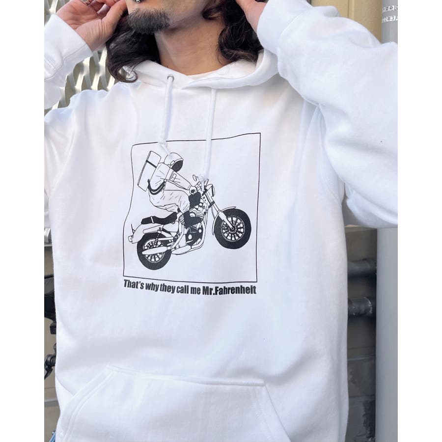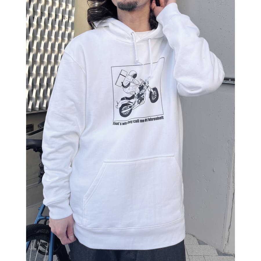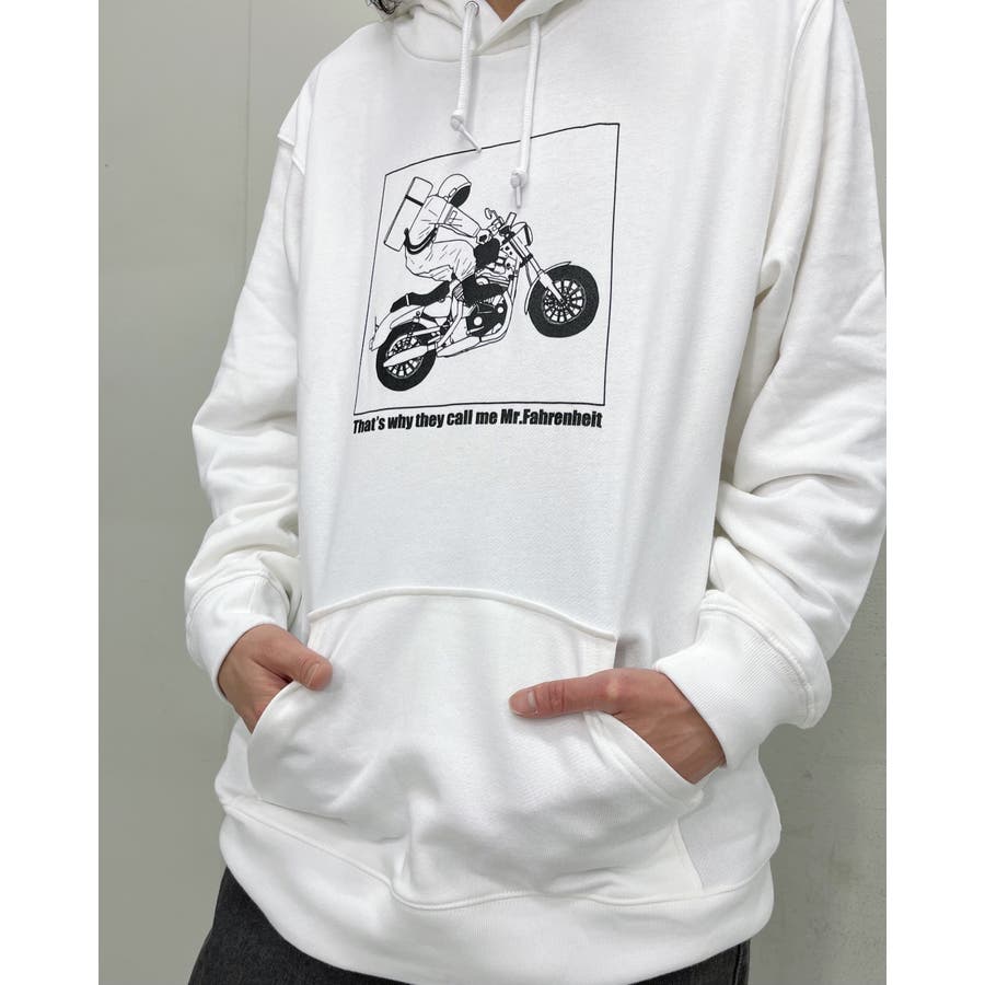 ・モノクロのイラストプリントがスタイリッシュな印象を引き出してくれるパーカー。