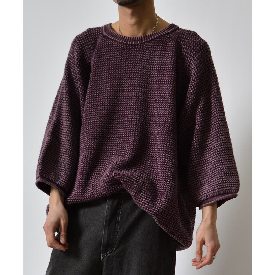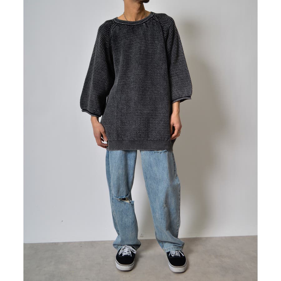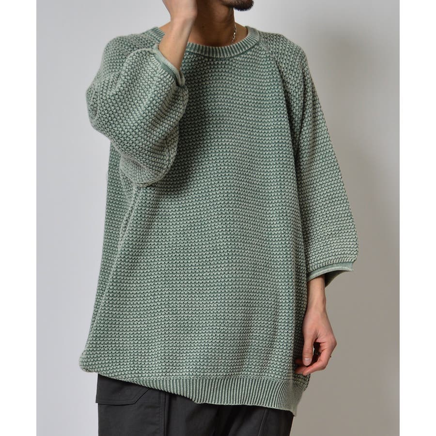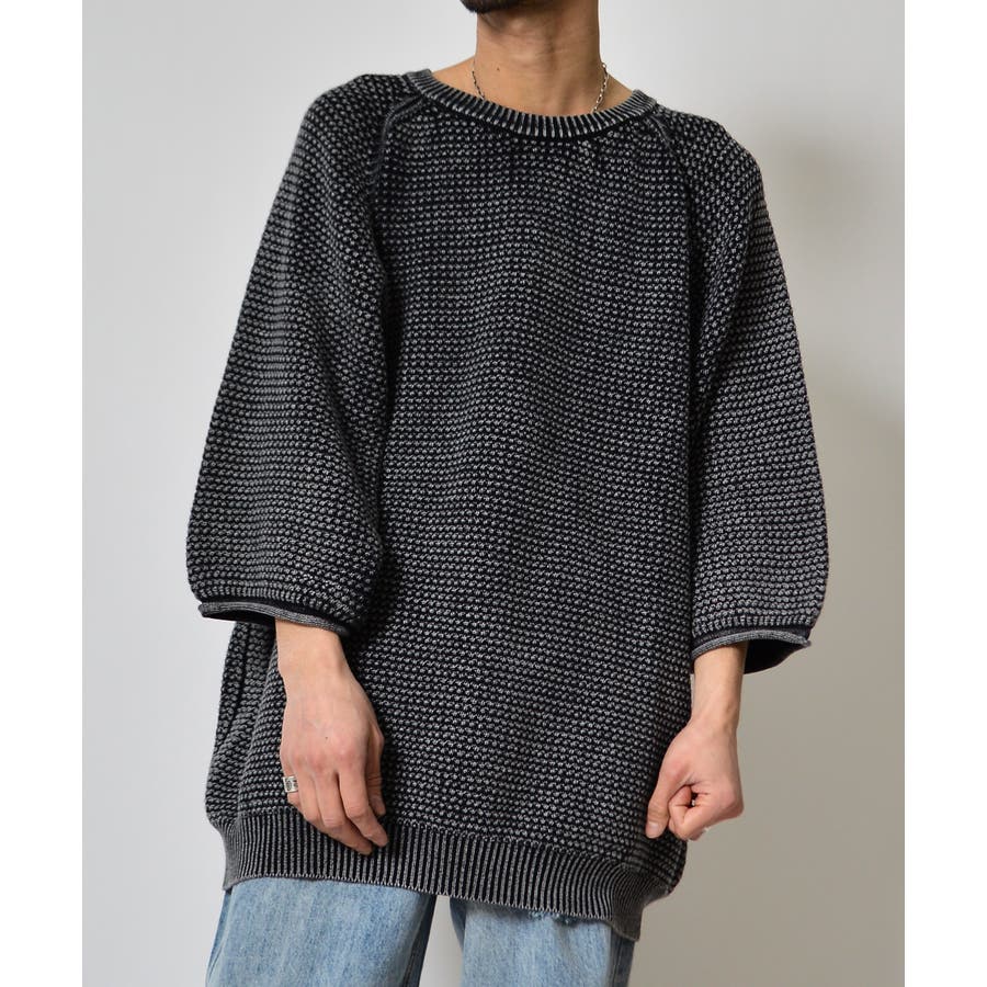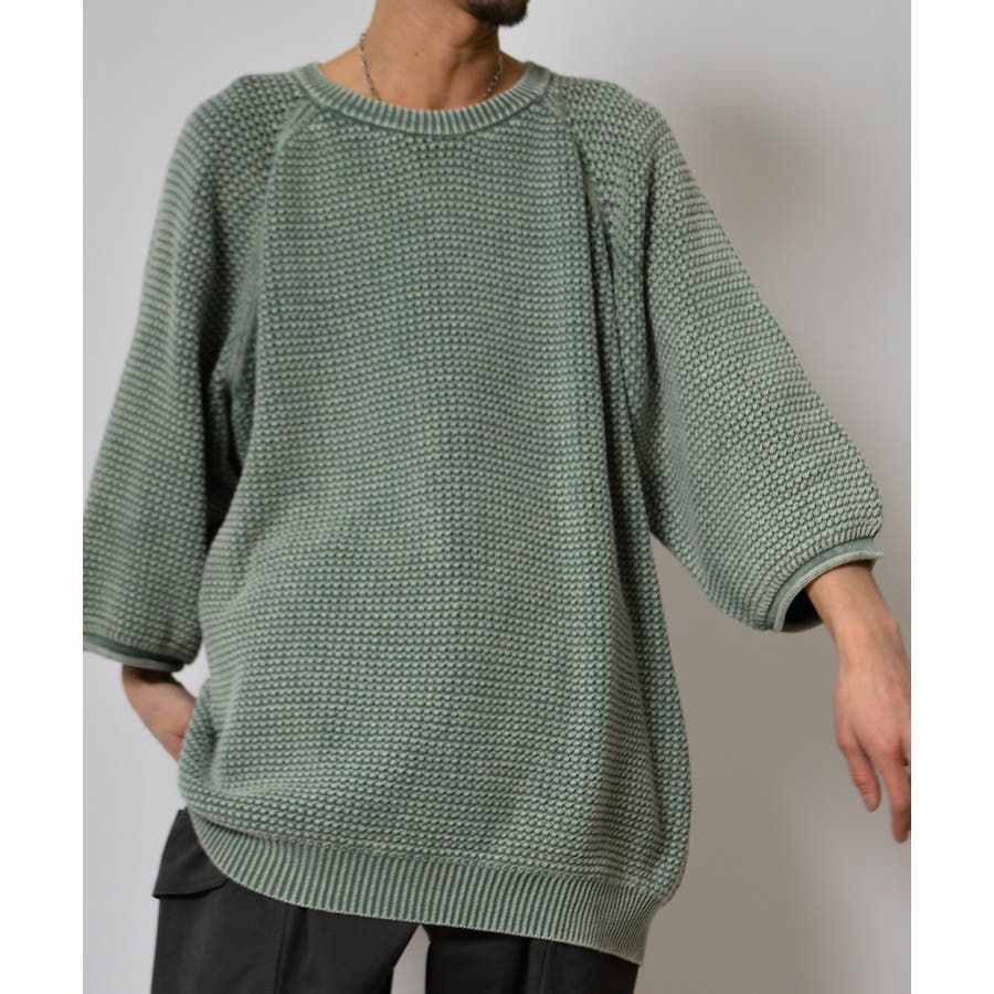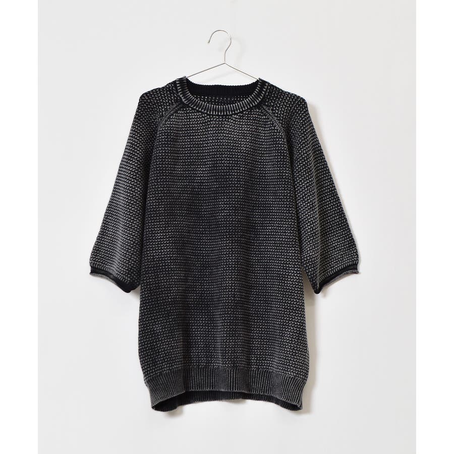 ストーンウォッシュ五分袖ニット