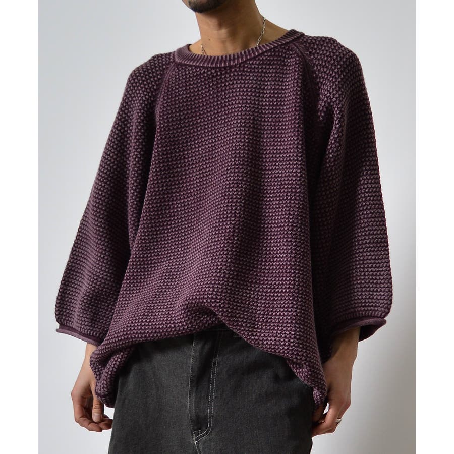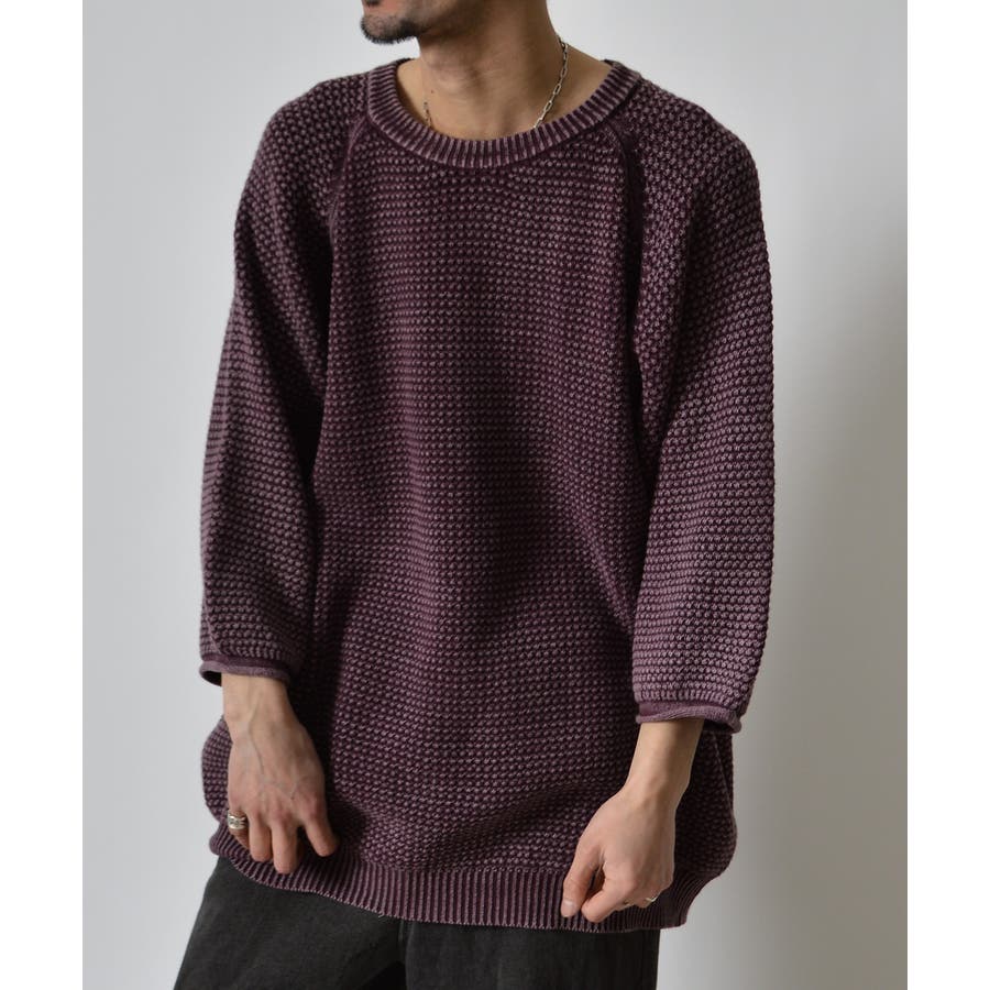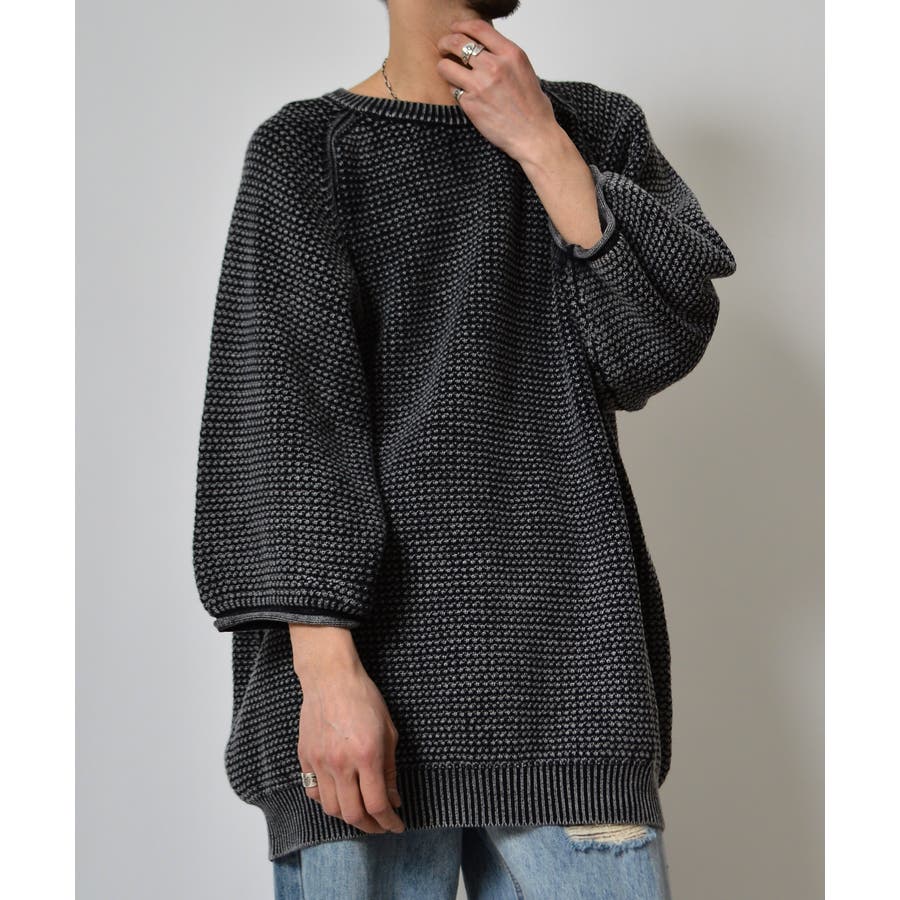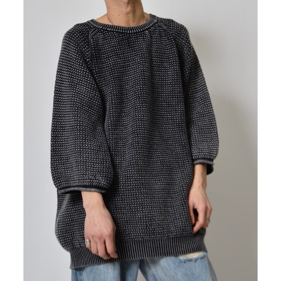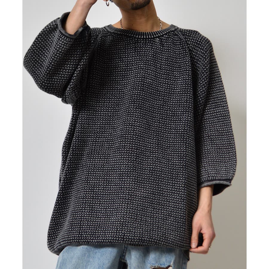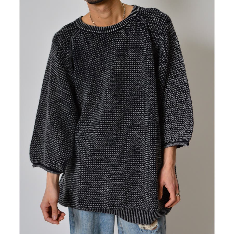 ストーンウォッシュ五分袖ニット