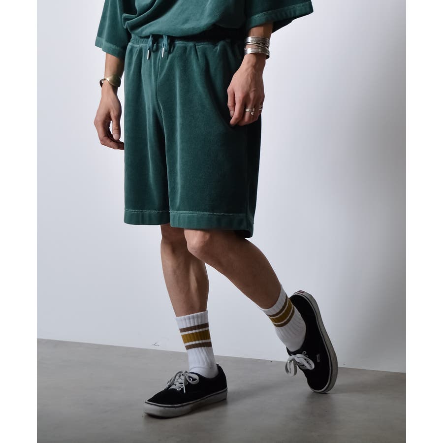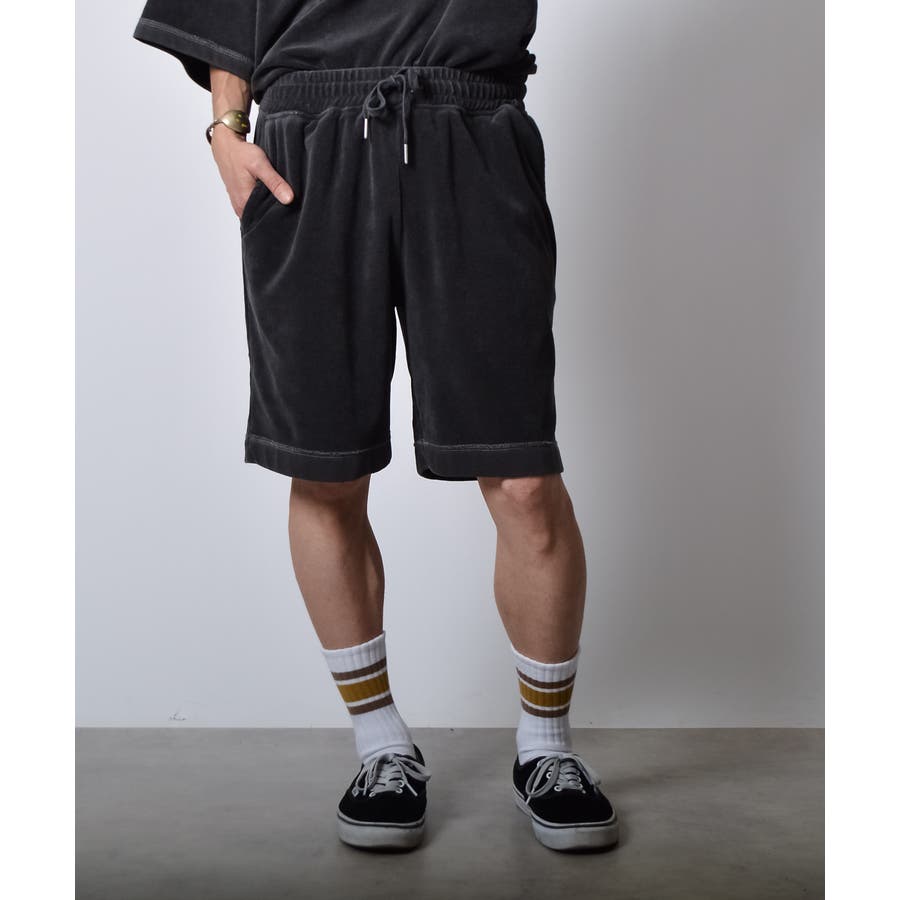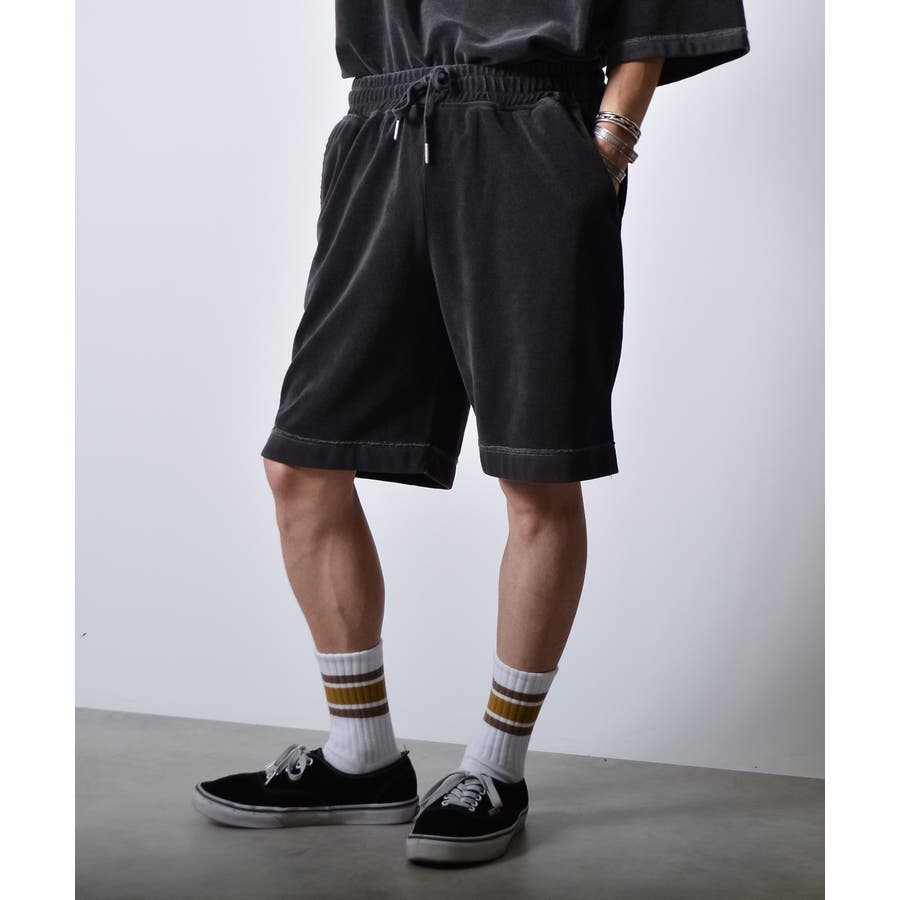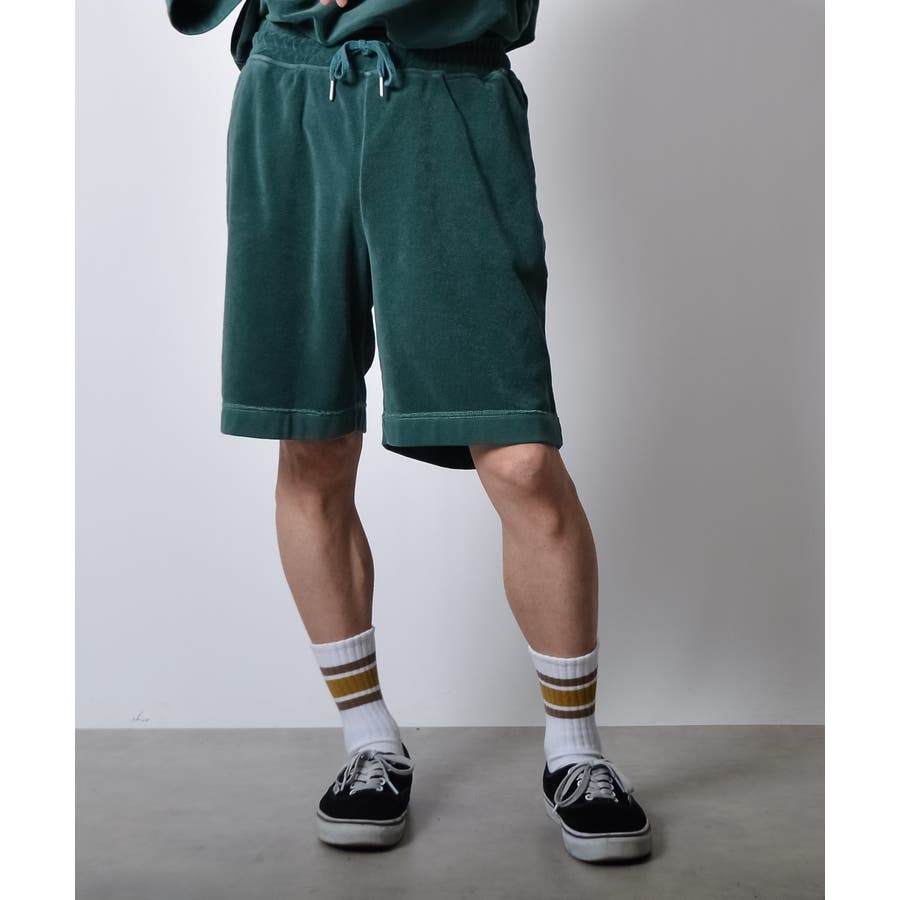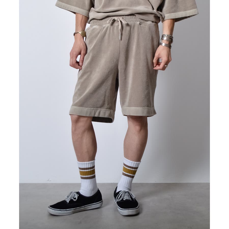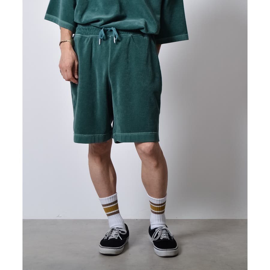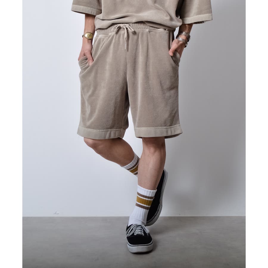 ・同素材のTシャツ(170223 ピグメントパイルTシャツ)と合わせてセットアップにし、リラックスしたカジュアルスタイルに。