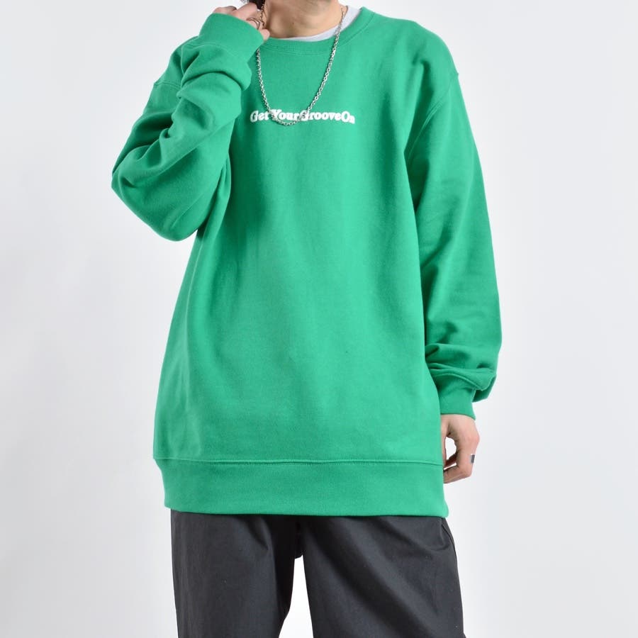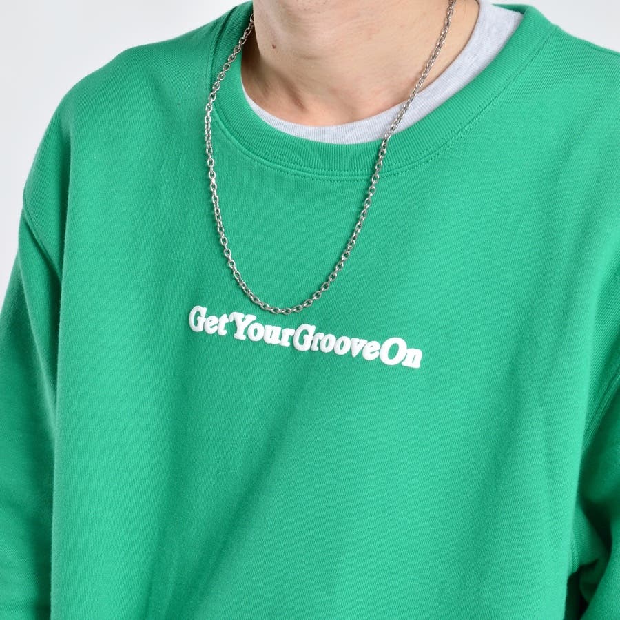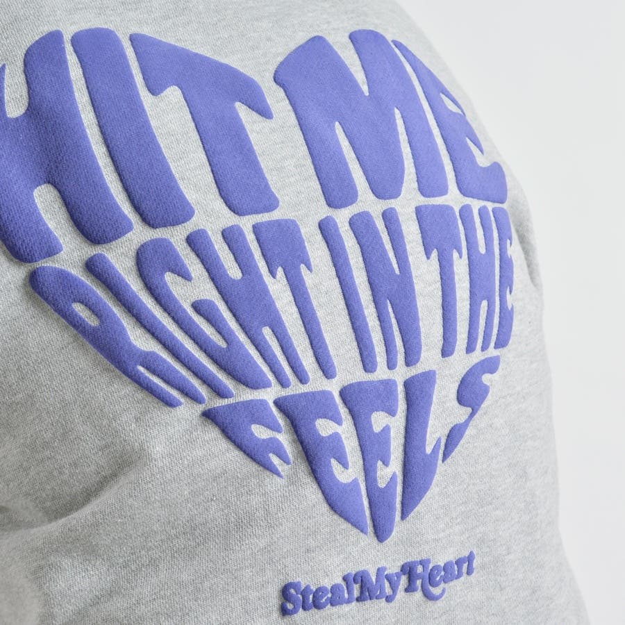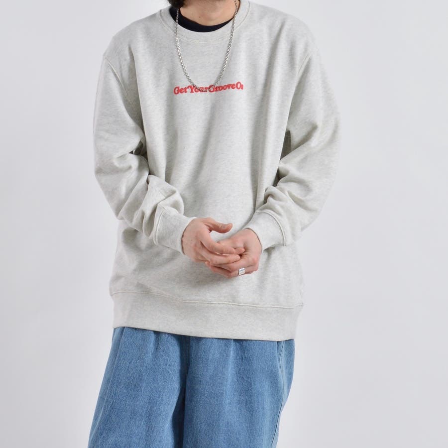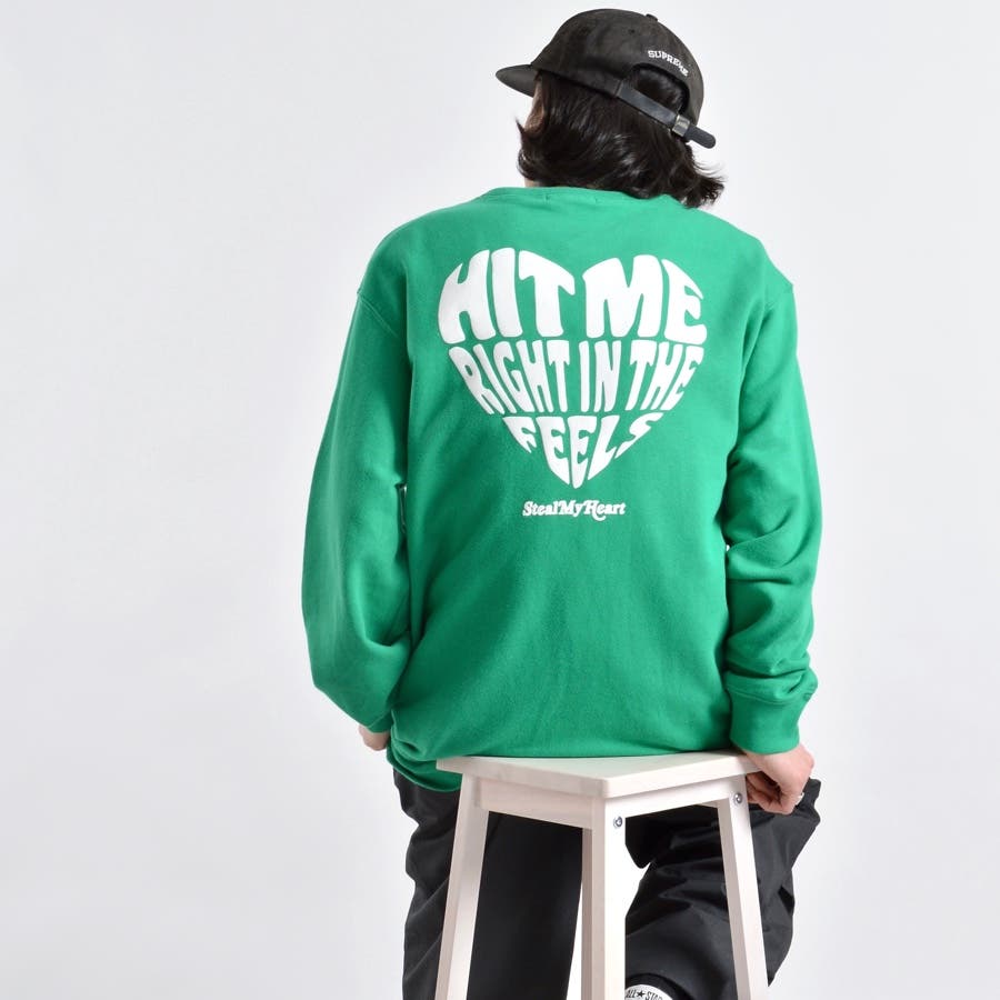 ・ハート型のオリジナルグラフィックプリントをバックに大きく配したクルーネックスウェット。