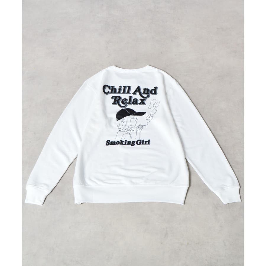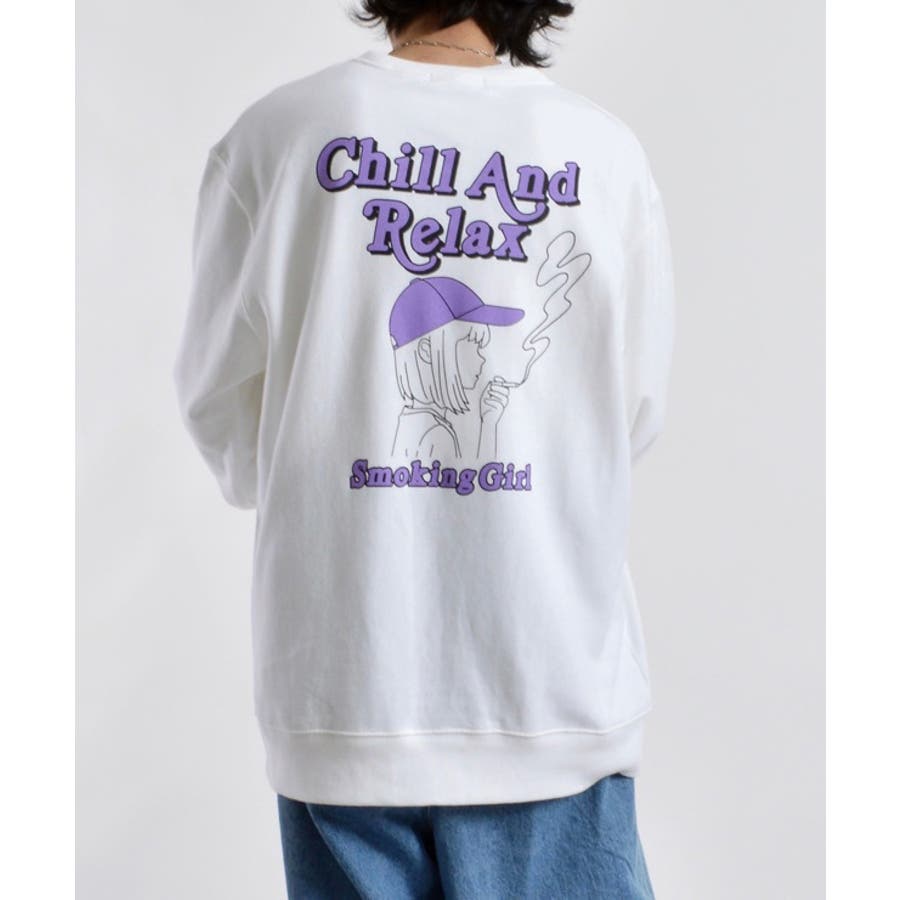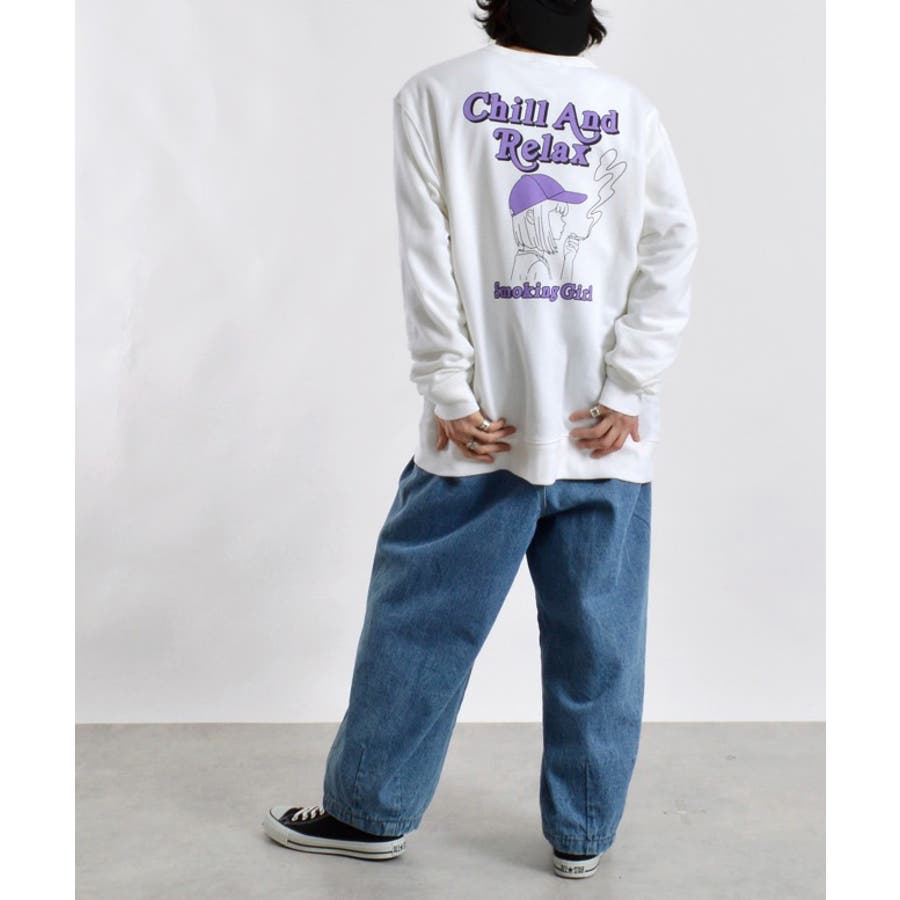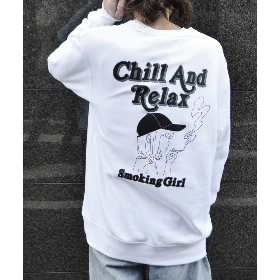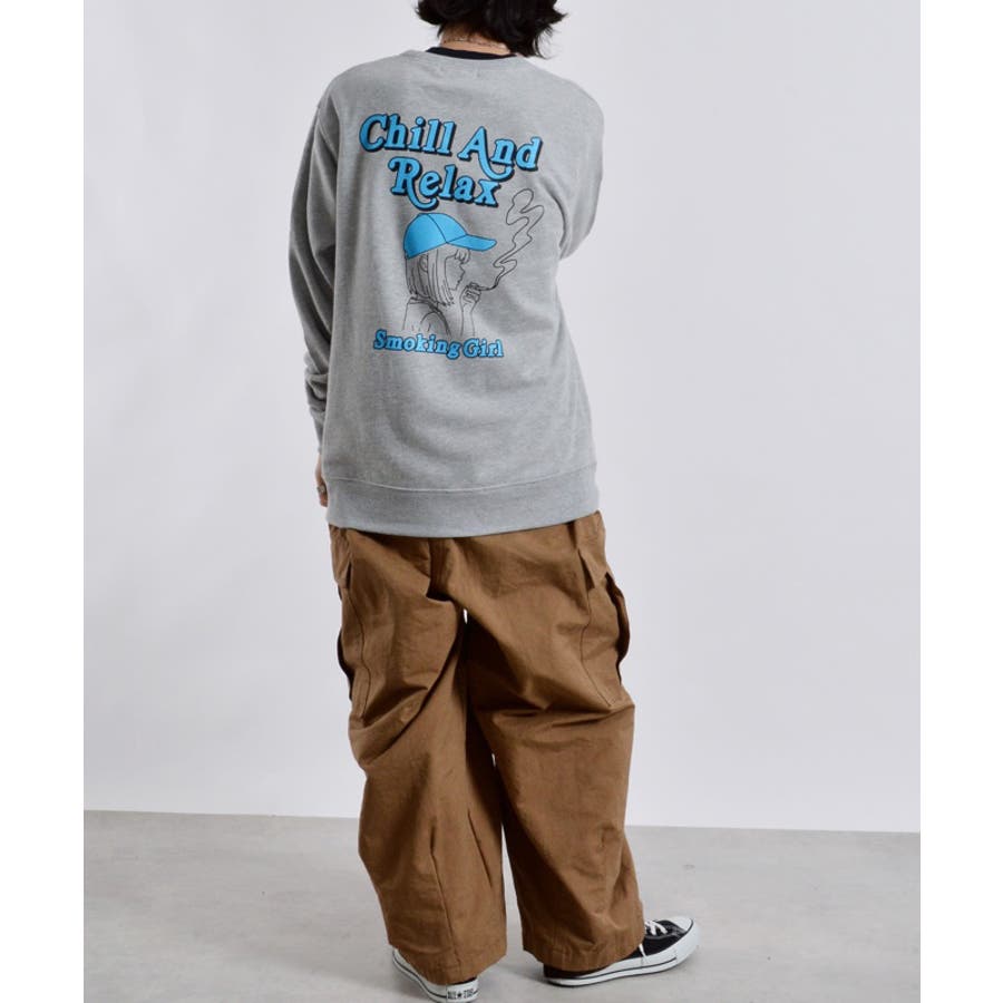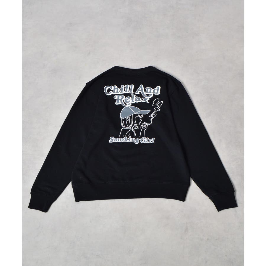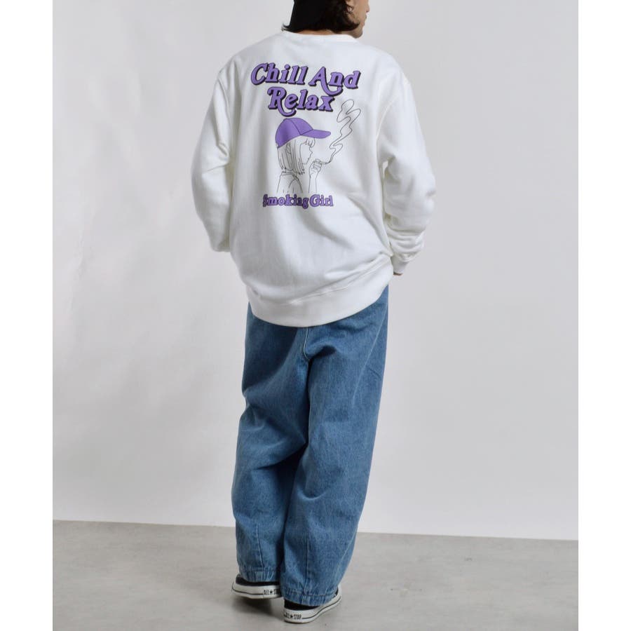 ・人気の線画イラストをバックにプリントしたビッグシルエットスウェット。
