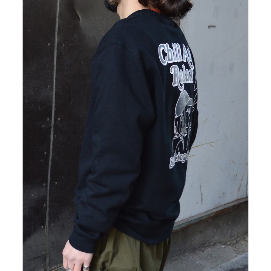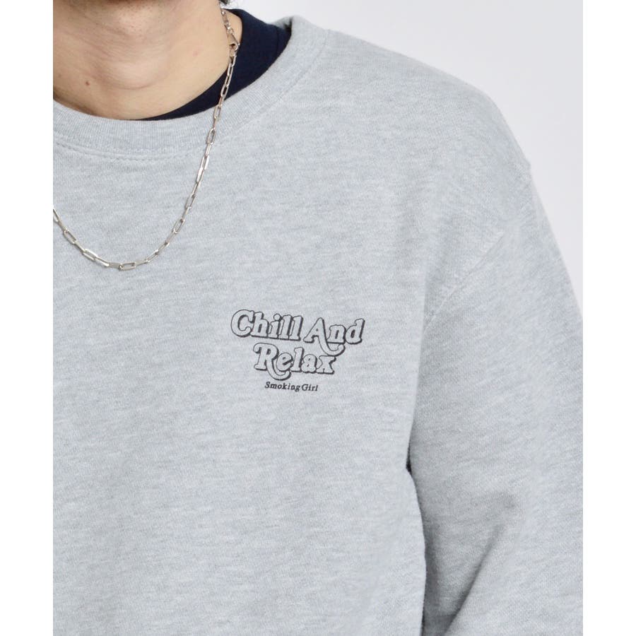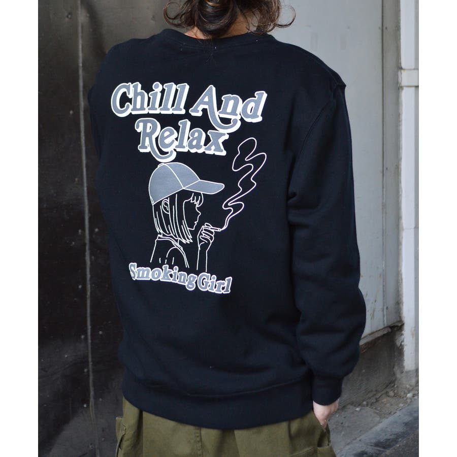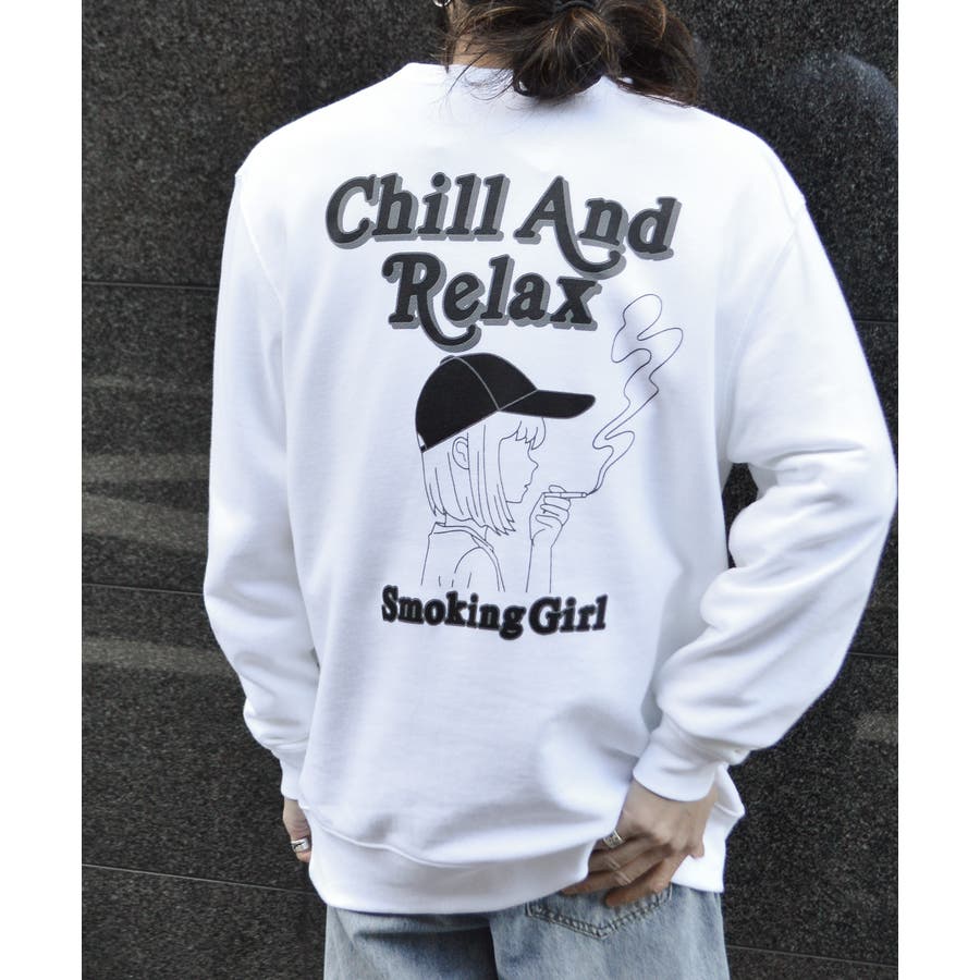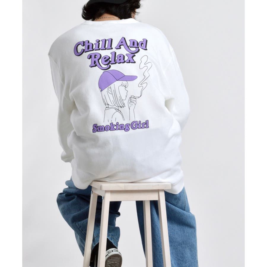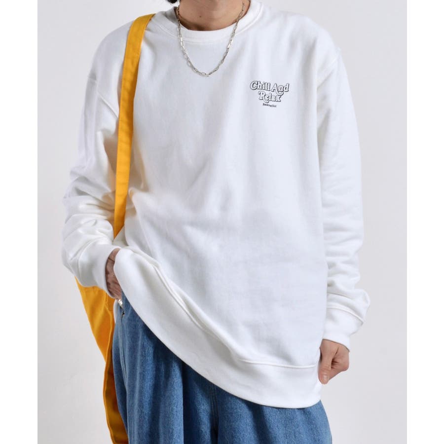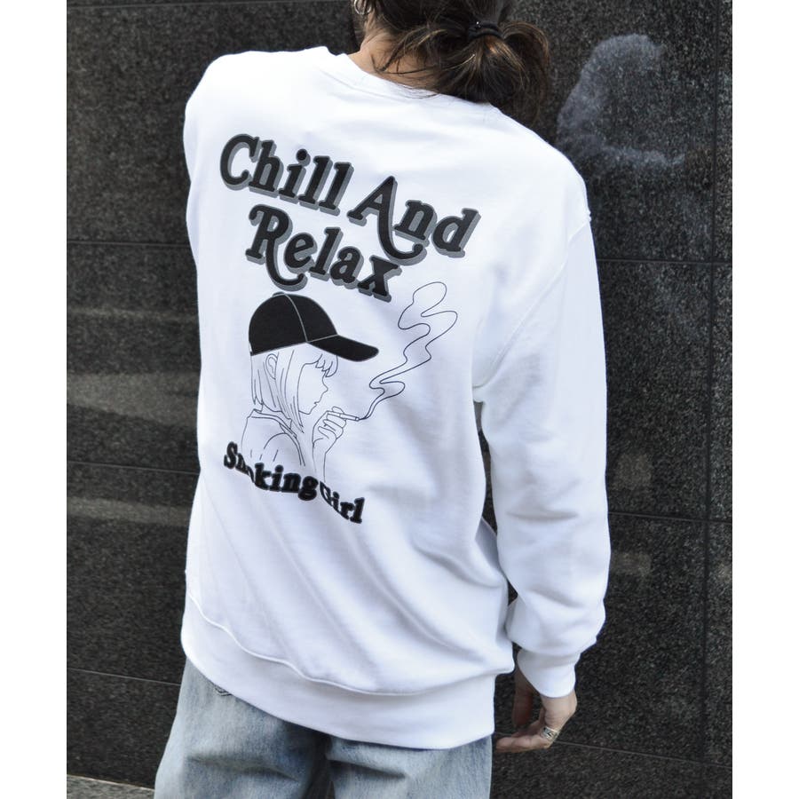 ・人気の線画イラストをバックにプリントしたビッグシルエットスウェット。