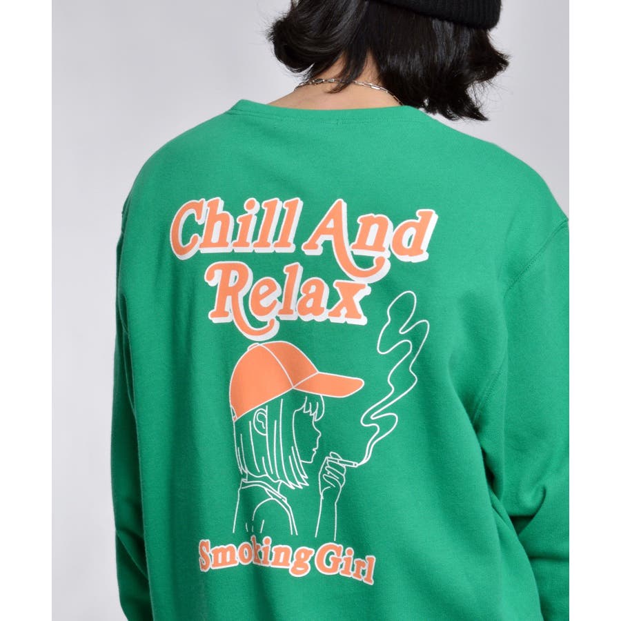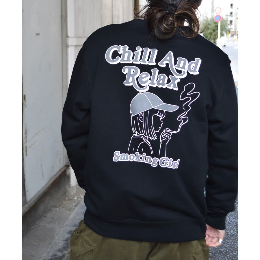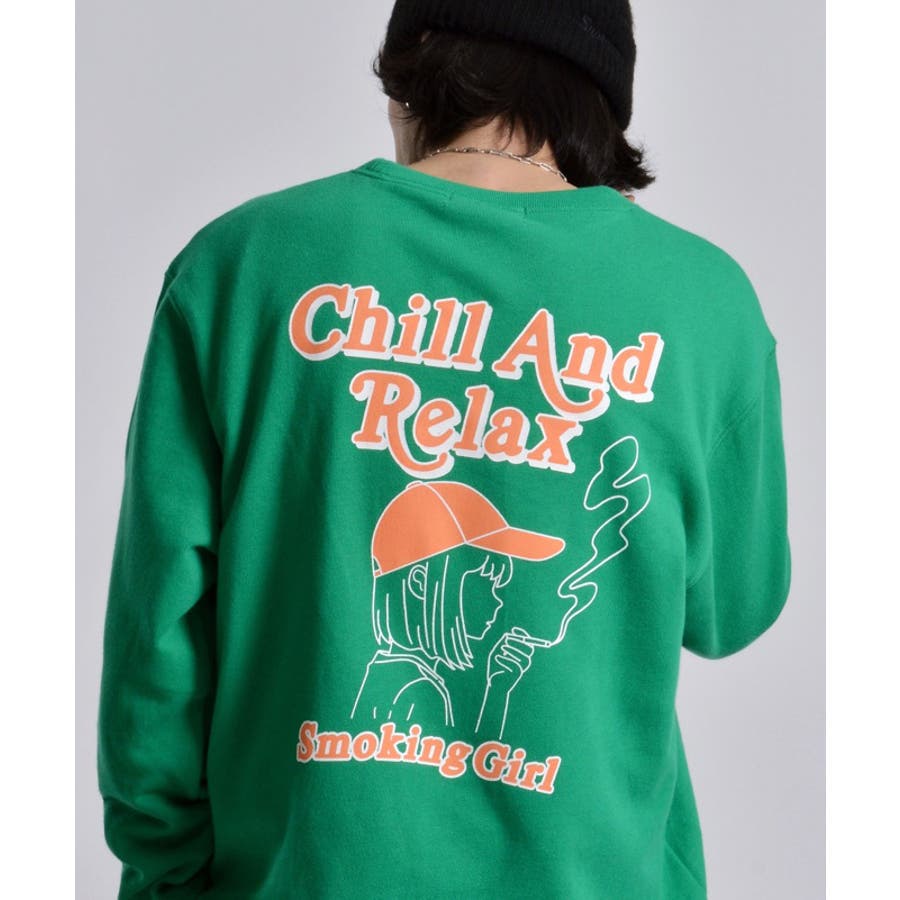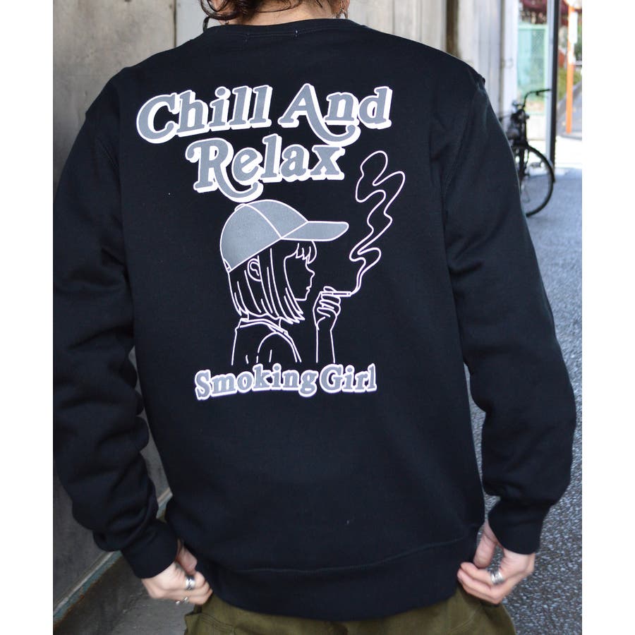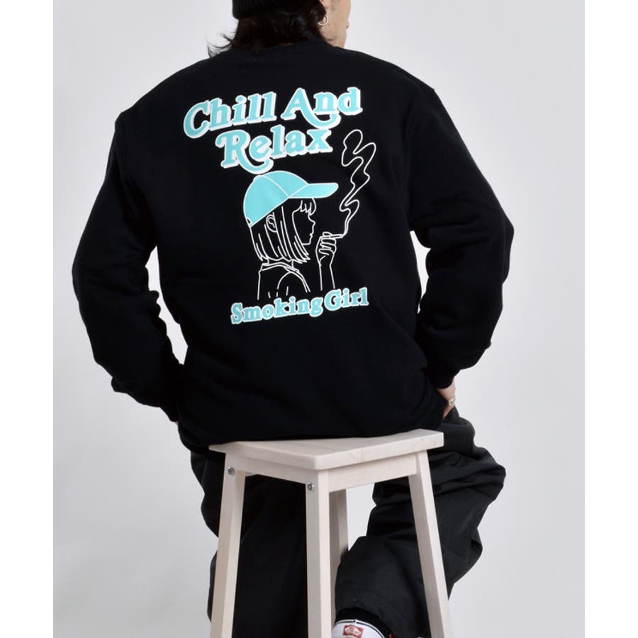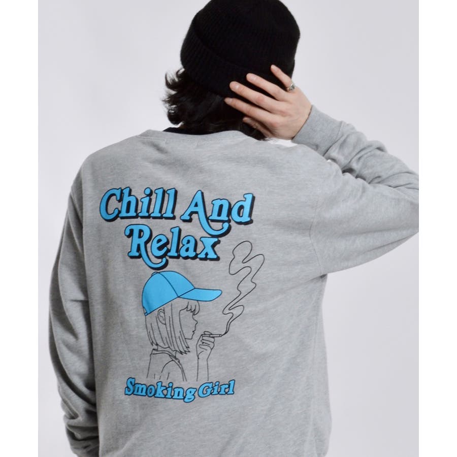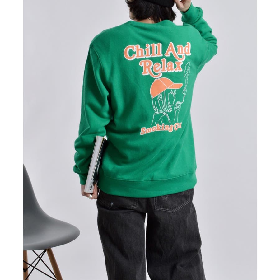 ・人気の線画イラストをバックにプリントしたビッグシルエットスウェット。