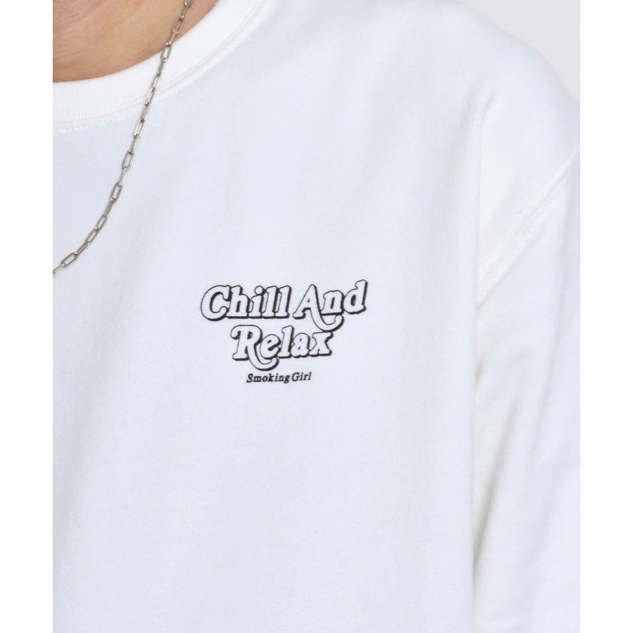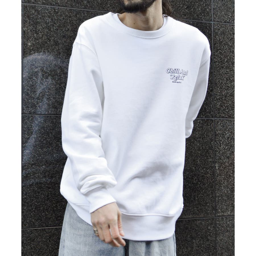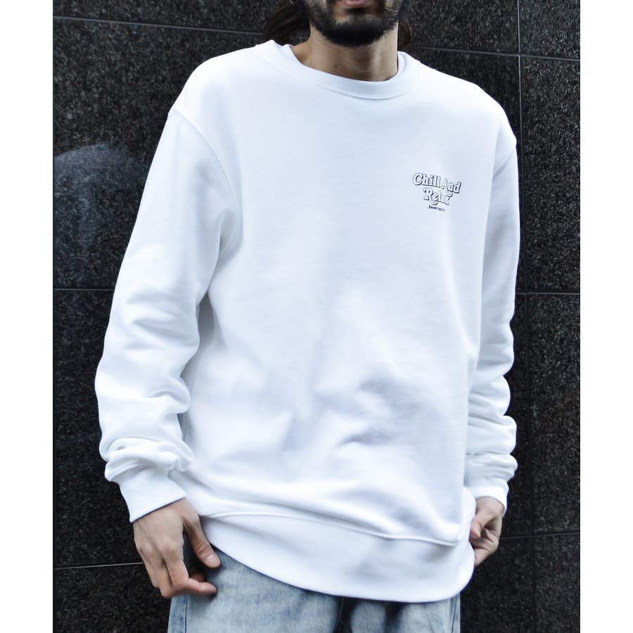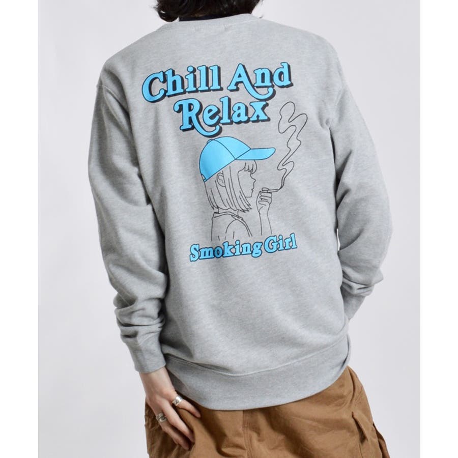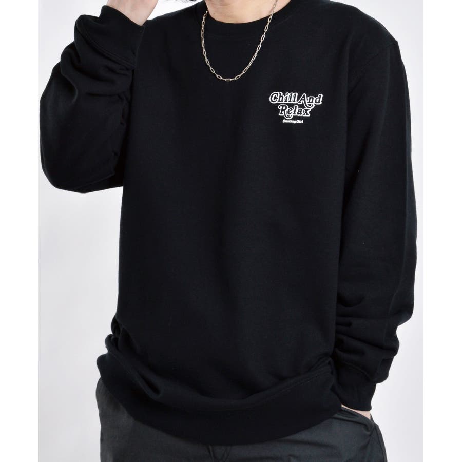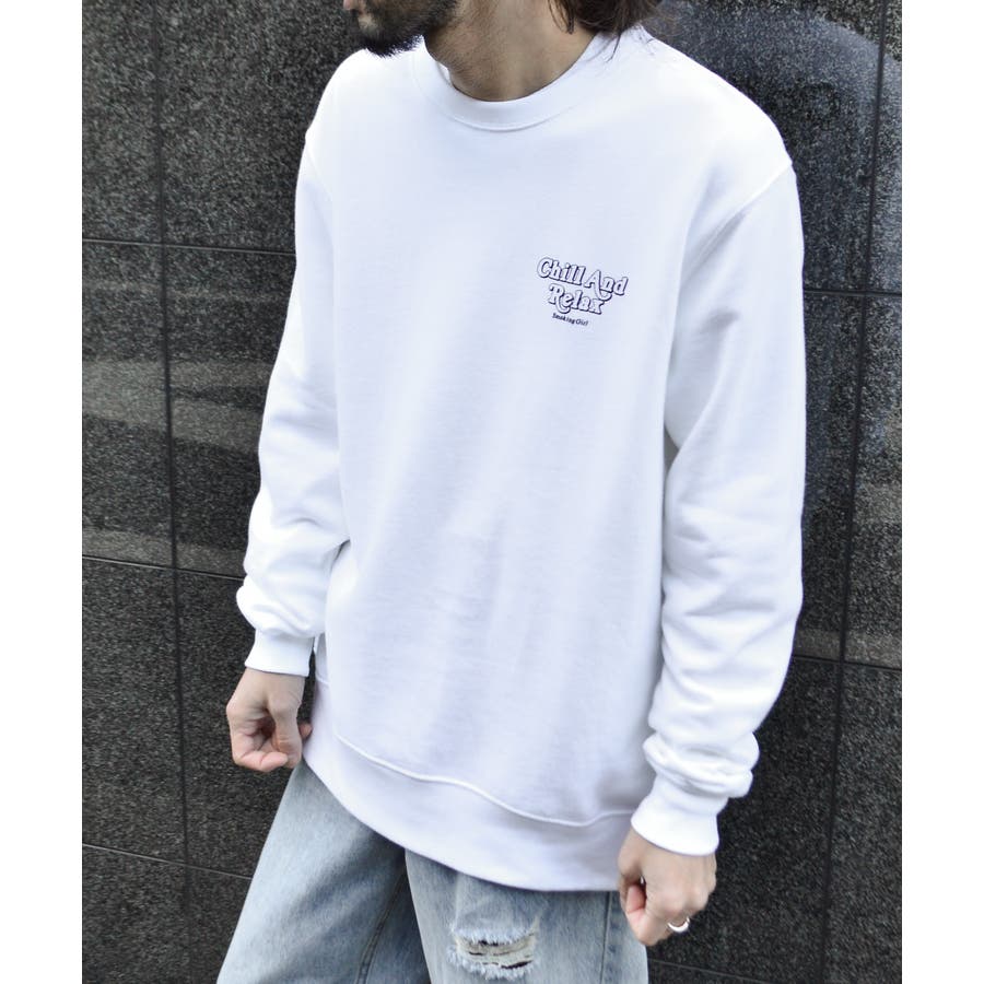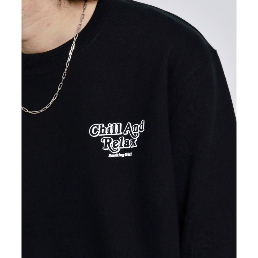 ・人気の線画イラストをバックにプリントしたビッグシルエットスウェット。