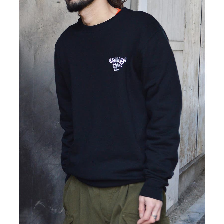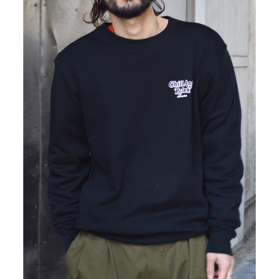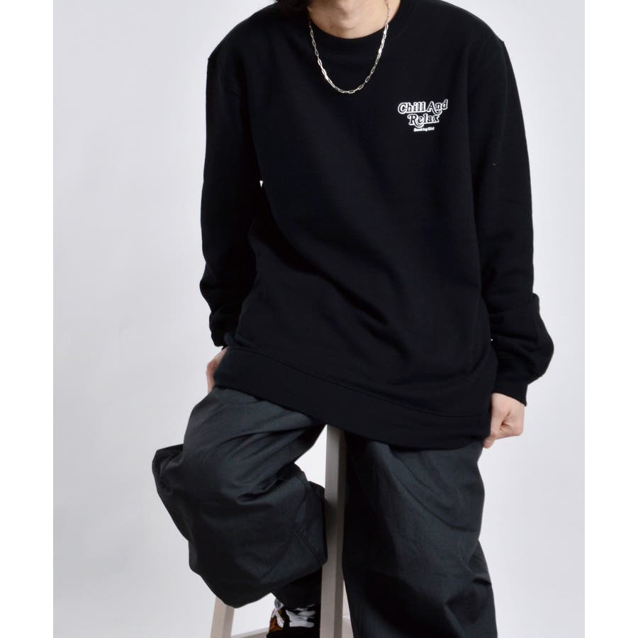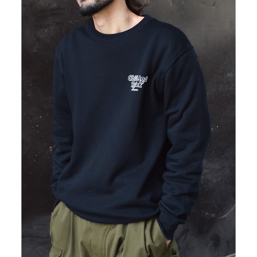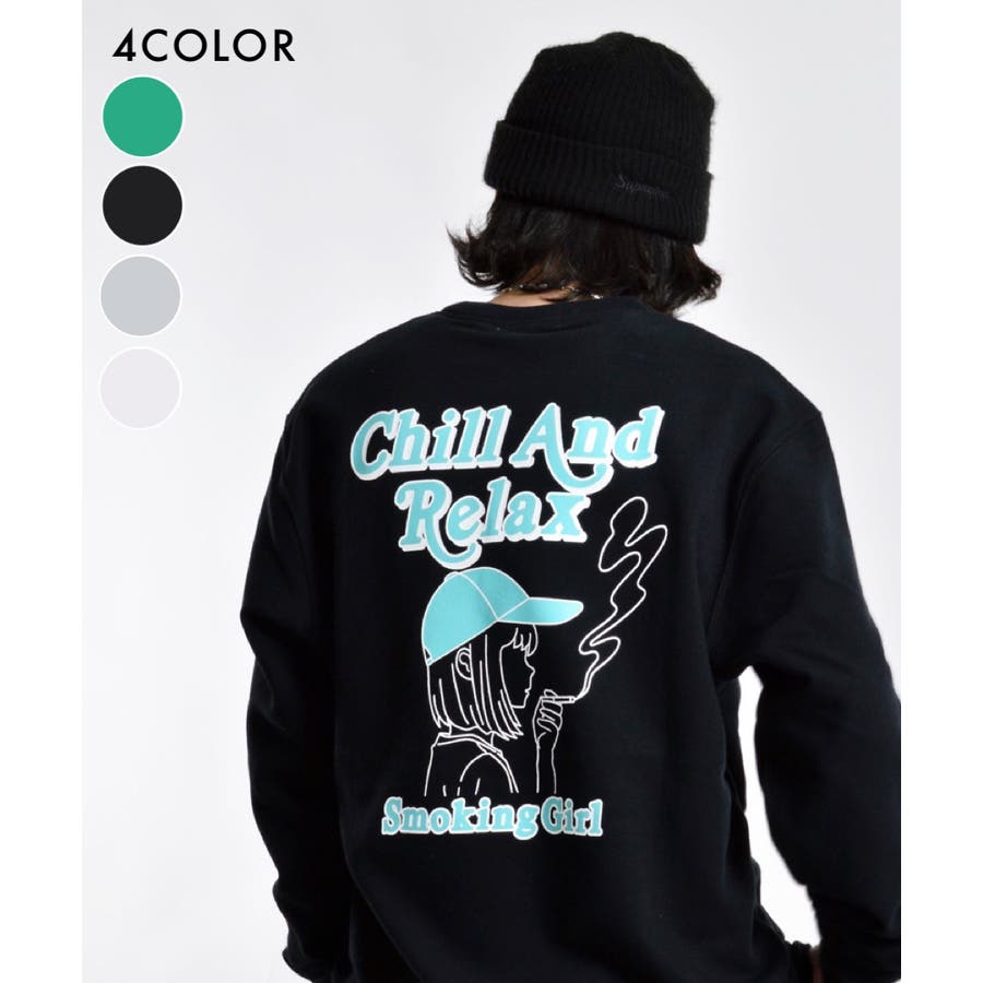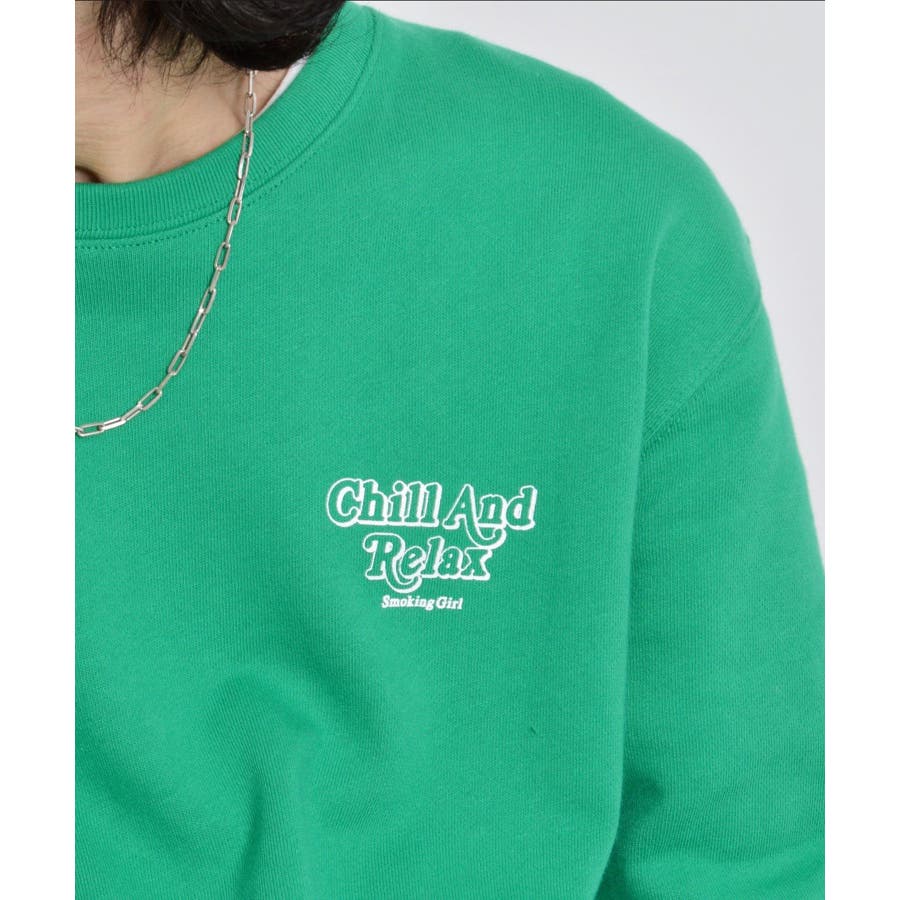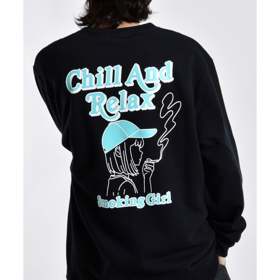 ・人気の線画イラストをバックにプリントしたビッグシルエットスウェット。