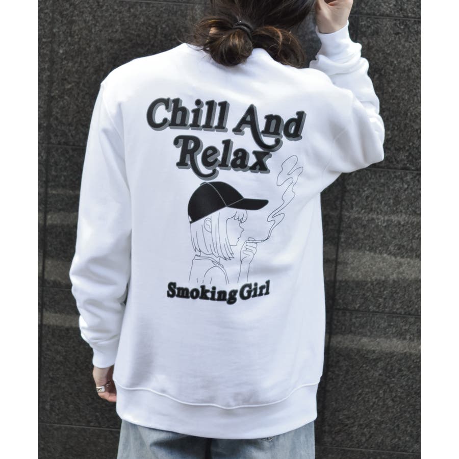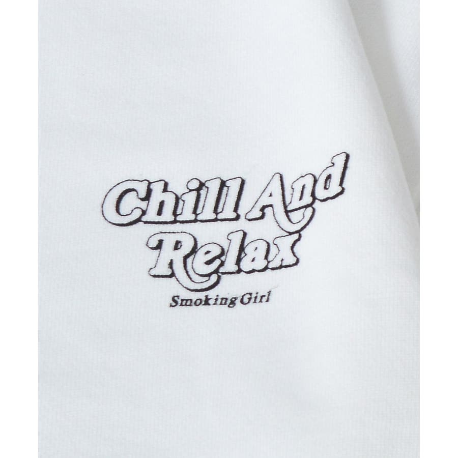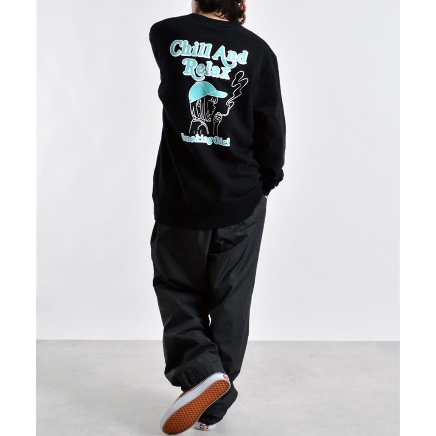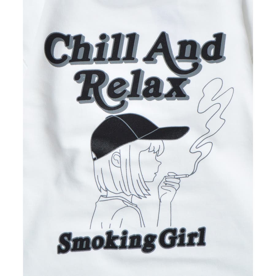 ・オリジナルグラフィックを採用したトレンドのフォントと縁取り×カラープリントのスモーキングガールが映えるおしゃれな1枚です。