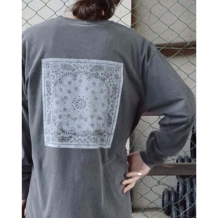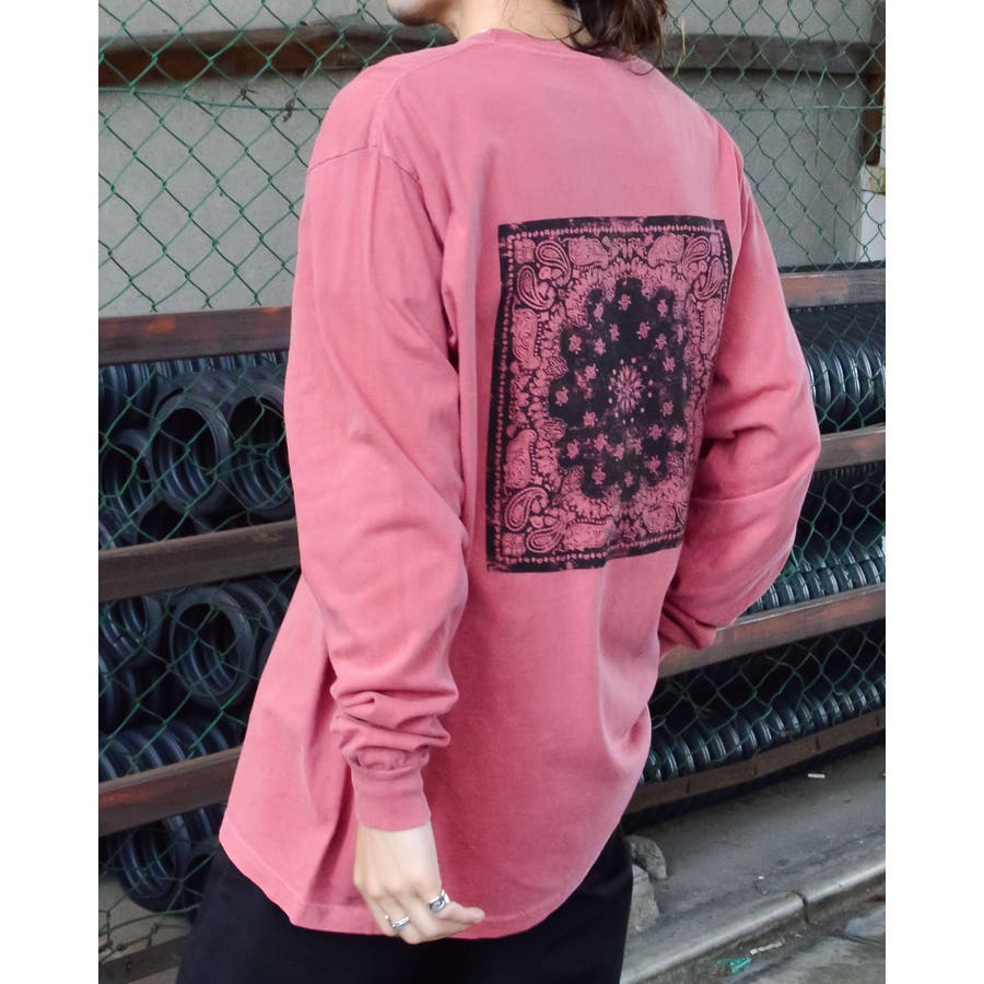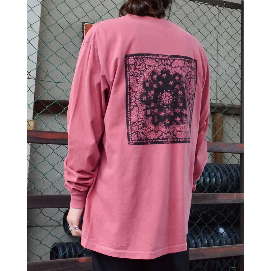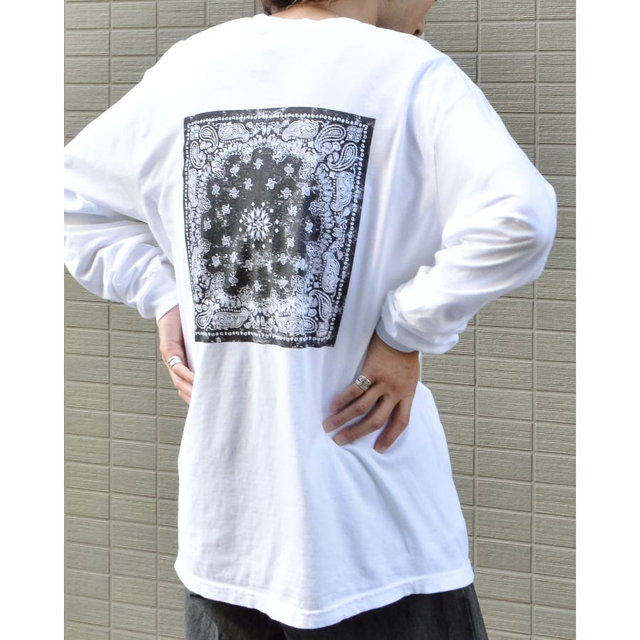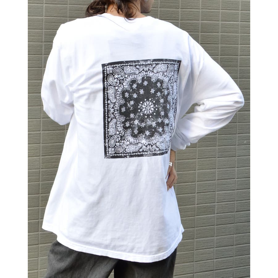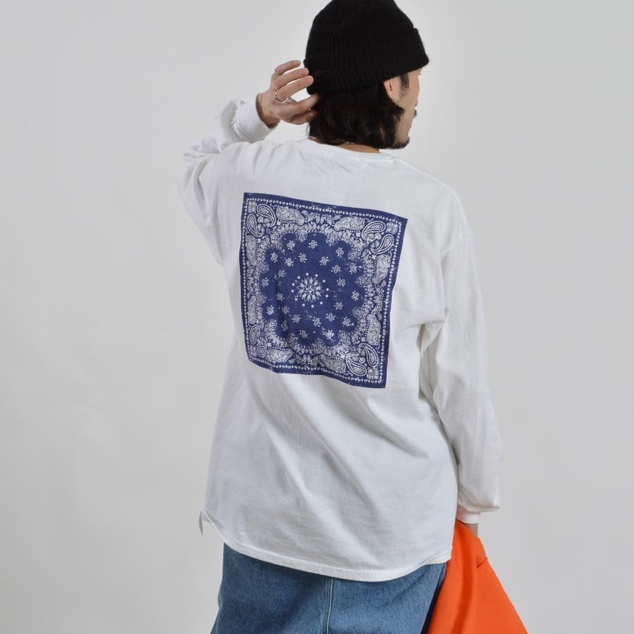 ・バックに大きくデザインされたバンダナ柄のオリジナルグラフィックプリントをあしらい、インパクトのあるオシャレなクルーネックロングスリーヴTシャツが登場。
