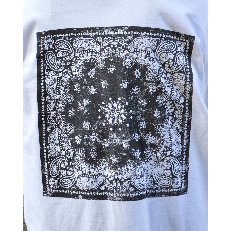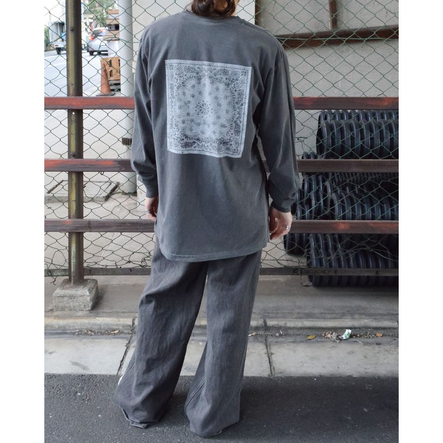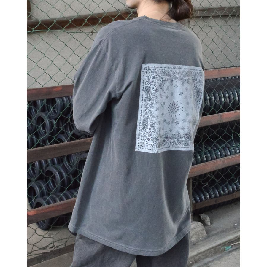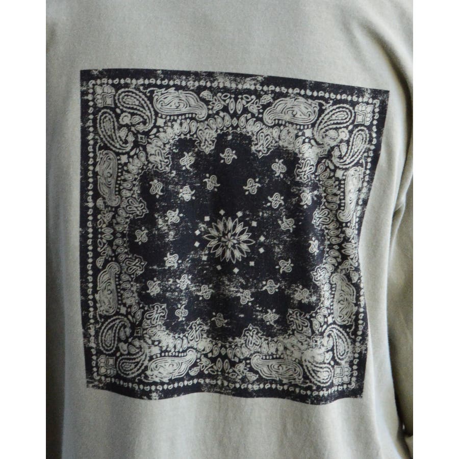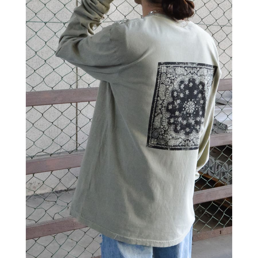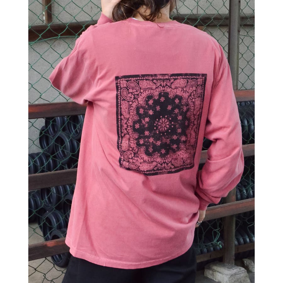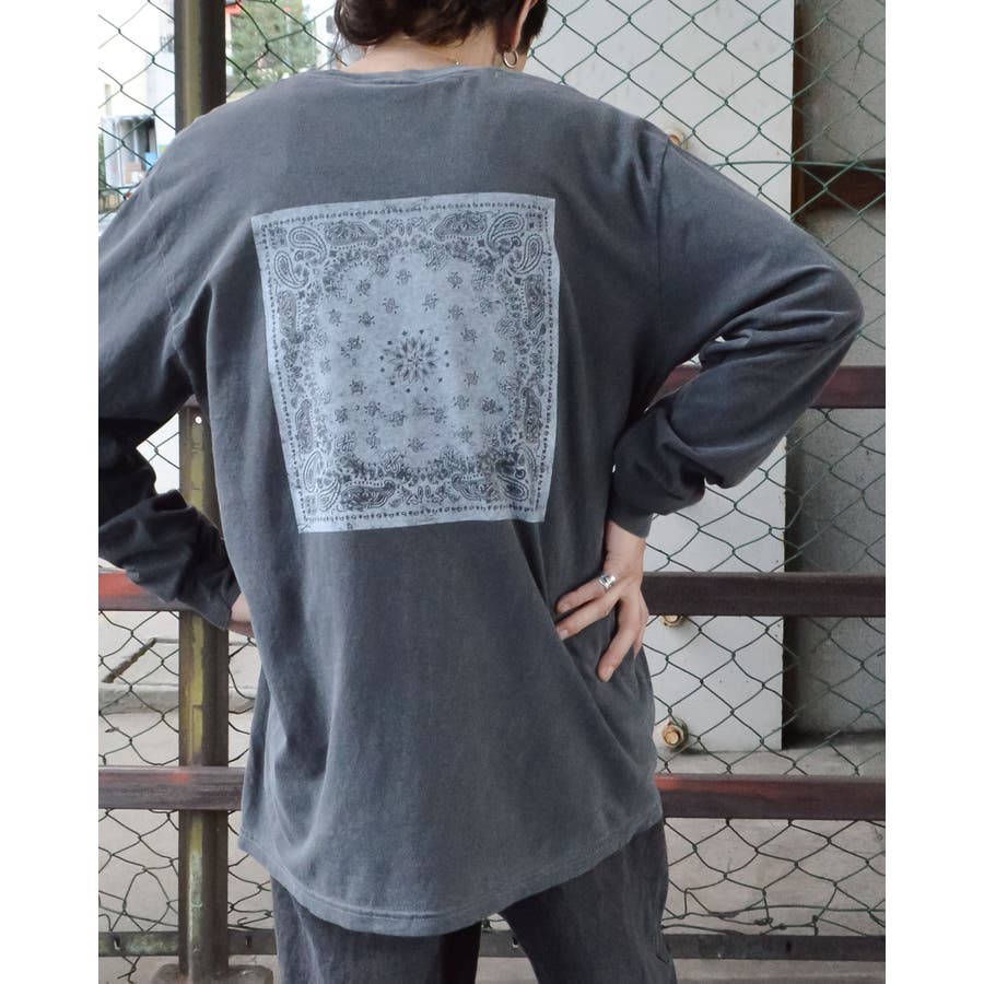 ・バックに大きくデザインされたバンダナ柄のオリジナルグラフィックプリントをあしらい、インパクトのあるオシャレなクルーネックロングスリーヴTシャツが登場。