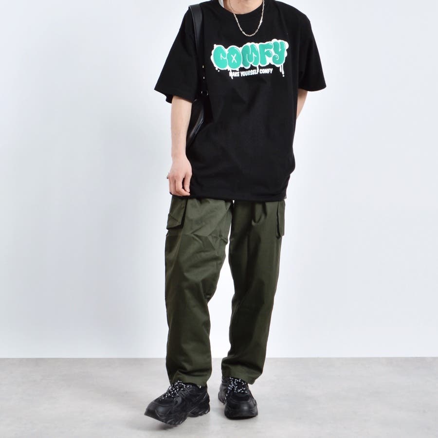 ワイドパンツやカーゴパンツに合わせる定番のストリートスタイルがおすすめ。