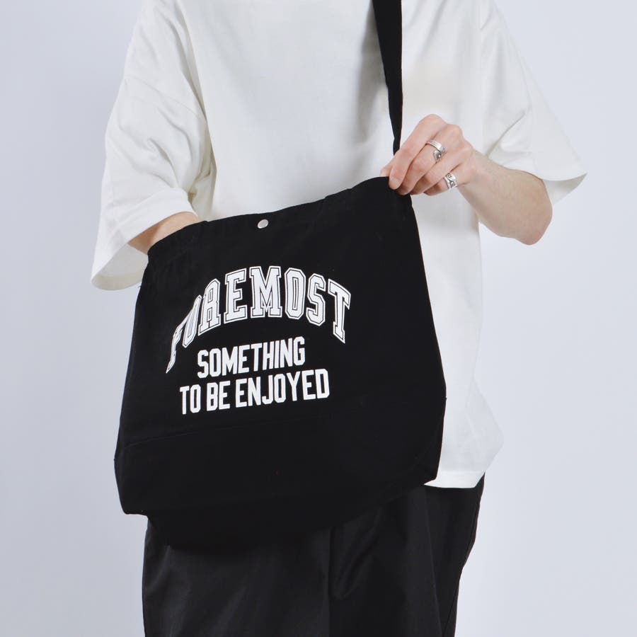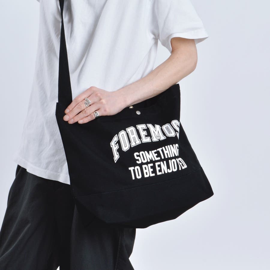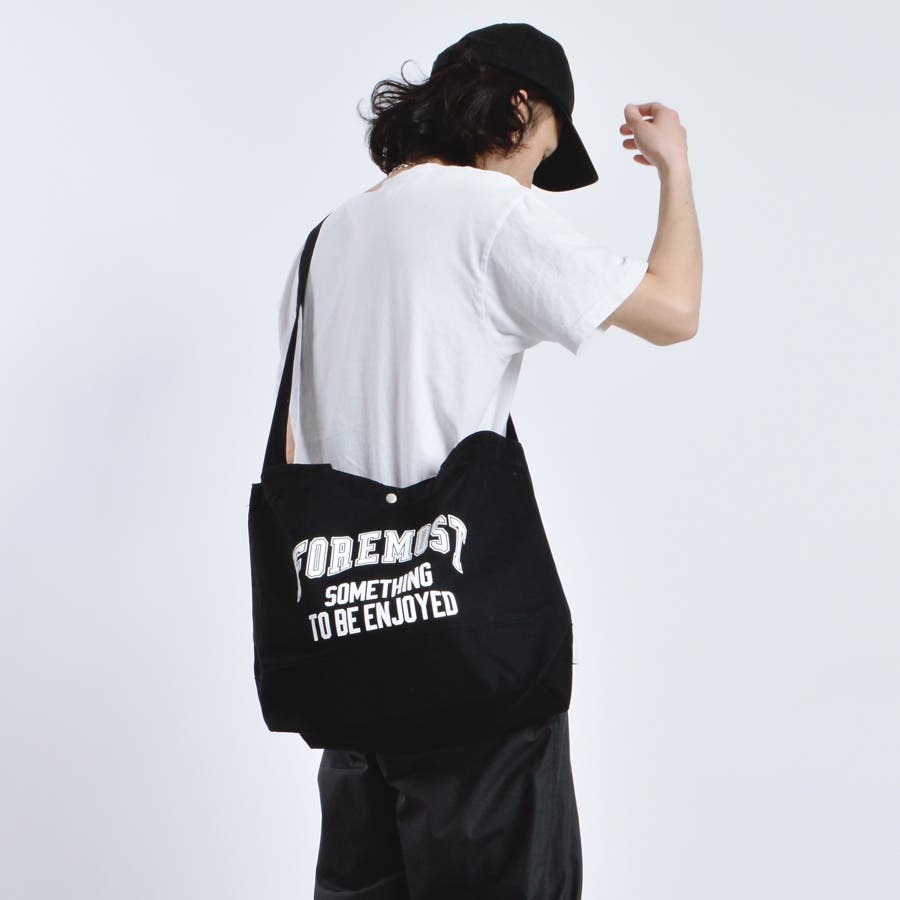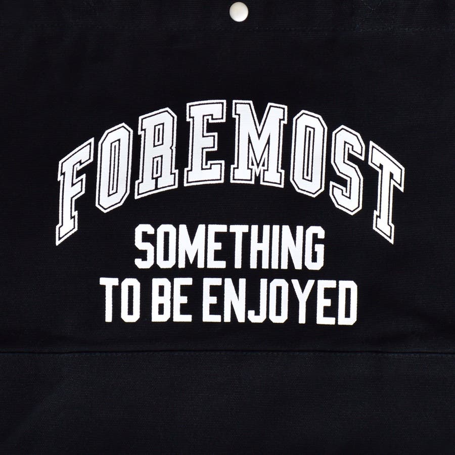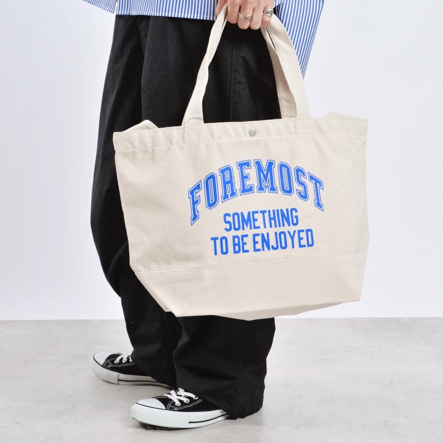 カレッジロゴのオリジナルラバープリントを配したキャンバス2WAYトートバッグ。