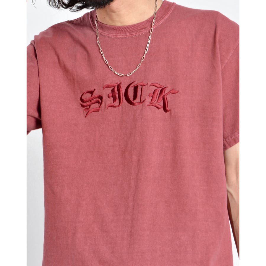 "SICK"の文字刺繍を大胆にフロントにあしらった1枚。