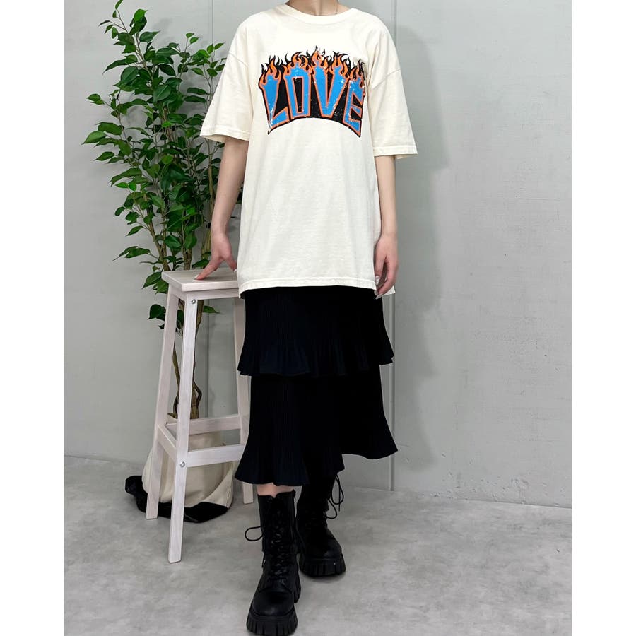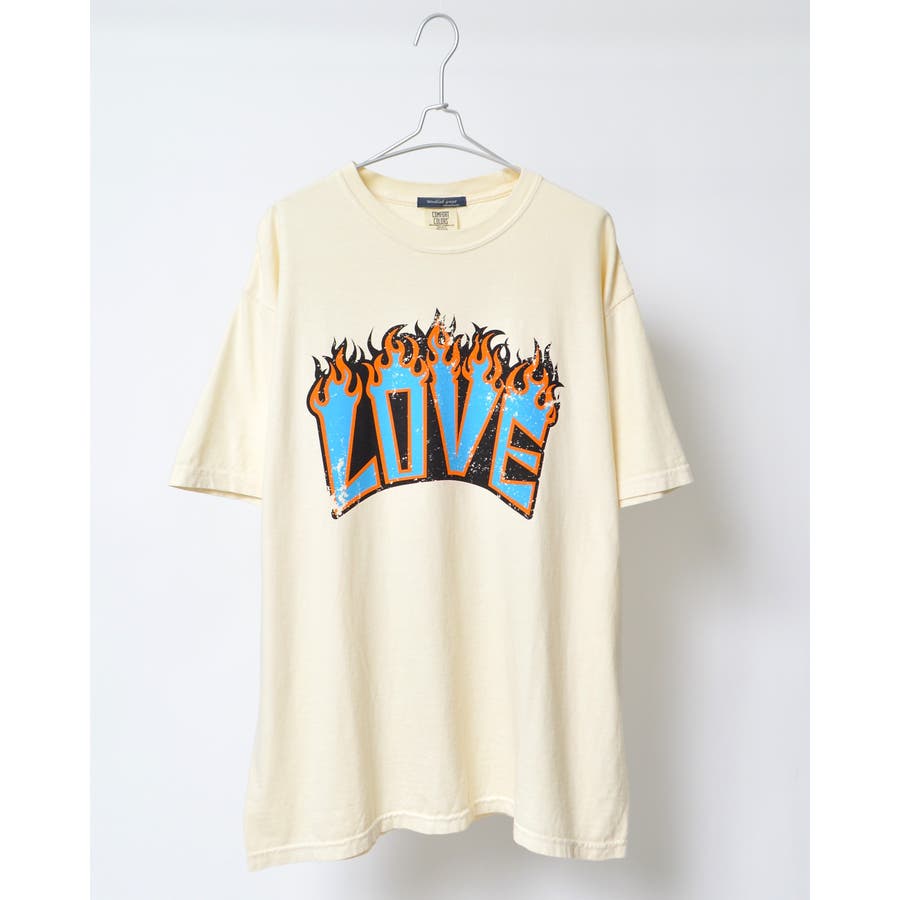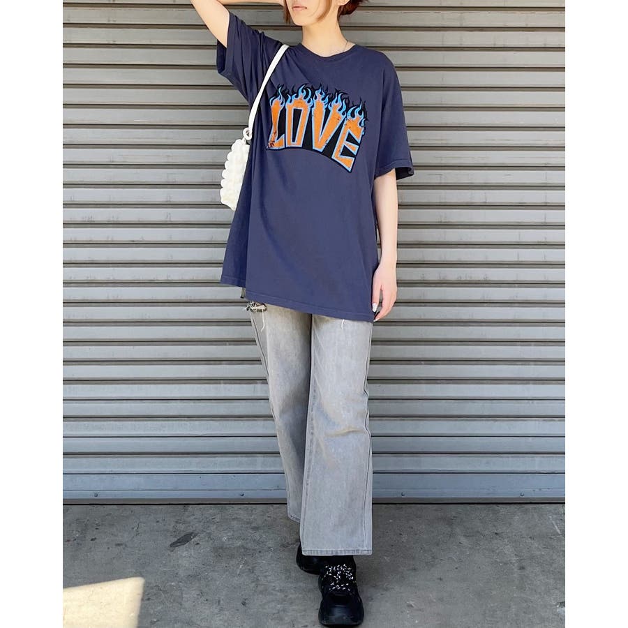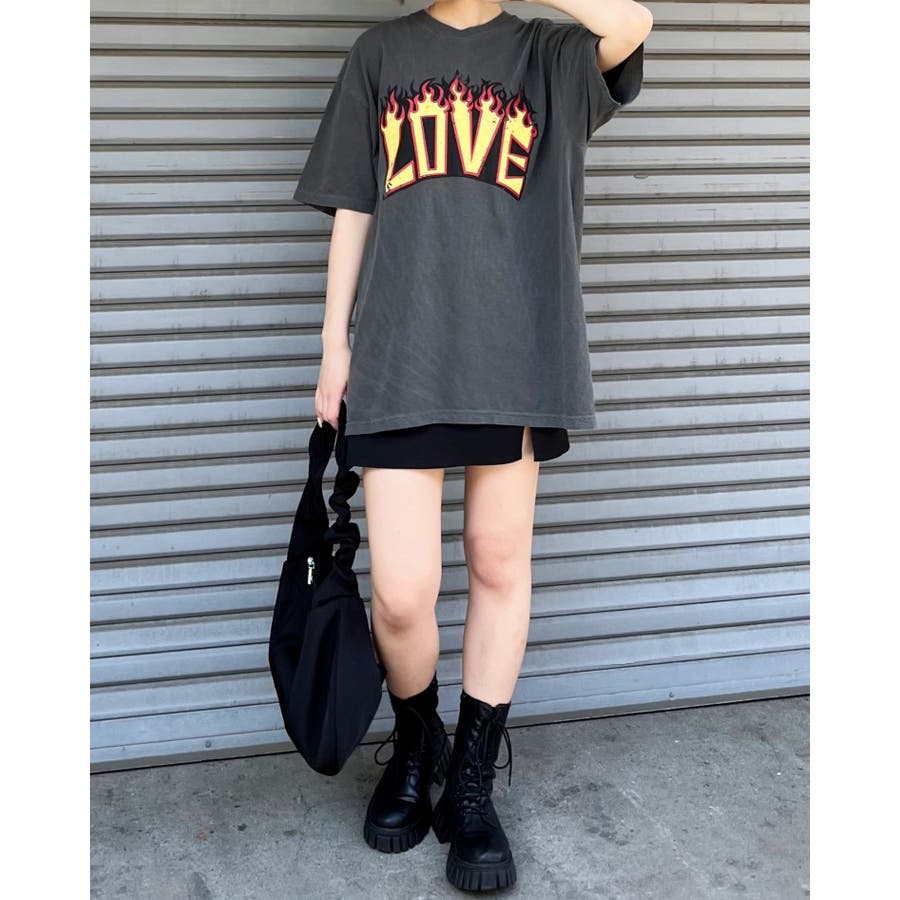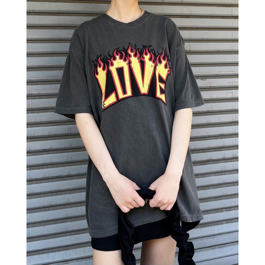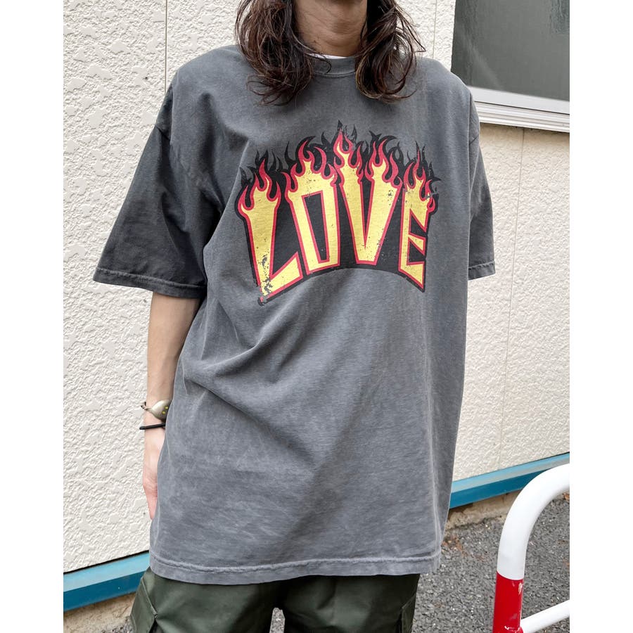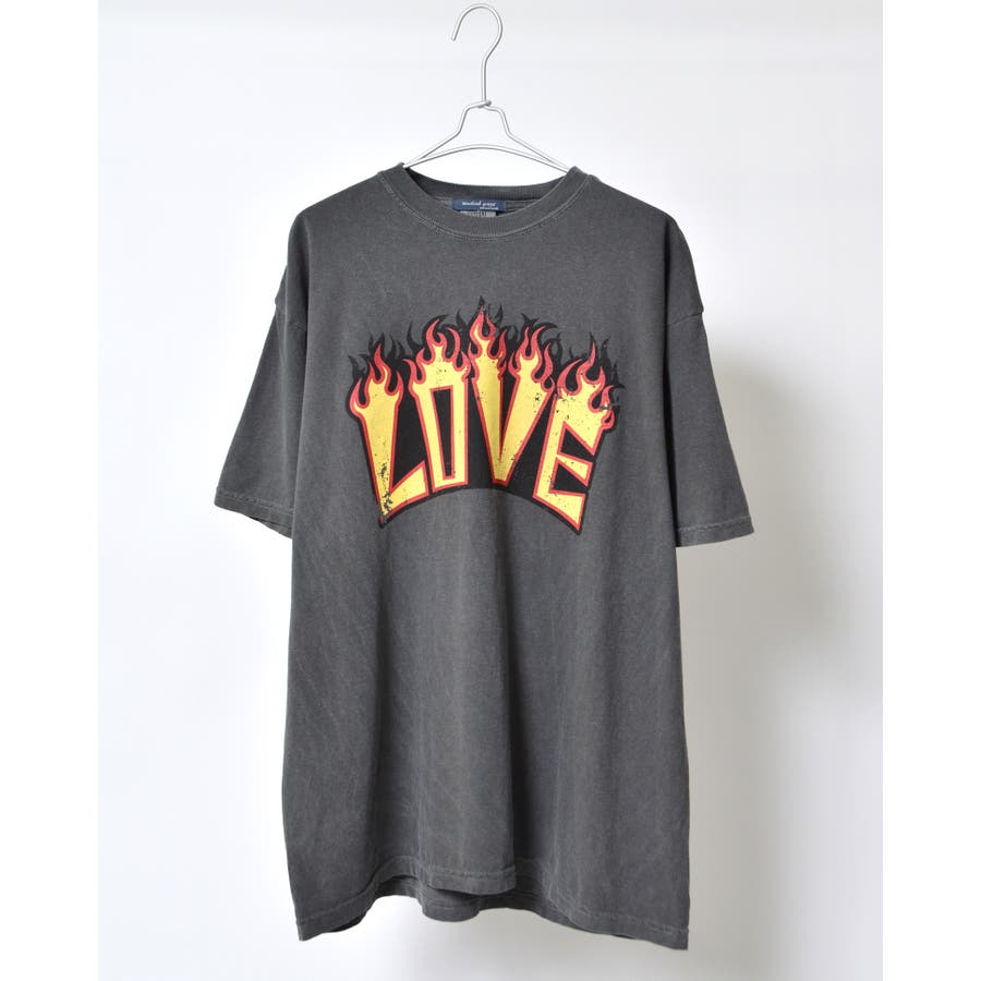 "【LOVEロゴプリント ピグメント加工 ビッグシルエットTシャツ】