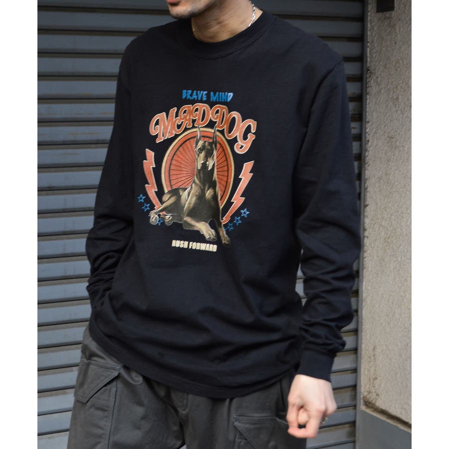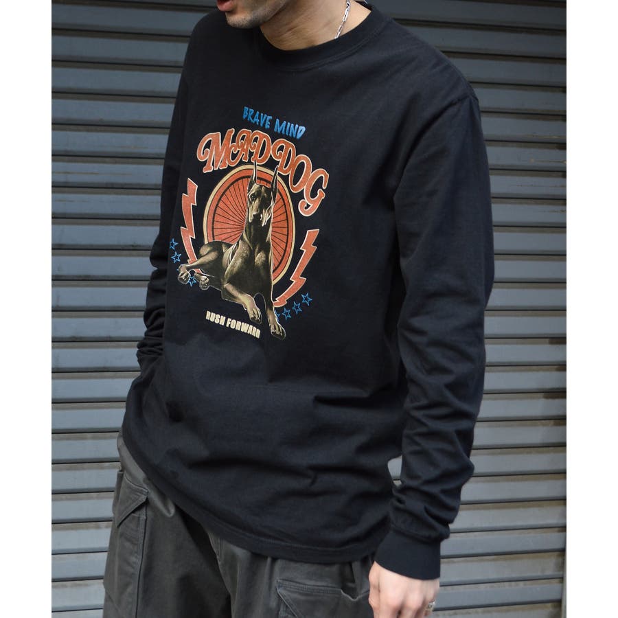 Tシャツ ロンT 長袖Tシャツ 長袖T 犬 アニマル柄 プリント かっこいい おしゃれ ストリート 韓国 カジュアル オーバーサイズ ユニセックス ブラックコーデ シンプル
