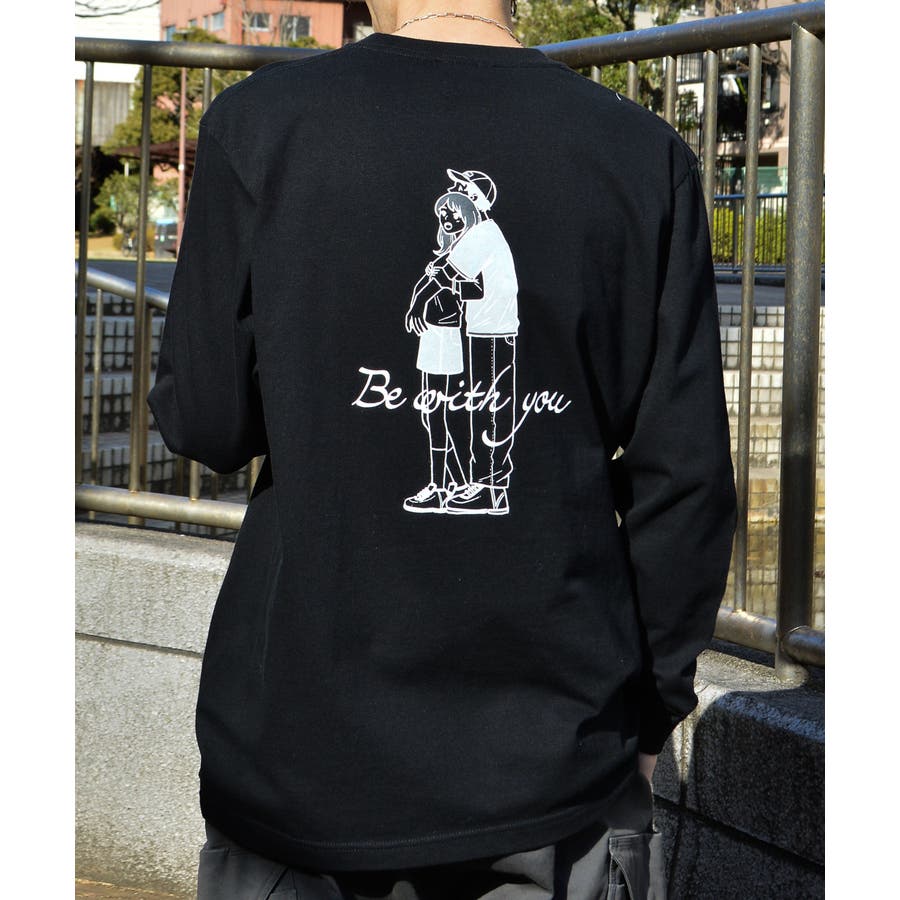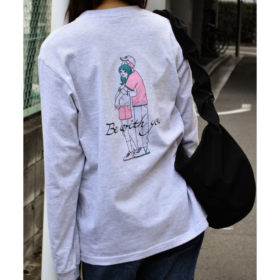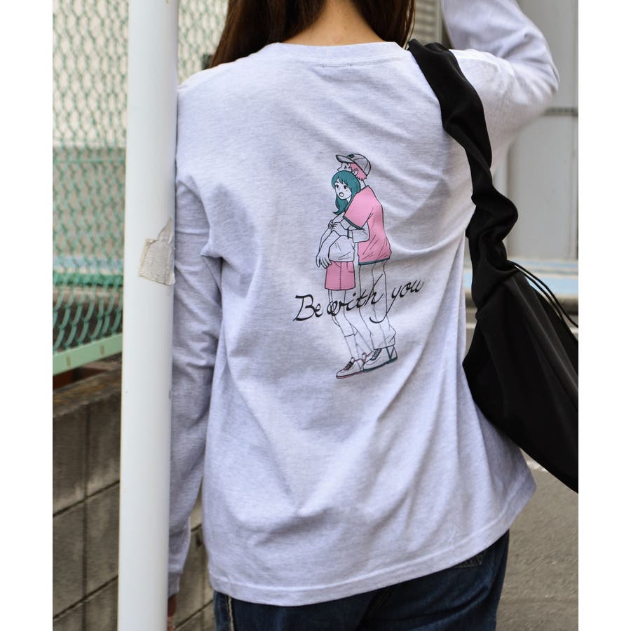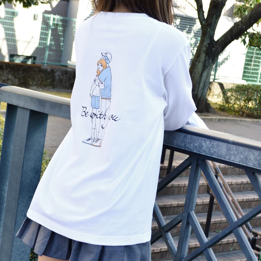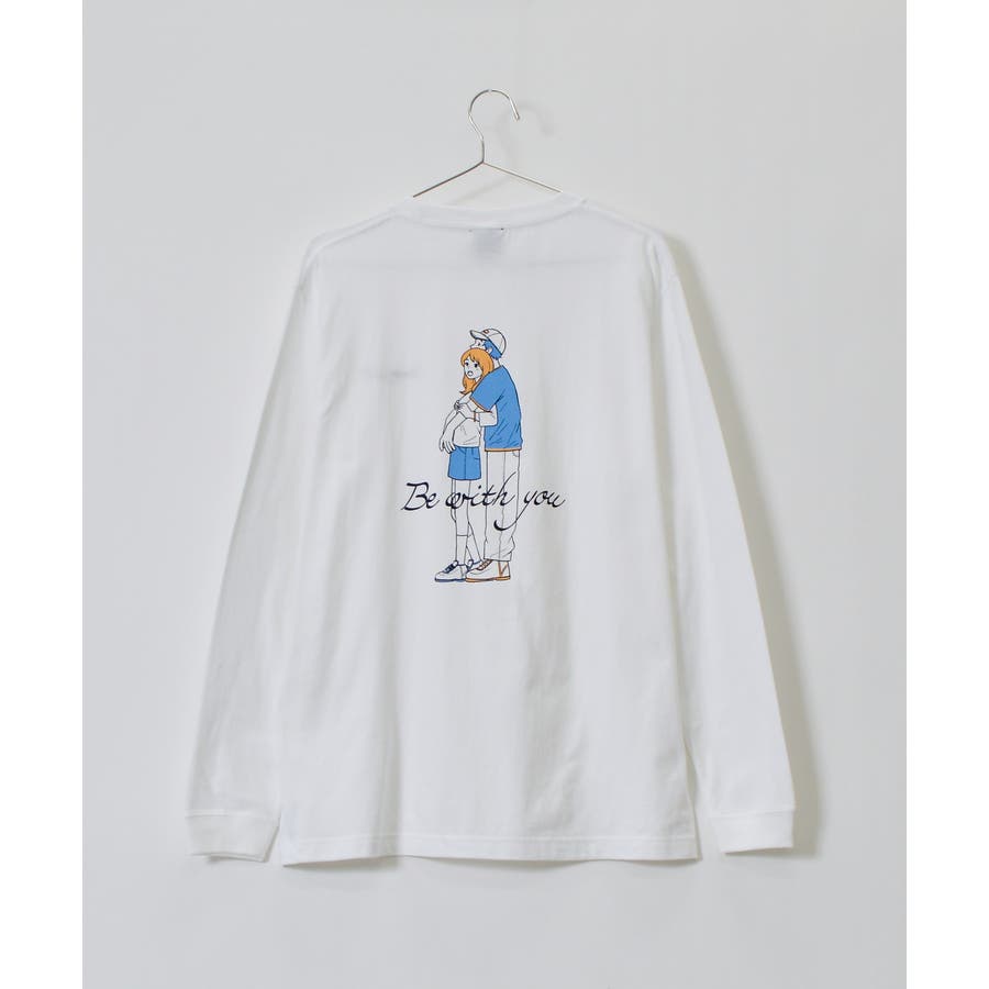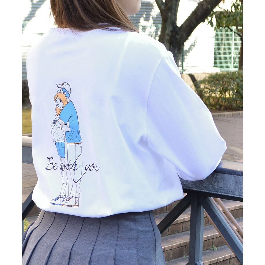 ・大人気のカップルイラストを後身頃にプリントしたロングTシャツ。