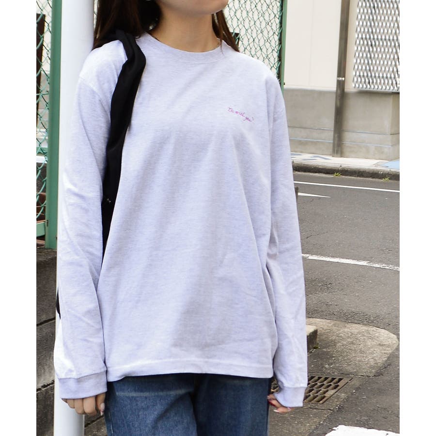 ロンT 長袖Tシャツ 長袖 Tシャツ かわいい おしゃれ 刺繍 バックプリント プリント 10代 20代 ユニセックス 男女兼用 春 夏 オーバーサイズ 体形カバー 韓国 韓国ファッション カジュアル