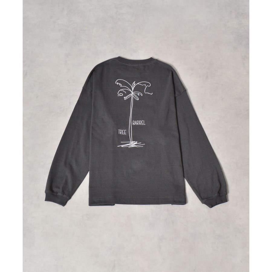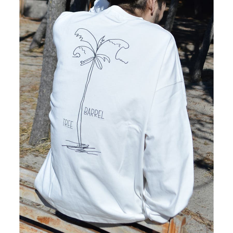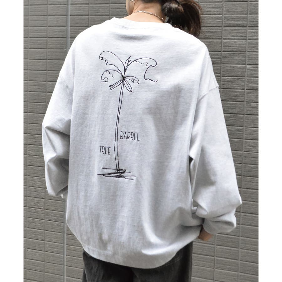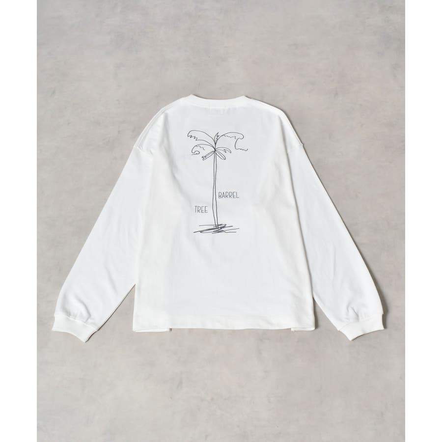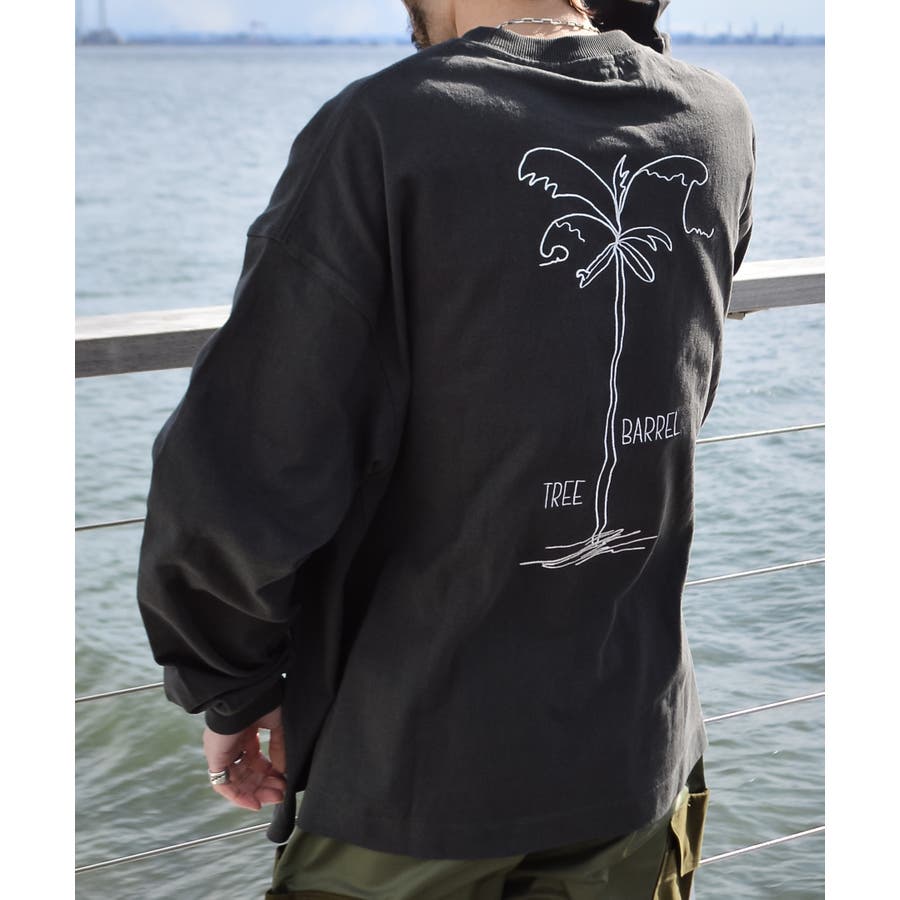 ・胸元のシンプルなロゴと背面の大きなヤシの木柄を刺繍した、1枚でも様になるロンT。