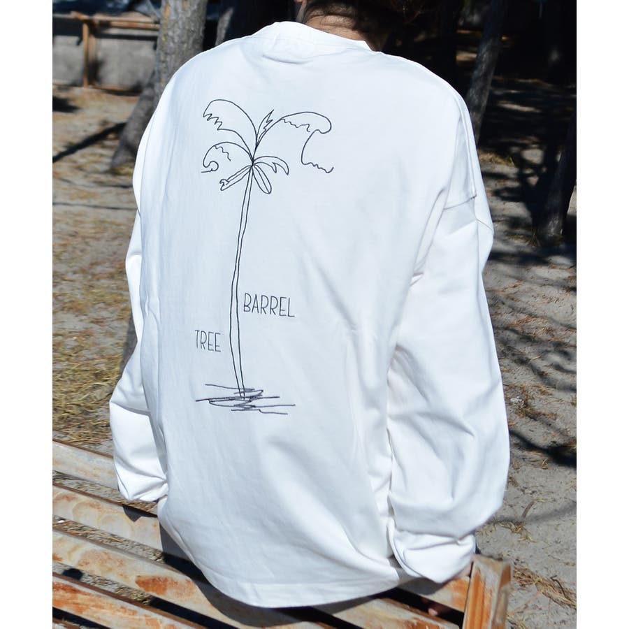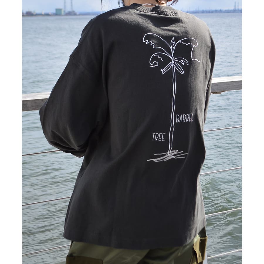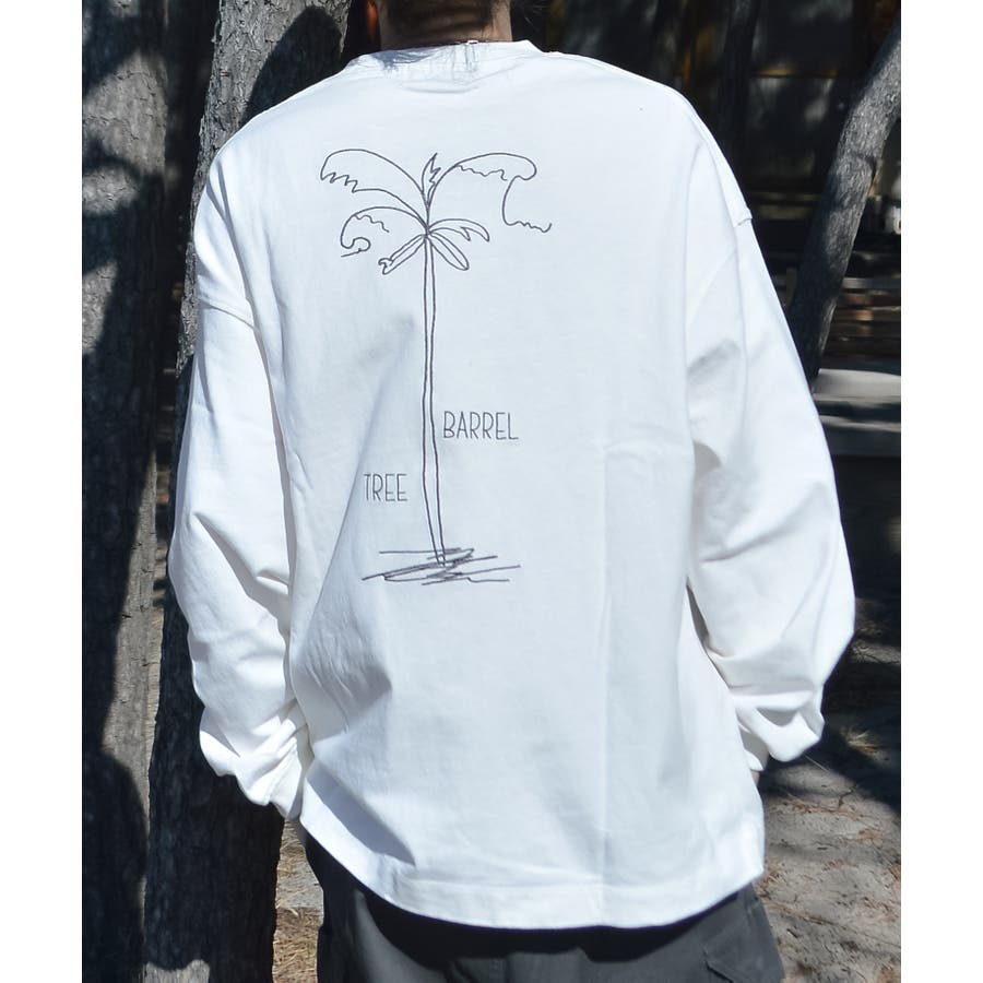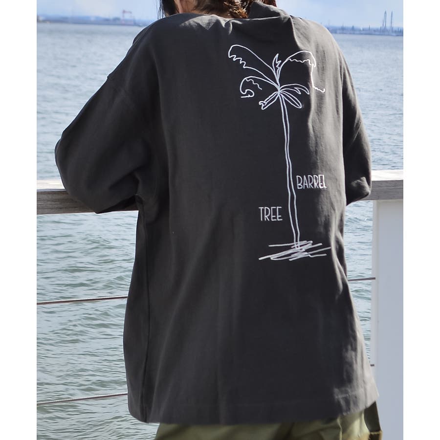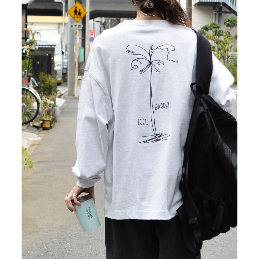 ・胸元のシンプルなロゴと背面の大きなヤシの木柄を刺繍した、1枚でも様になるロンT。