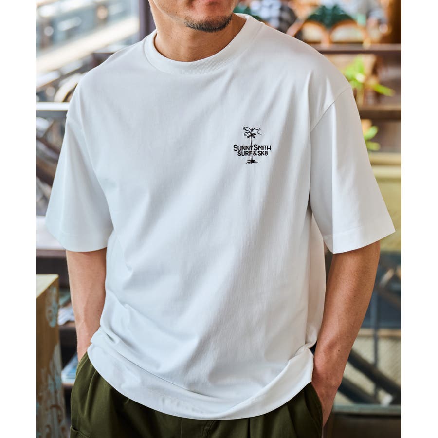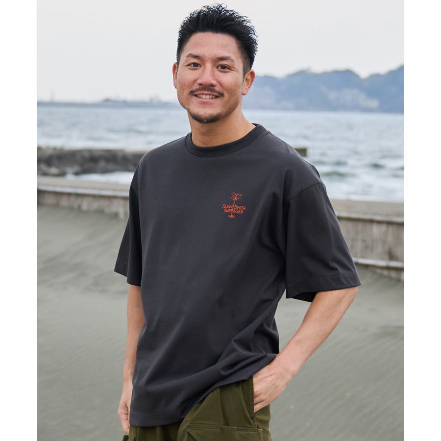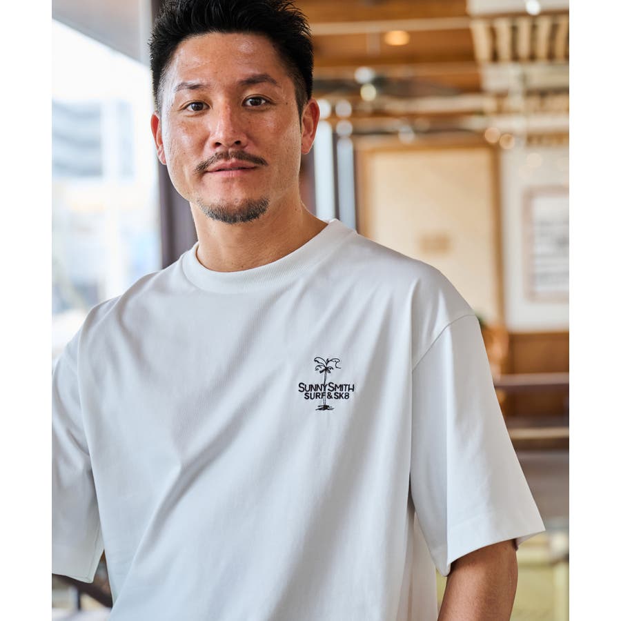 ヤシの木イラストロゴ両面刺繍Tシャツ