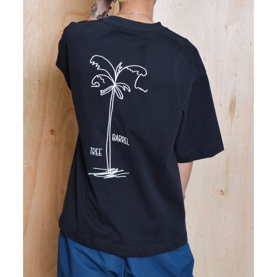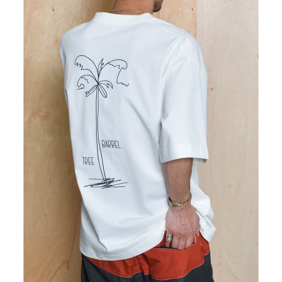 ・背面に大きく描かれたヤシの木の刺繍がポイントの一着です。
