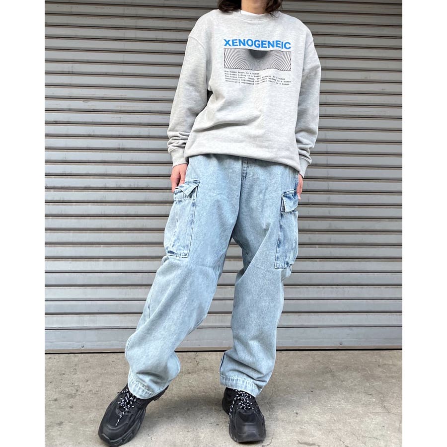 大きめのサイドポケットがポイントのゆるデニム。