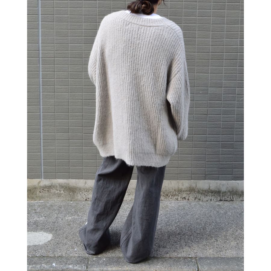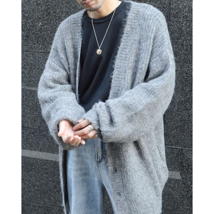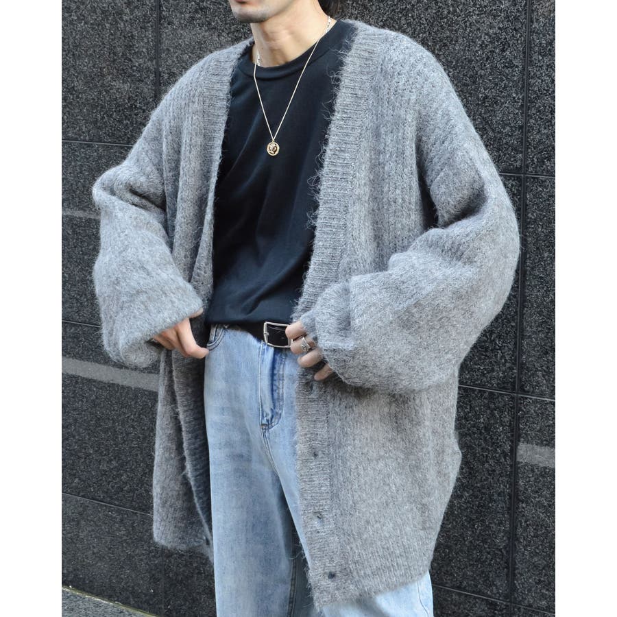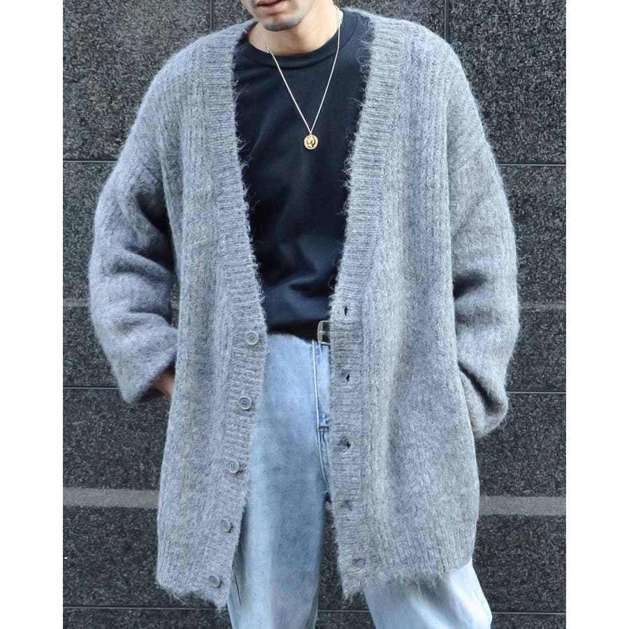 モヘア ルーズシルエット グレー ざっくりニット オーバーサイズ カジュアル レイヤード 秋冬コーデ アンニュイ ヴィンテージ感 きれいめ 大人 かっこいい シャギー