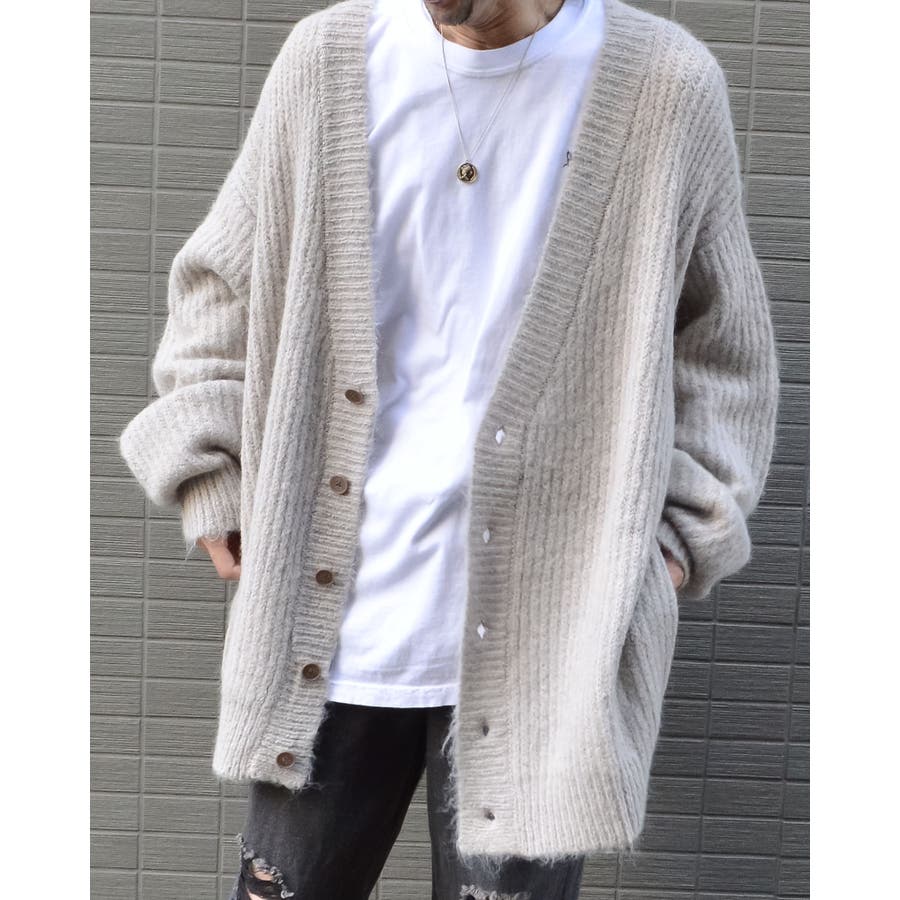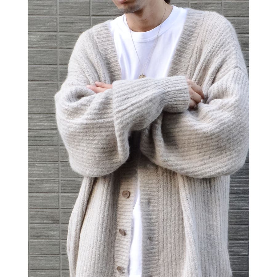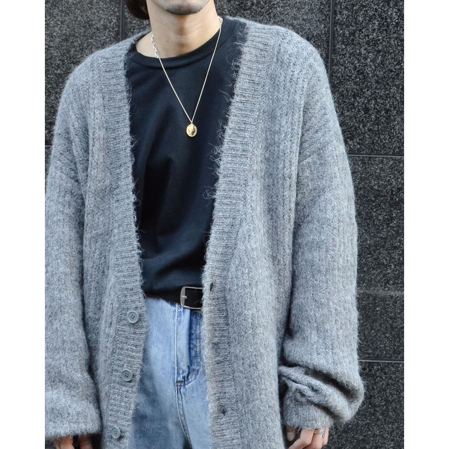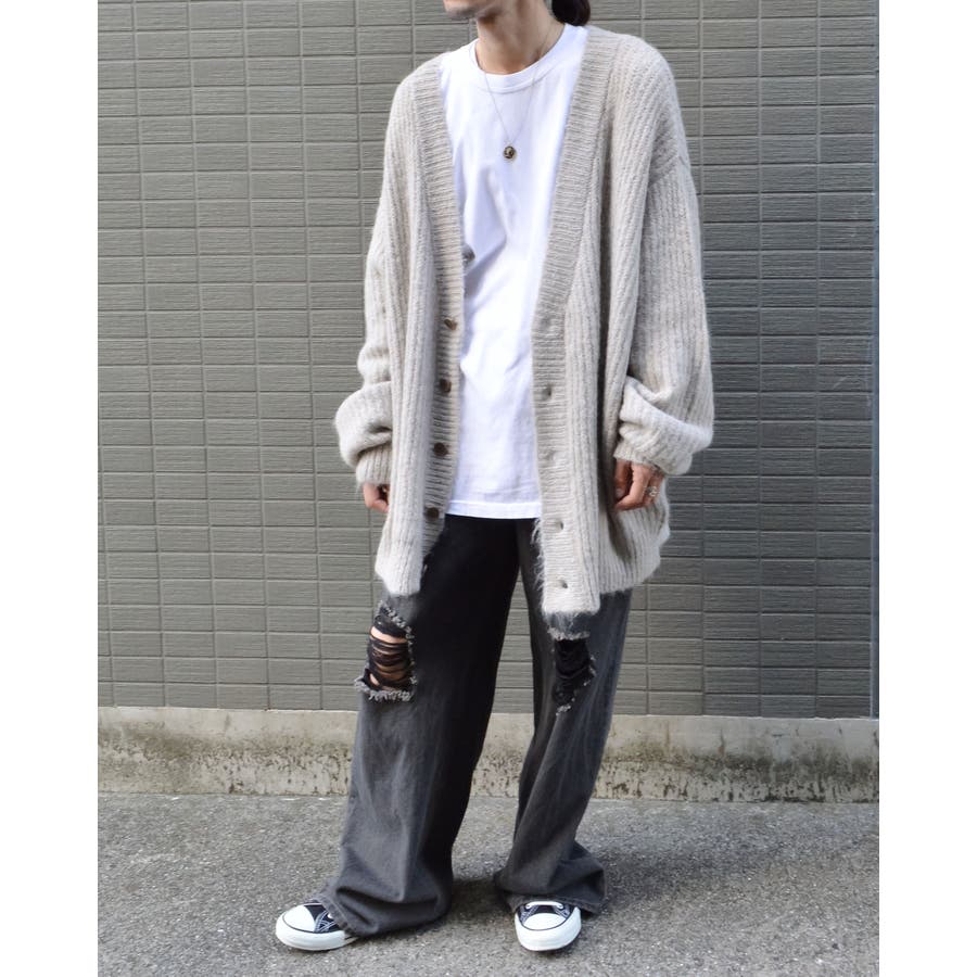 モヘア ルーズシルエット グレー ざっくりニット オーバーサイズ カジュアル レイヤード 秋冬コーデ アンニュイ ヴィンテージ感 きれいめ 大人 かっこいい シャギー
