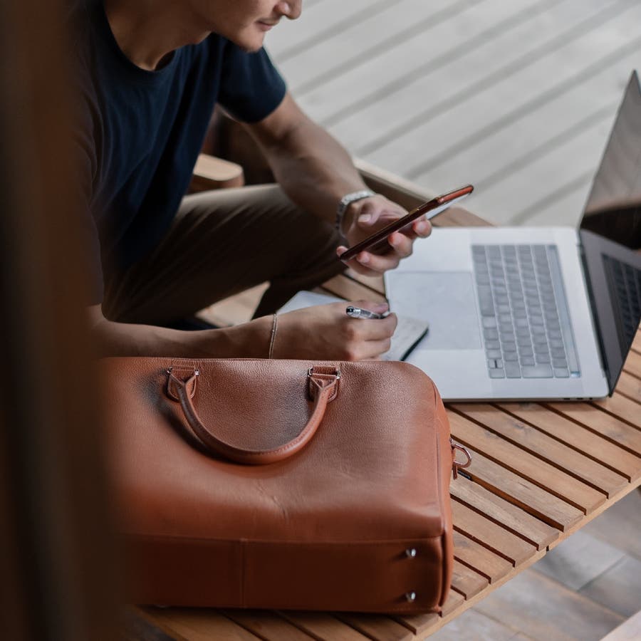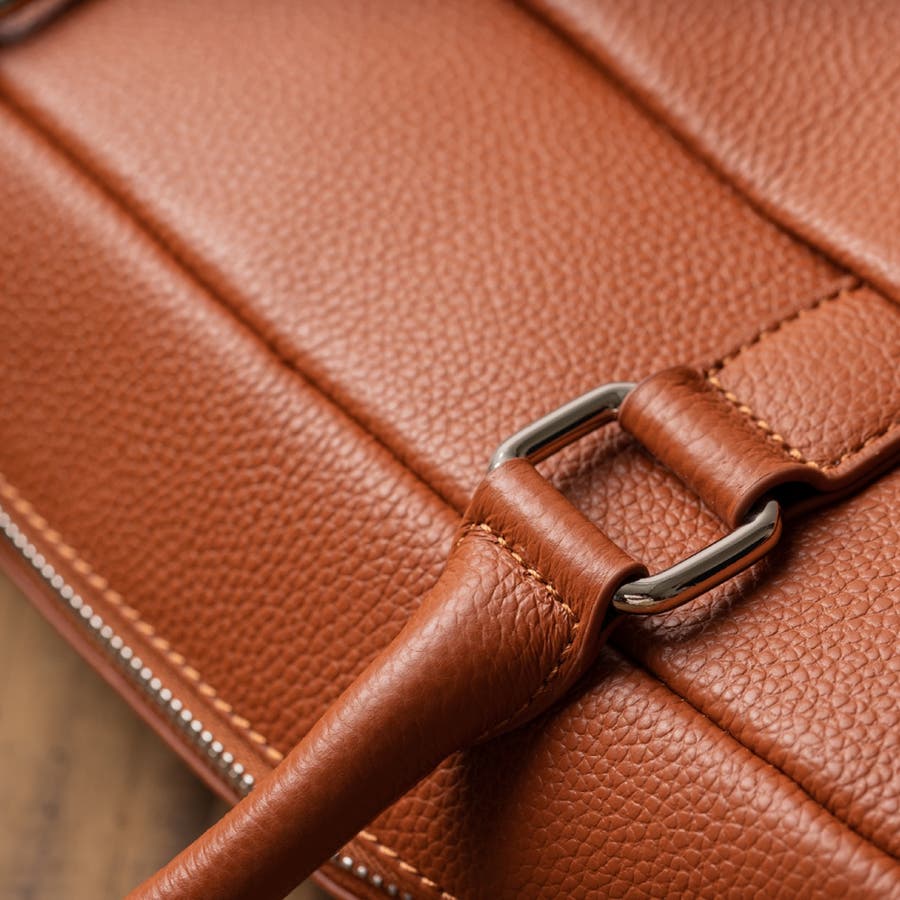 定番の本革ブリーフケースの革は、高級ブランドでも使用される傷のつきにくいシュリンクレザーを採用しました。